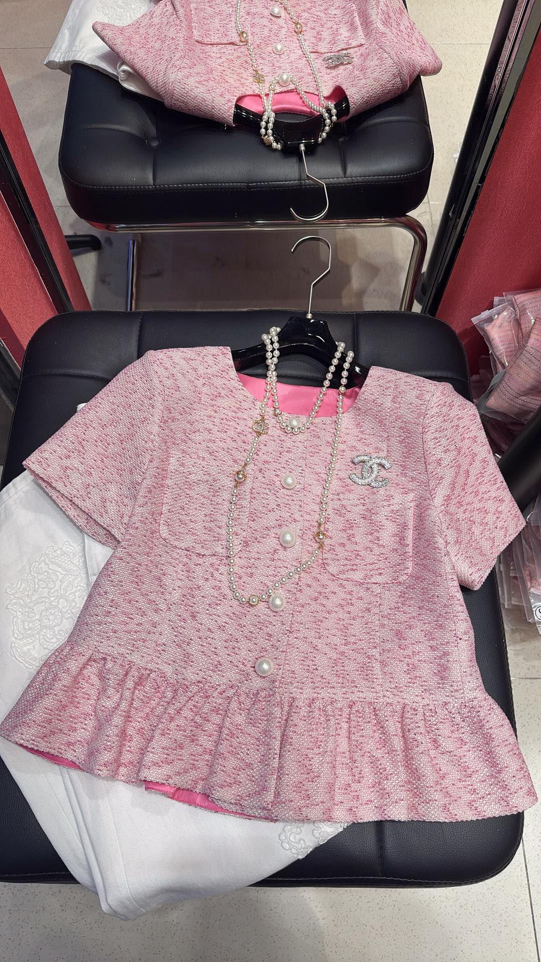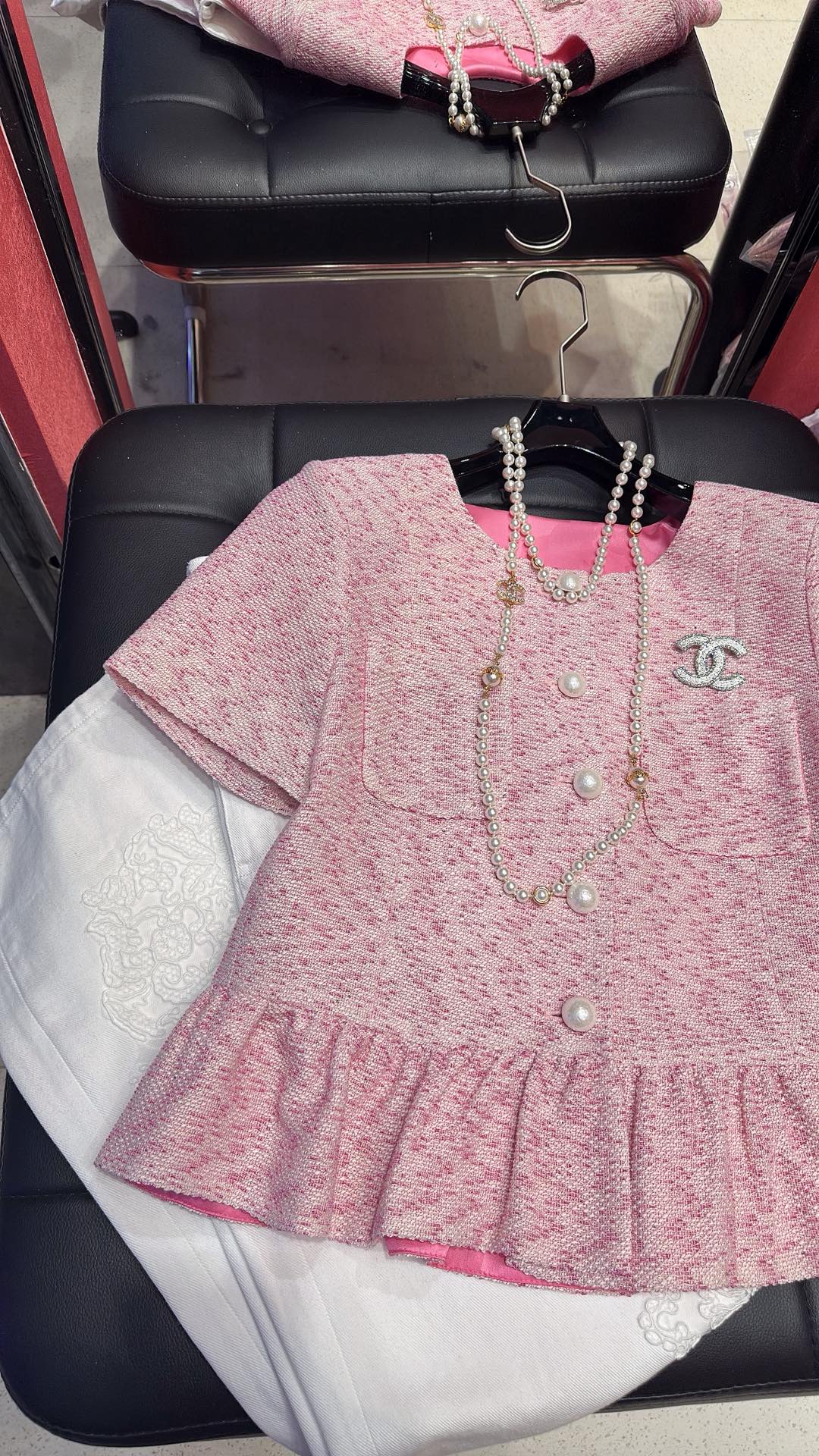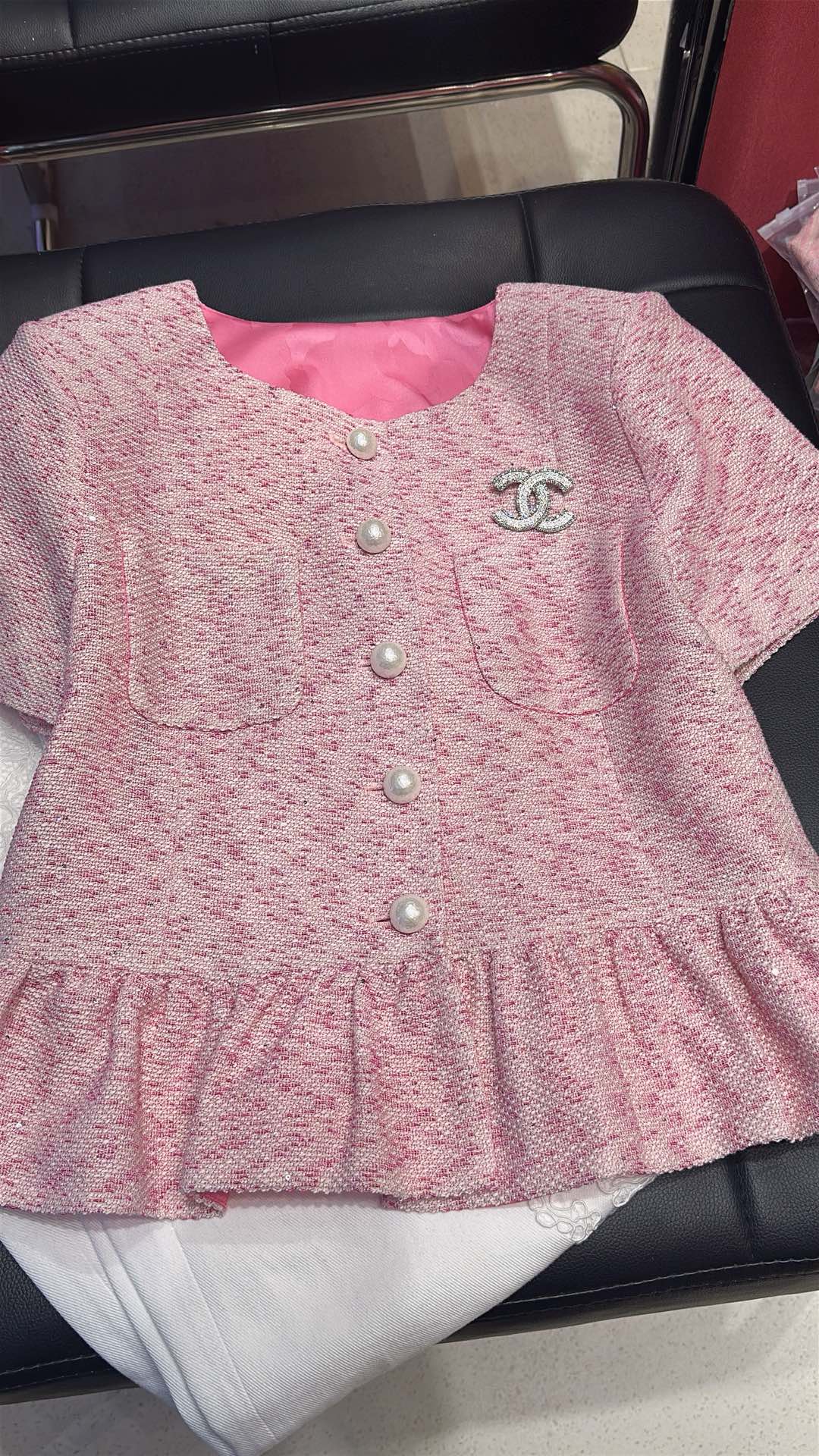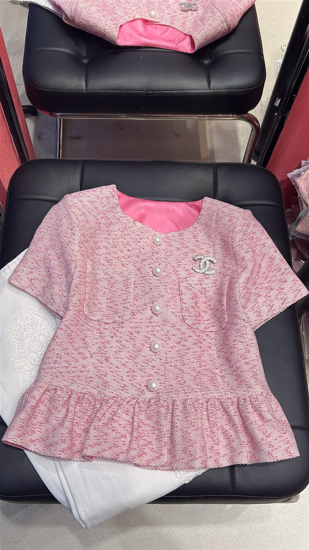 这款衣服是AAAAA 1:1 质量 (非常棒). 使用了和原版一模一样的材料. 商标部分也保持了和香奈儿/Chanel一样. 图片拍摄是实物衣服拍摄, 您所收到的实物保证和我们图片一模一样.