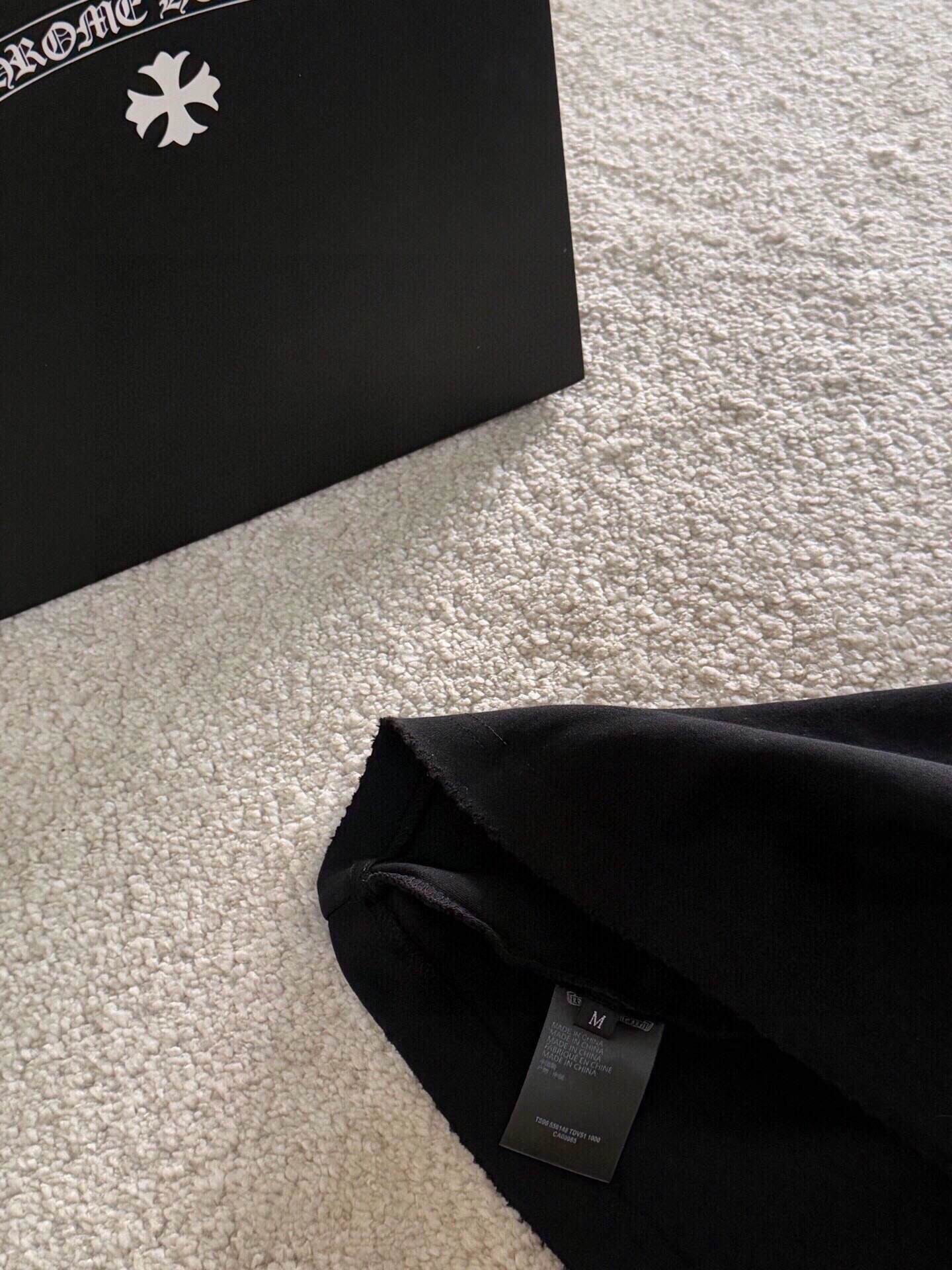 这款衣服是AAAAA 1:1 质量 (非常棒). 使用了和原版一模一样的材料. 商标部分也保持了和克罗心/Chrome Hearts一样. 图片拍摄是实物衣服拍摄, 您所收到的实物保证和我们图片一模一样.