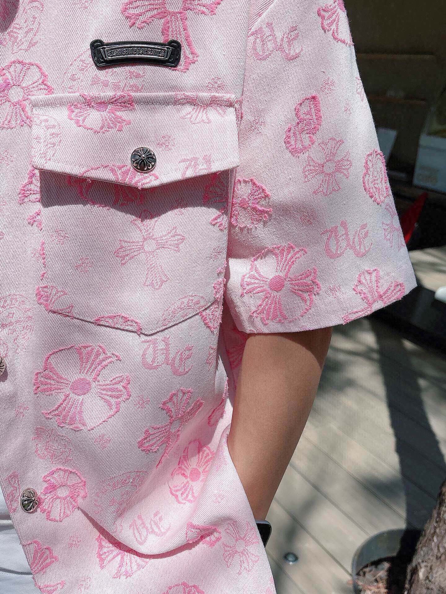 这款衣服是AAAAA 1:1 质量 (非常棒). 使用了和原版一模一样的材料. 商标部分也保持了和克罗心/Chrome Hearts一样. 图片拍摄是实物衣服拍摄, 您所收到的实物保证和我们图片一模一样.