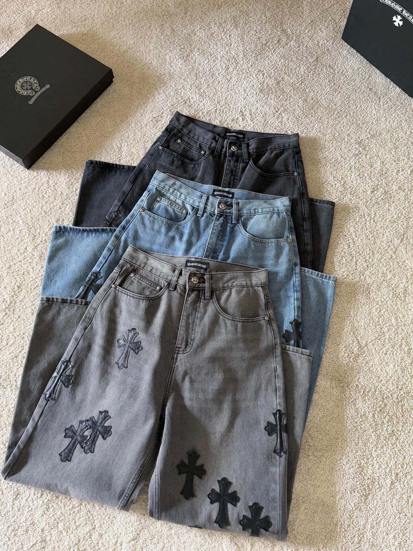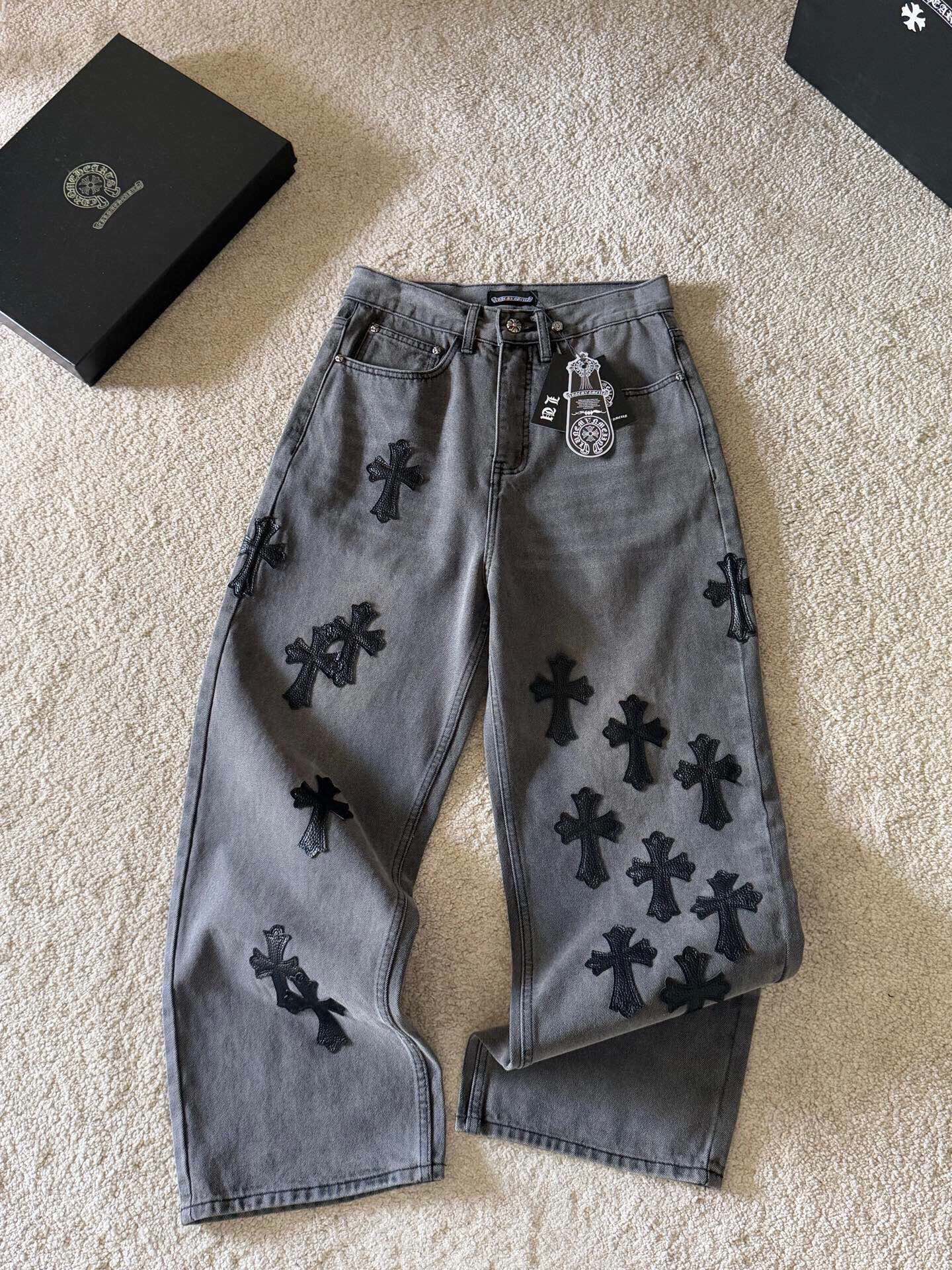 这款衣服是AAAAA 1:1 质量 (非常棒). 使用了和原版一模一样的材料. 商标部分也保持了和克罗心/Chrome Hearts一样. 图片拍摄是实物衣服拍摄, 您所收到的实物保证和我们图片一模一样.