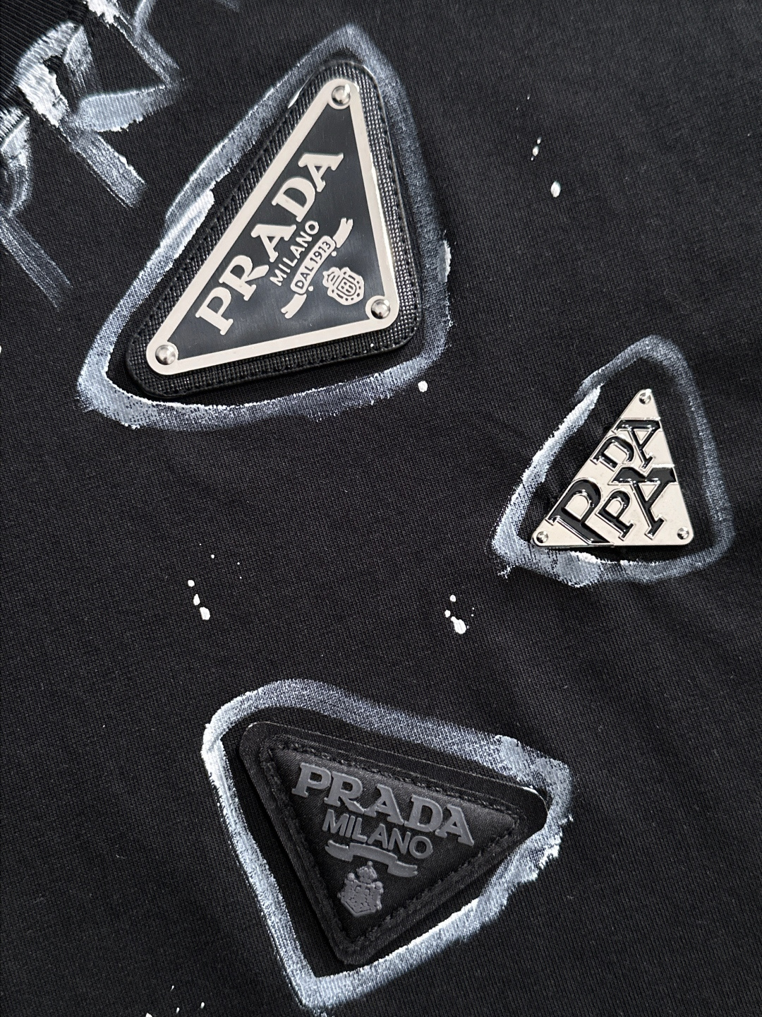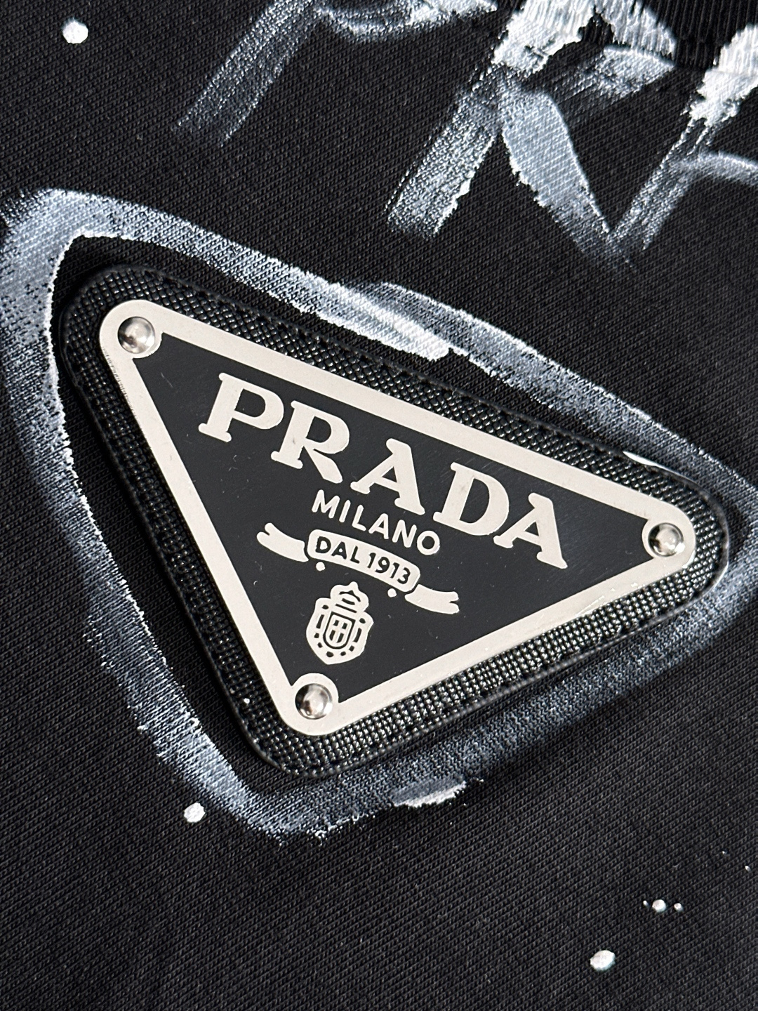 这款衣服是AAAAA 1:1 质量 (非常棒). 使用了和原版一模一样的材料. 商标部分也保持了和普拉达/Prada一样. 图片拍摄是实物衣服拍摄, 您所收到的实物保证和我们图片一模一样.