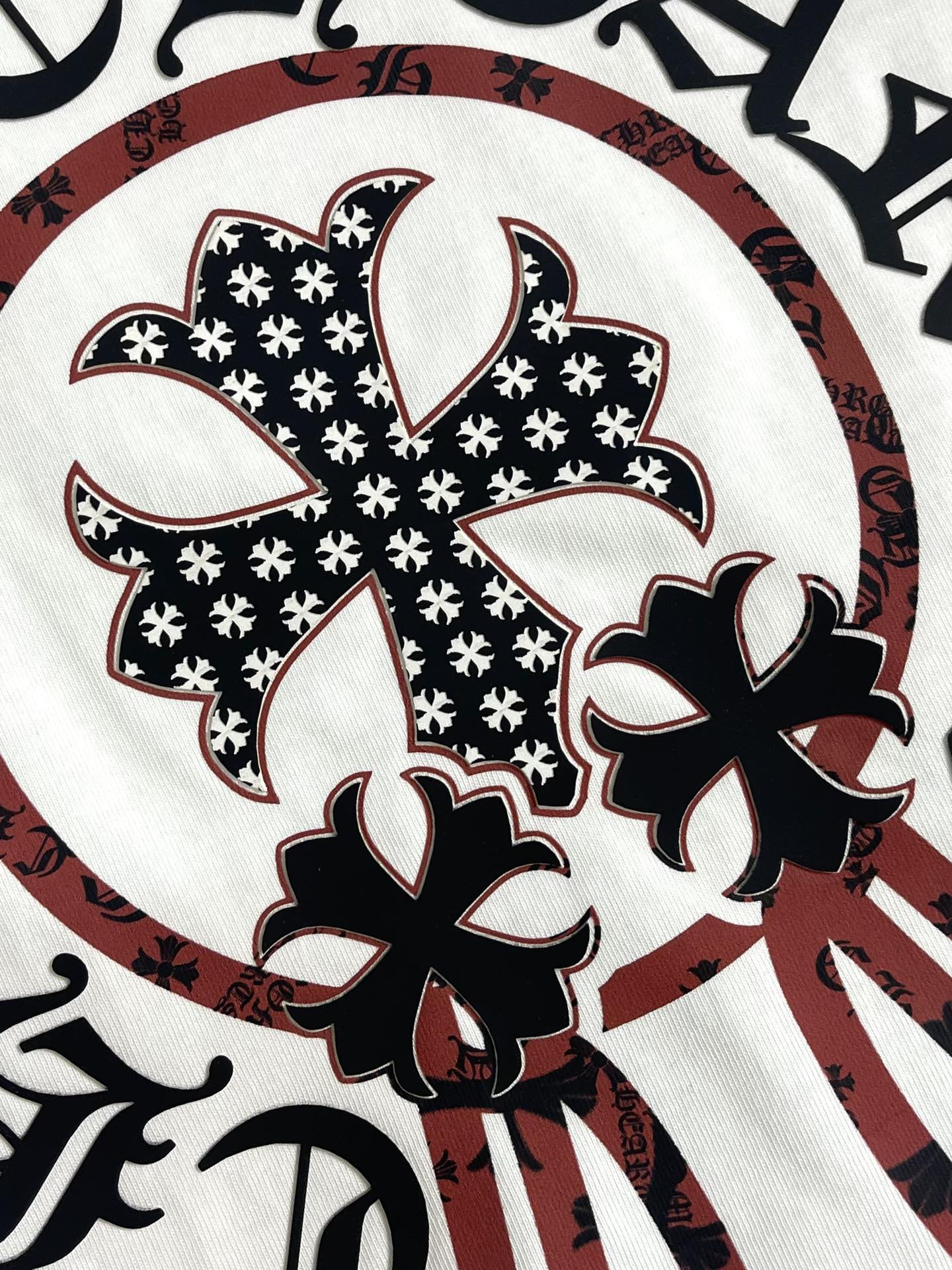 这款衣服是AAAAA 1:1 质量 (非常棒). 使用了和原版一模一样的材料. 商标部分也保持了和克罗心/Chrome Hearts一样. 图片拍摄是实物衣服拍摄, 您所收到的实物保证和我们图片一模一样.