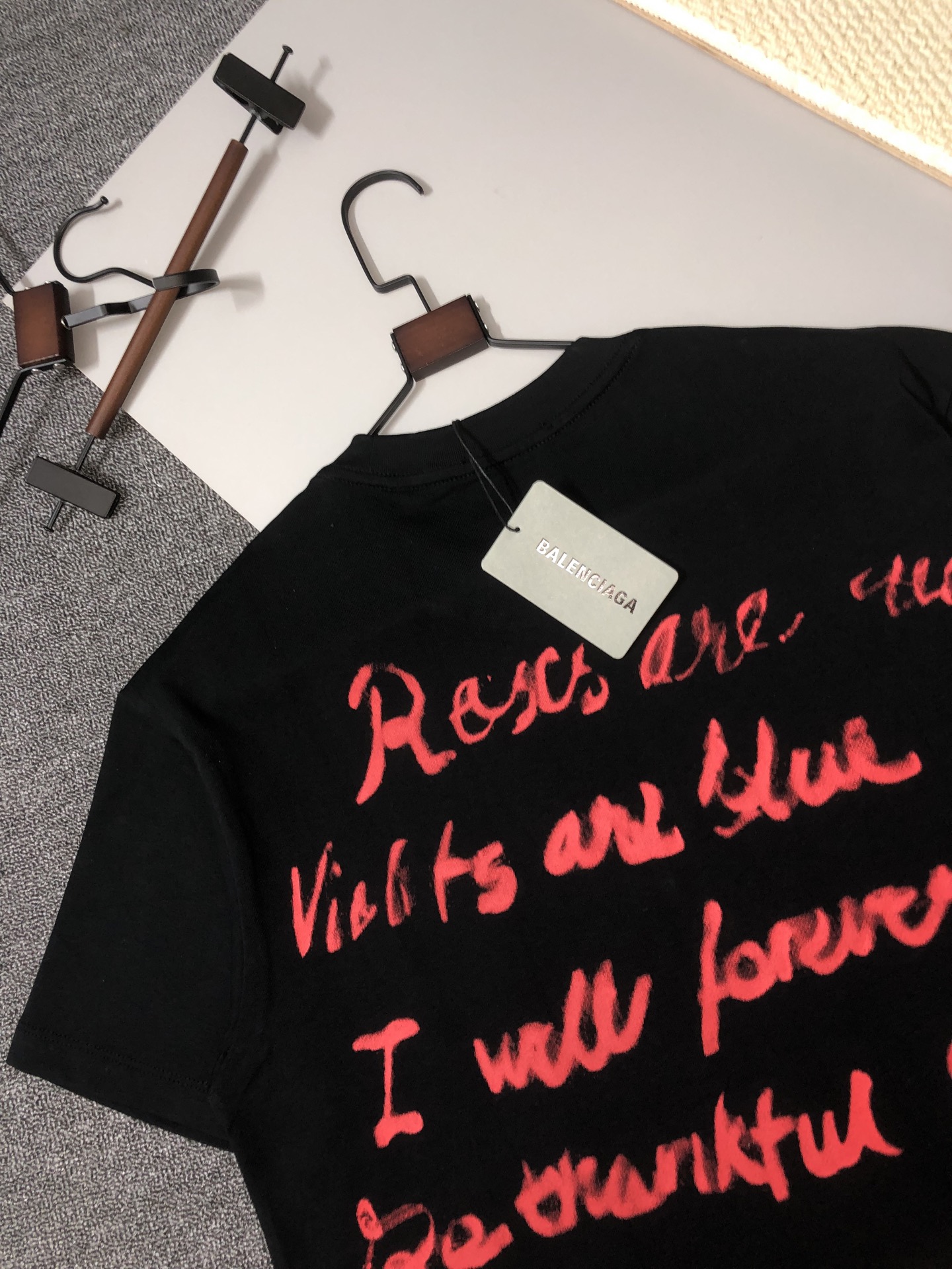 这款衣服是AAAAA 1:1 质量 (非常棒). 使用了和原版一模一样的材料. 商标部分也保持了和巴黎世家/Balenciaga一样. 图片拍摄是实物衣服拍摄, 您所收到的实物保证和我们图片一模一样.