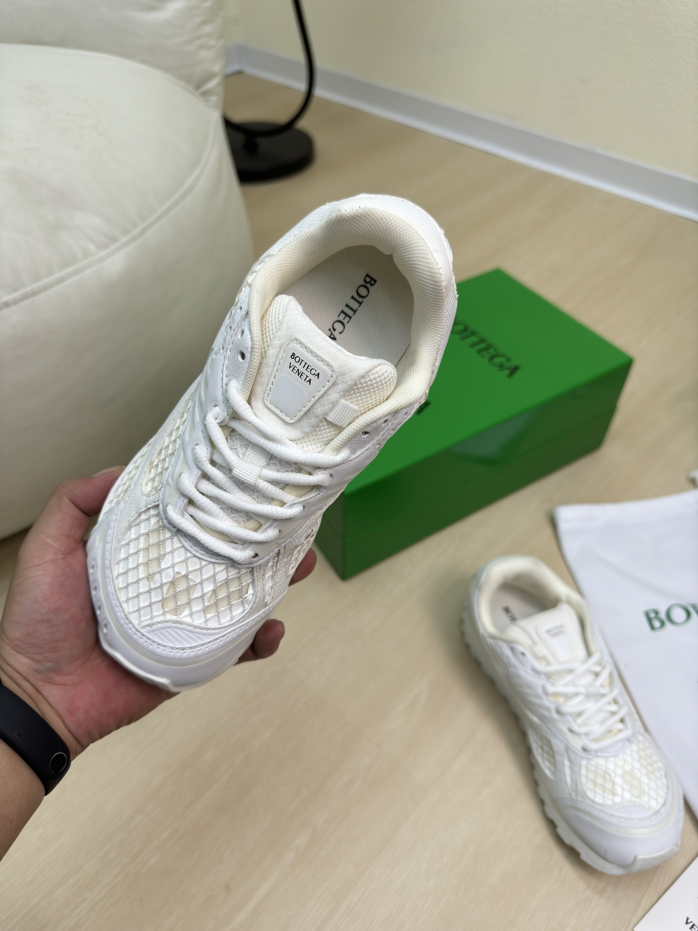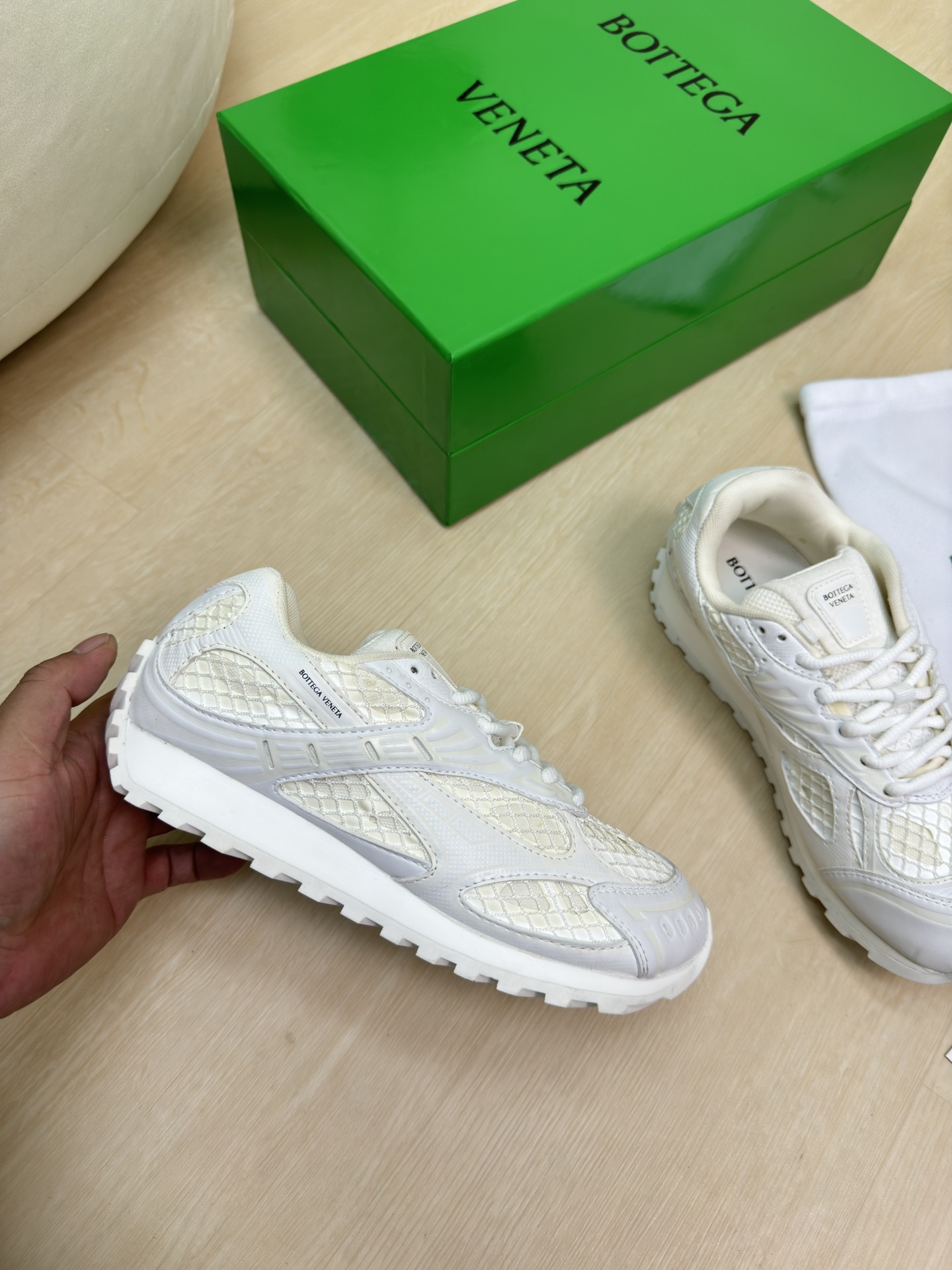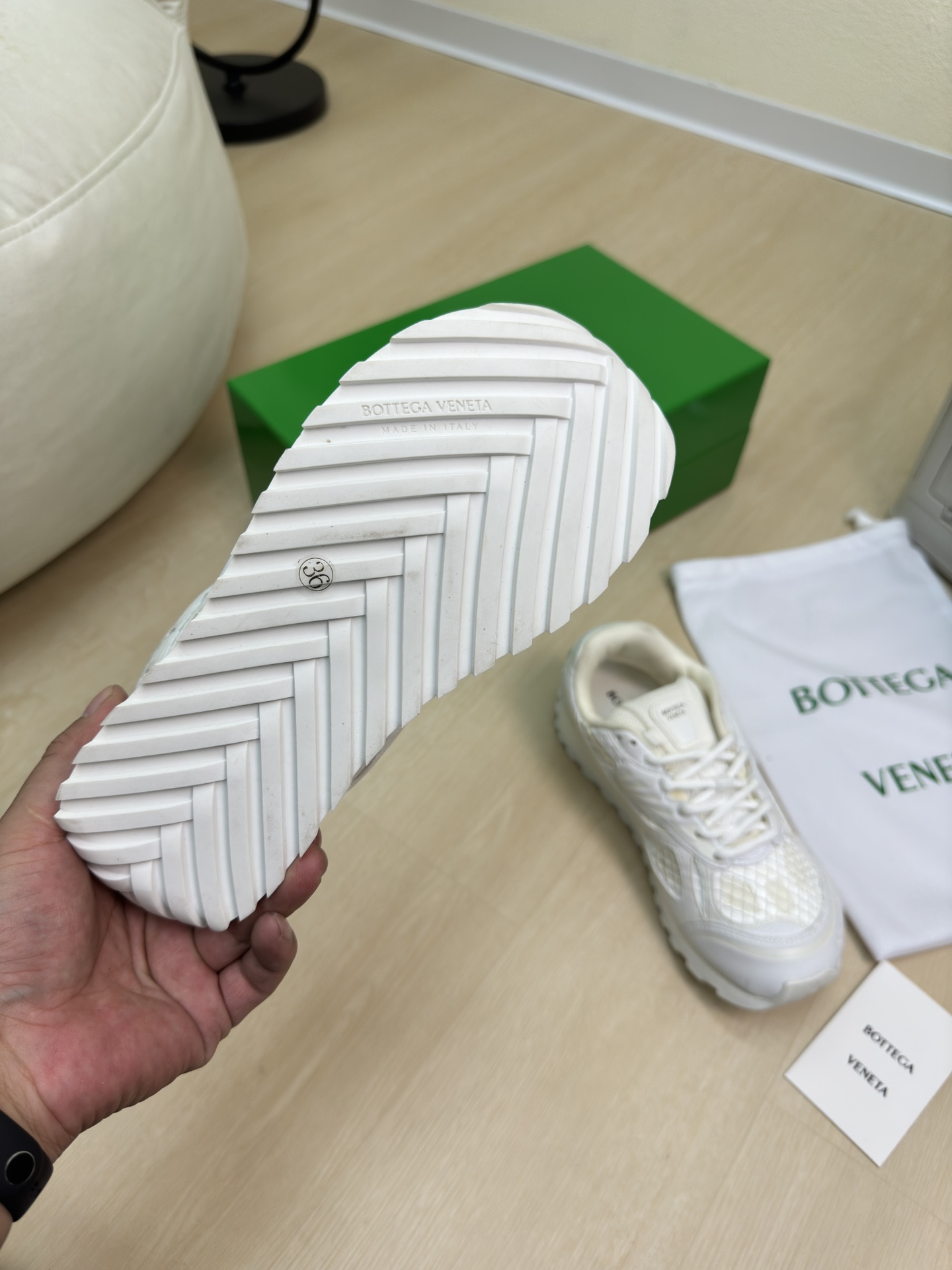 这款鞋子是AAAAA 1:1 质量 (非常棒). 使用了和原版一模一样的材料. 商标部分也保持了和葆蝶家/Bottega Veneta一样. 图片拍摄是实物鞋子拍摄, 您所收到的实物保证和我们图片一模一样.