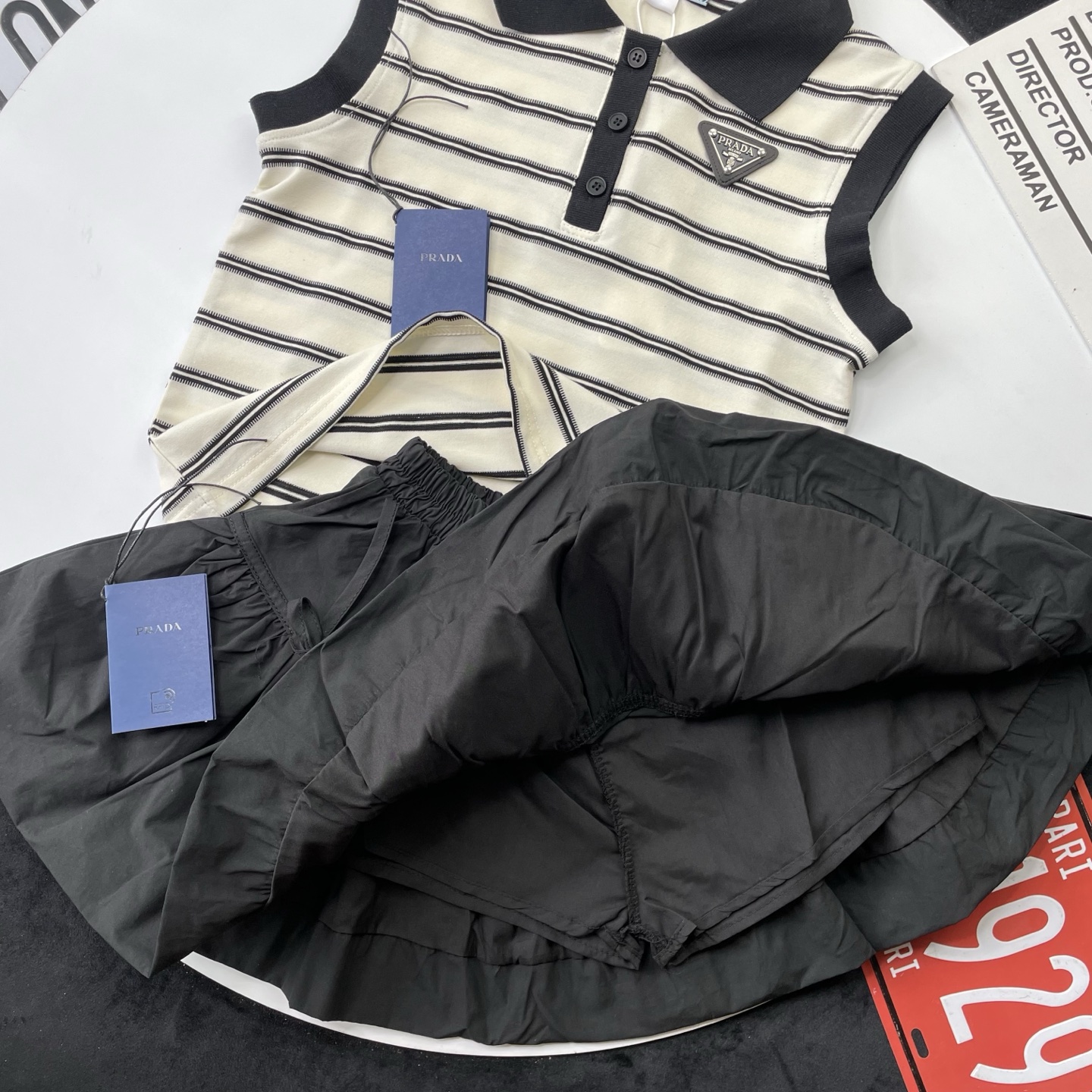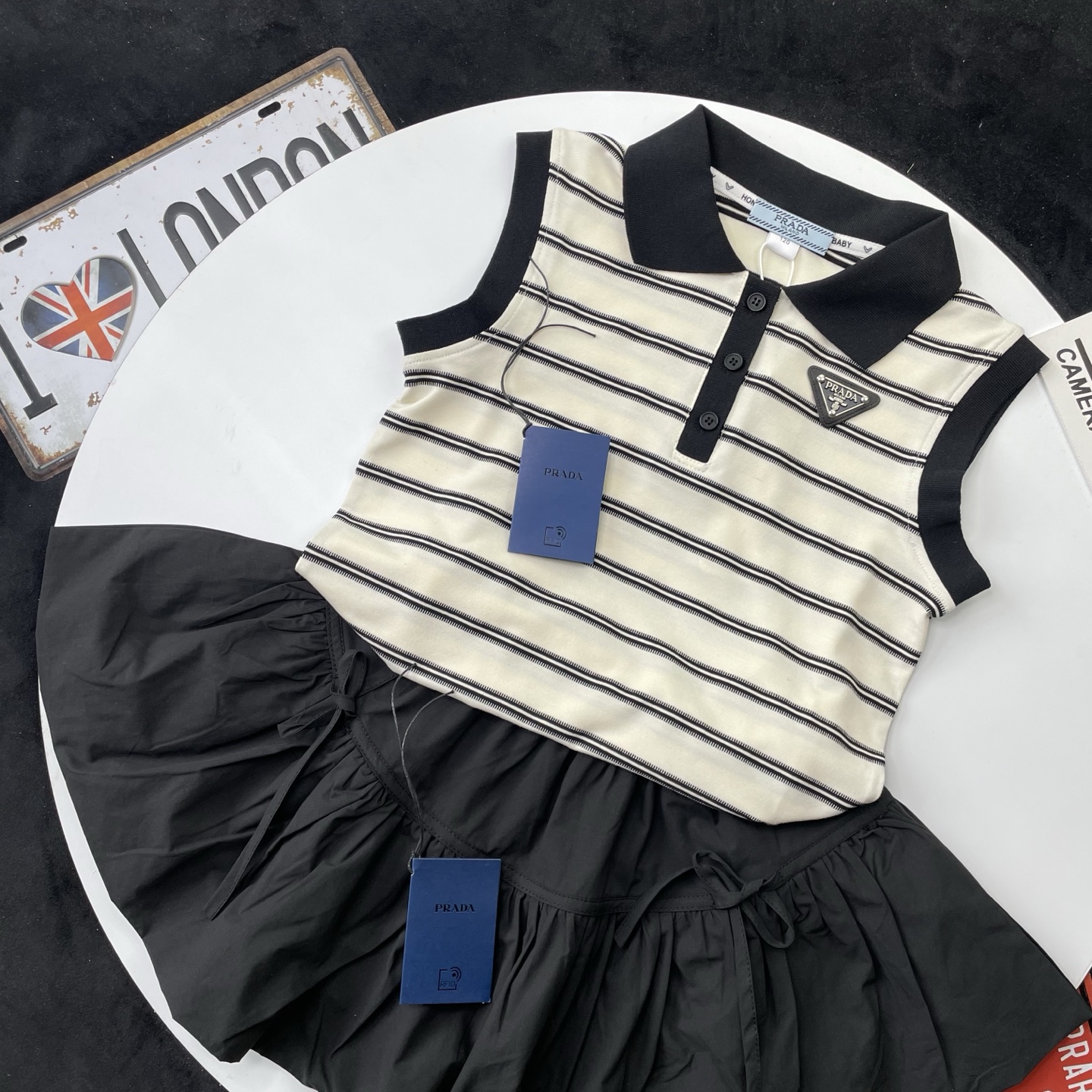 这款children's clothes是AAAAA 1:1 质量 (非常棒). 使用了和原版一模一样的材料. 商标部分也保持了和普拉达/Prada一样. 图片拍摄是实物children's clothes拍摄, 您所收到的实物保证和我们图片一模一样.