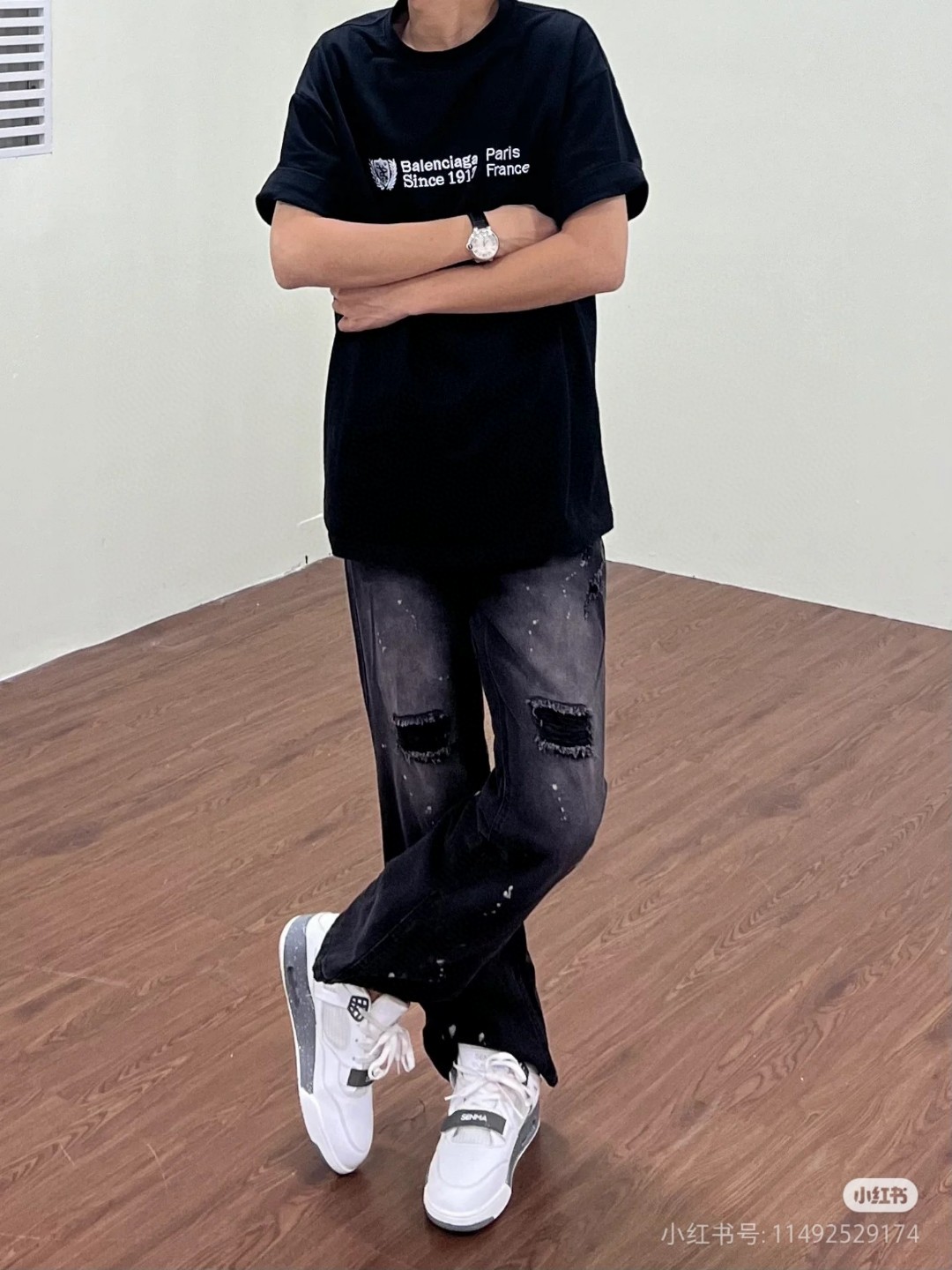 这款衣服是AAAAA 1:1 质量 (非常棒). 使用了和原版一模一样的材料. 商标部分也保持了和巴黎世家/Balenciaga一样. 图片拍摄是实物衣服拍摄, 您所收到的实物保证和我们图片一模一样.