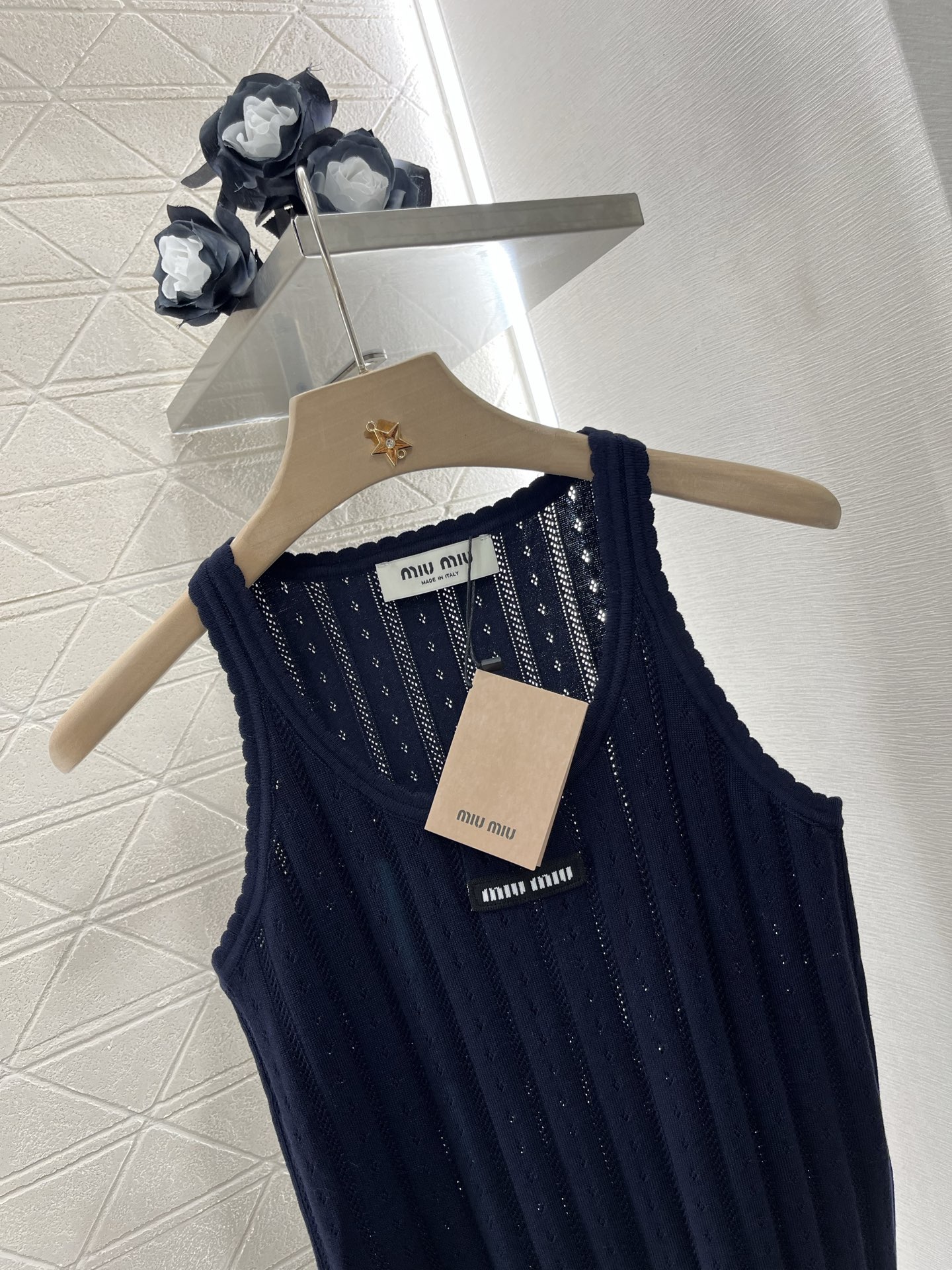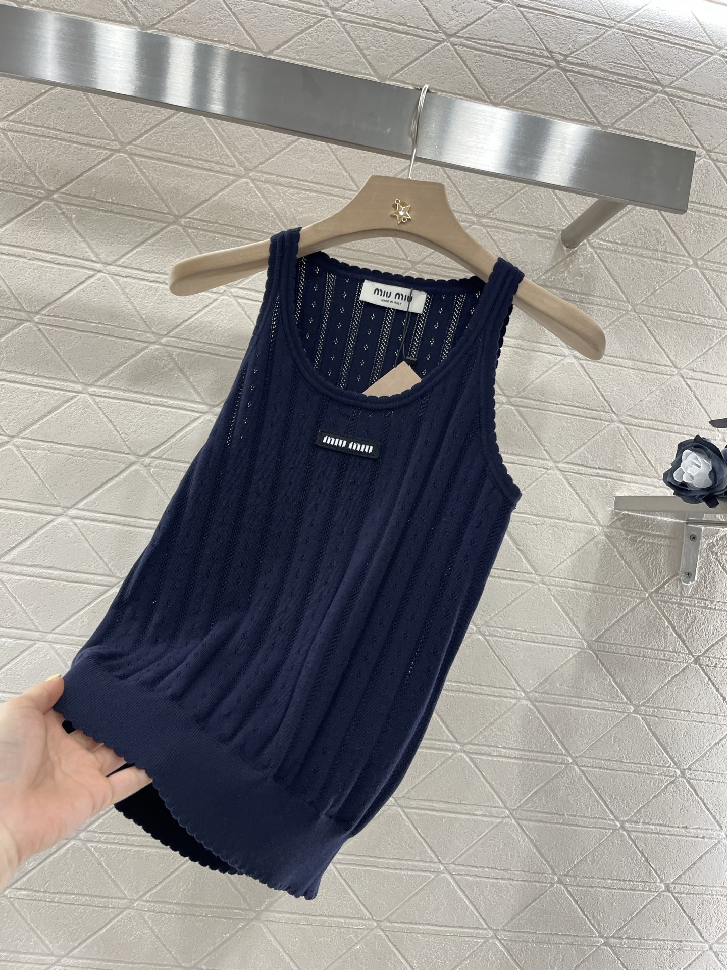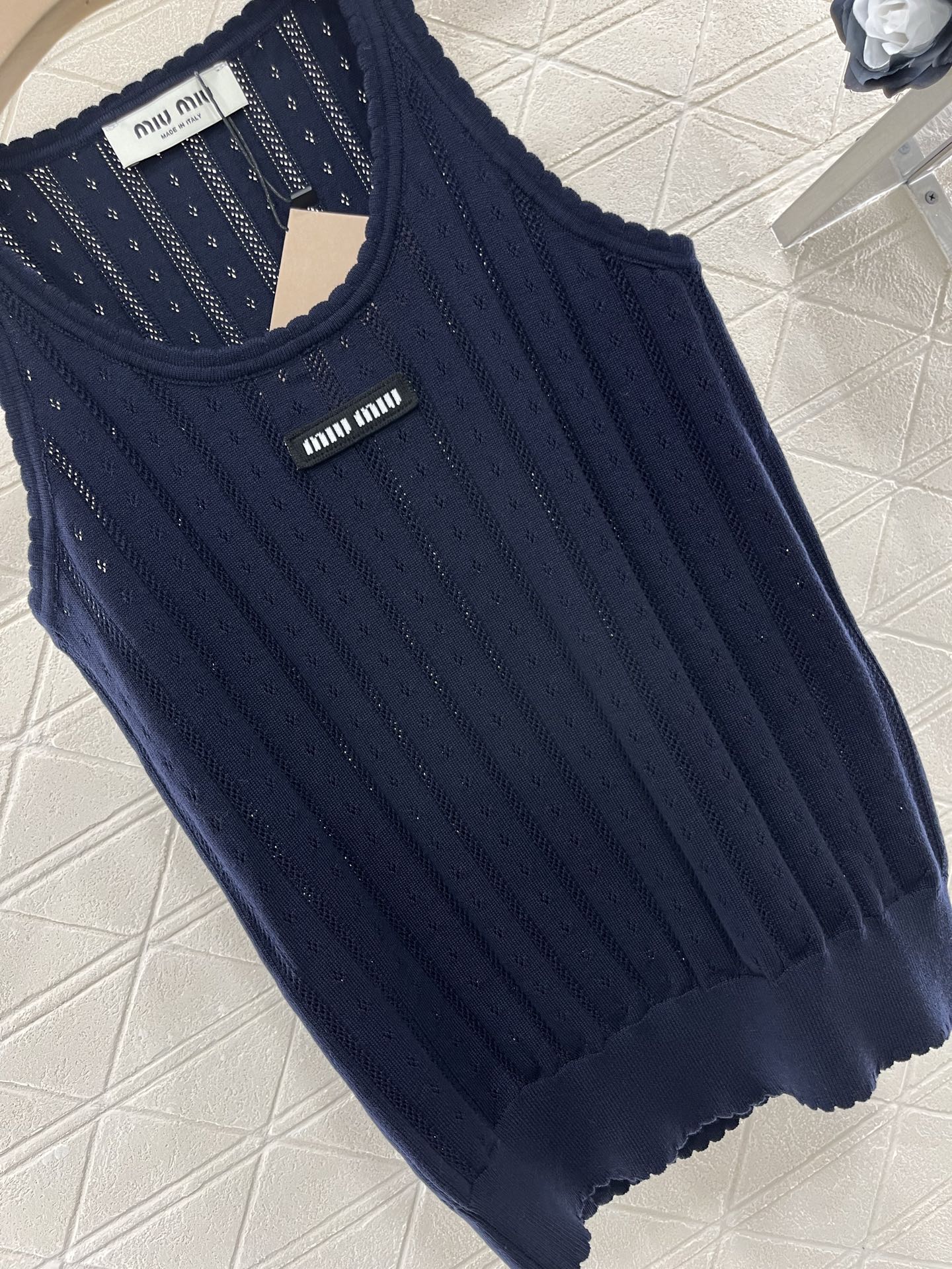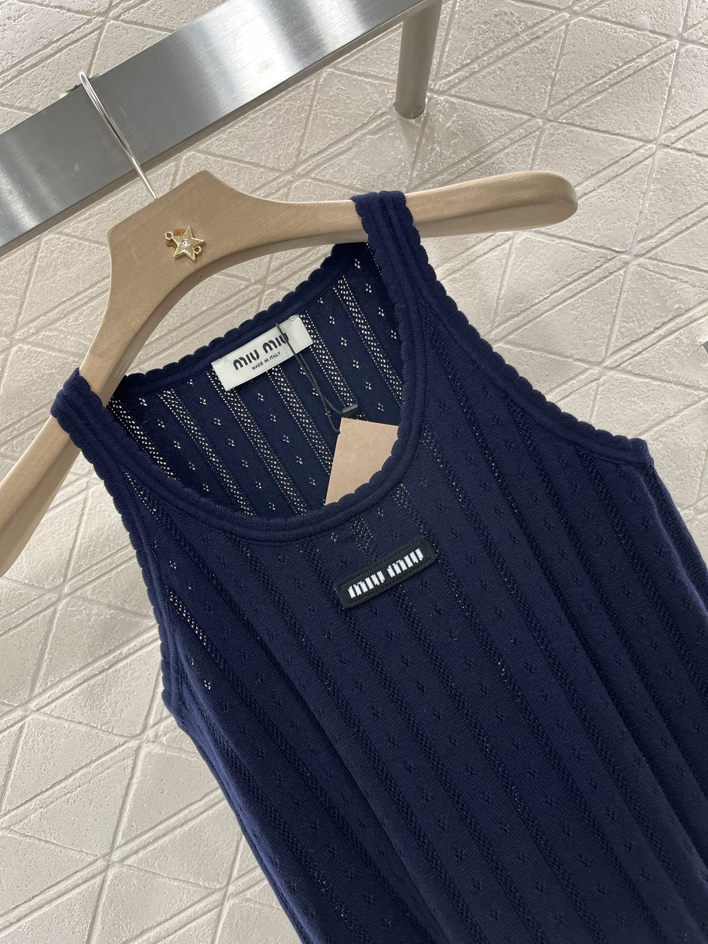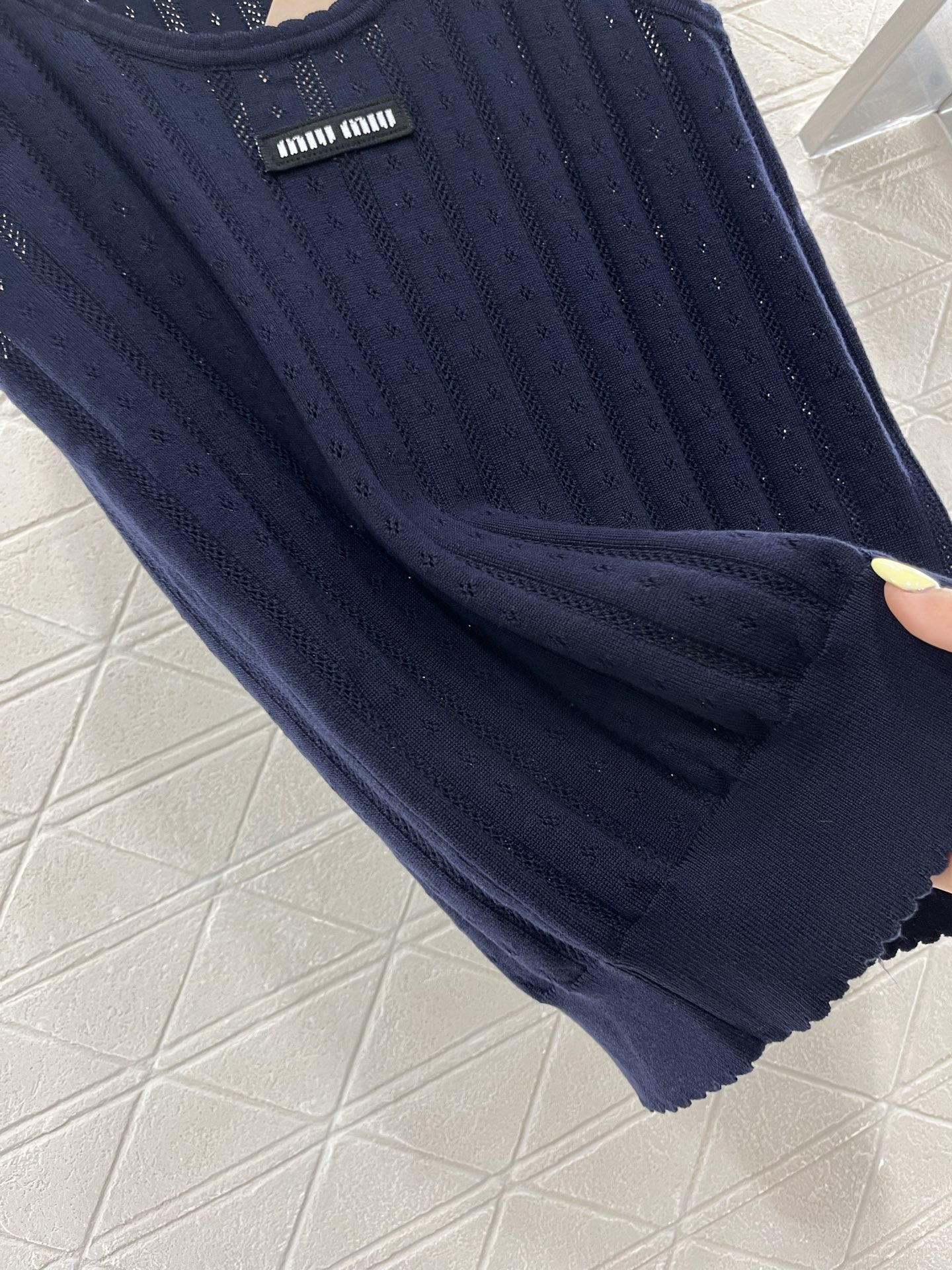 这款衣服是AAAAA 1:1 质量 (非常棒). 使用了和原版一模一样的材料. 商标部分也保持了和缪缪/Miu Miu一样. 图片拍摄是实物衣服拍摄, 您所收到的实物保证和我们图片一模一样.