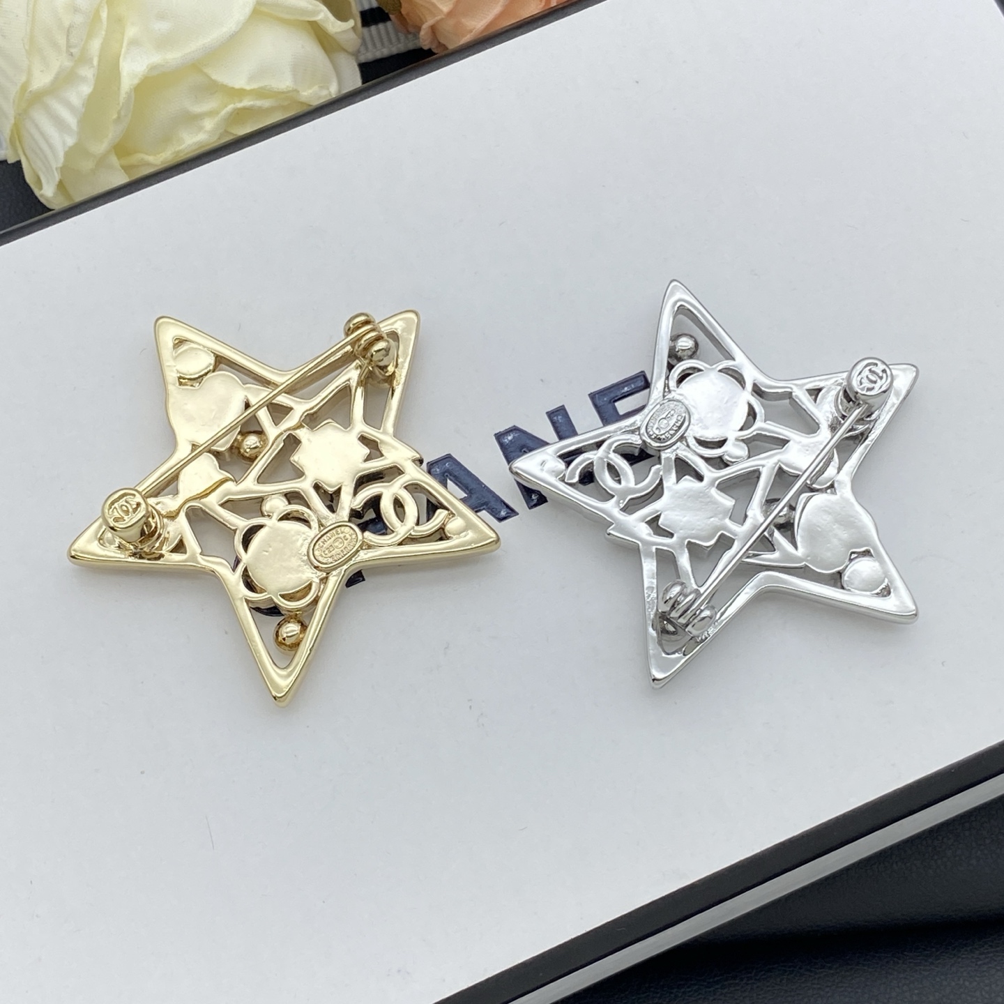 这款首饰是AAAAA 1:1 质量 (非常棒). 使用了和原版一模一样的材料. 商标部分也保持了和香奈儿/Chanel一样. 图片拍摄是实物首饰拍摄, 您所收到的实物保证和我们图片一模一样.