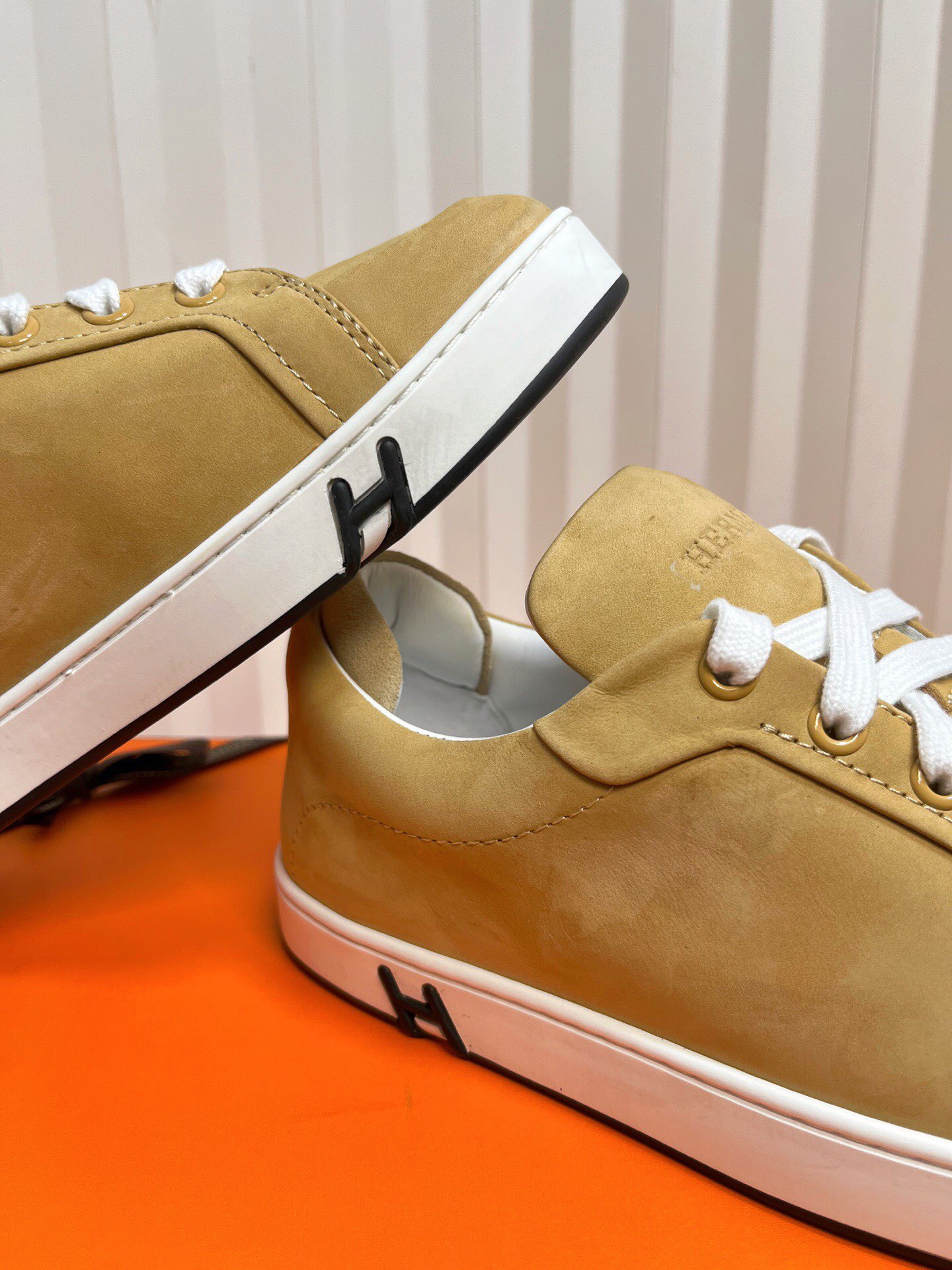 这款鞋子是AAAAA 1:1 质量 (非常棒). 使用了和原版一模一样的材料. 商标部分也保持了和爱马仕/Hermes一样. 图片拍摄是实物鞋子拍摄, 您所收到的实物保证和我们图片一模一样.