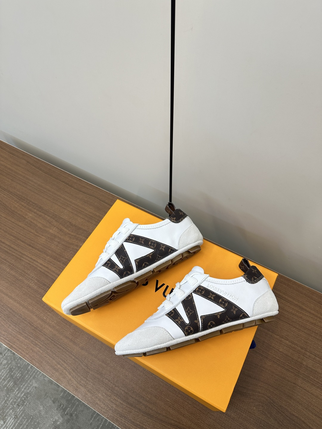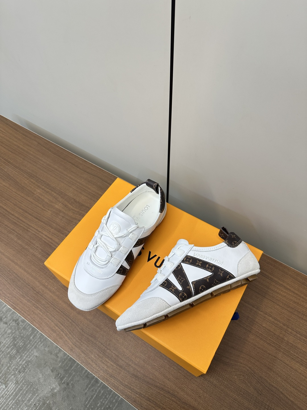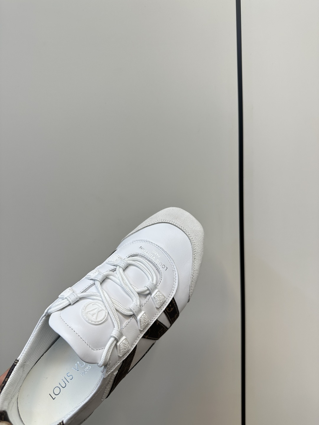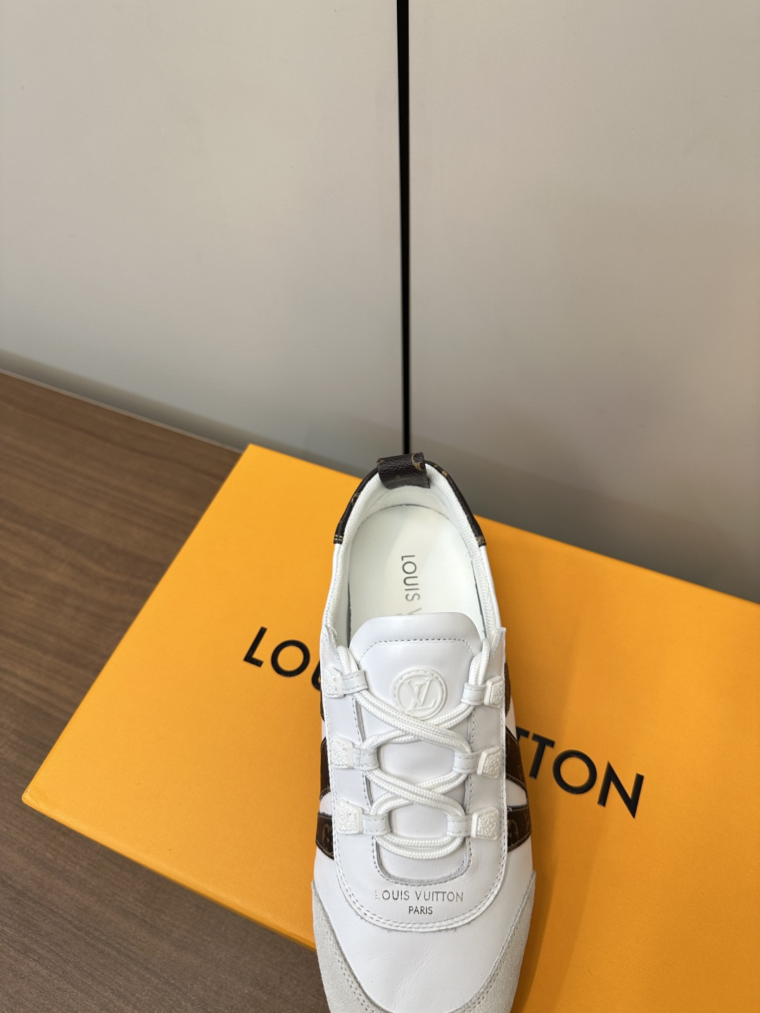 这款鞋子是AAAAA 1:1 质量 (非常棒). 使用了和原版一模一样的材料. 商标部分也保持了和路易威登/Louis Vuitton一样. 图片拍摄是实物鞋子拍摄, 您所收到的实物保证和我们图片一模一样.