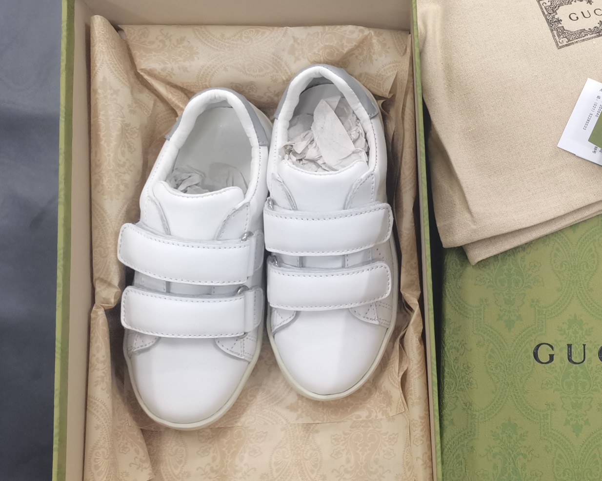 这款children's clothes是AAAAA 1:1 质量 (非常棒). 使用了和原版一模一样的材料. 商标部分也保持了和古奇/Gucci一样. 图片拍摄是实物children's clothes拍摄, 您所收到的实物保证和我们图片一模一样.