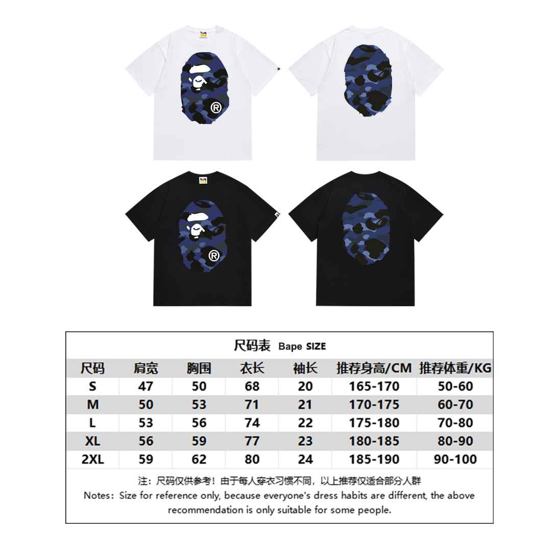 这款衣服是AAAAA 1:1 质量 (非常棒). 使用了和原版一模一样的材料. 商标部分也保持了和Bape一样. 图片拍摄是实物衣服拍摄, 您所收到的实物保证和我们图片一模一样.