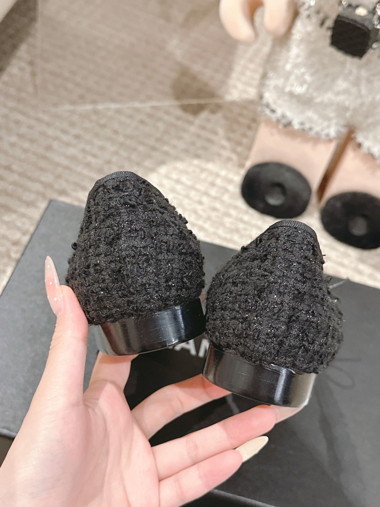 这款鞋子是AAAAA 1:1 质量 (非常棒). 使用了和原版一模一样的材料. 商标部分也保持了和香奈儿/Chanel一样. 图片拍摄是实物鞋子拍摄, 您所收到的实物保证和我们图片一模一样.