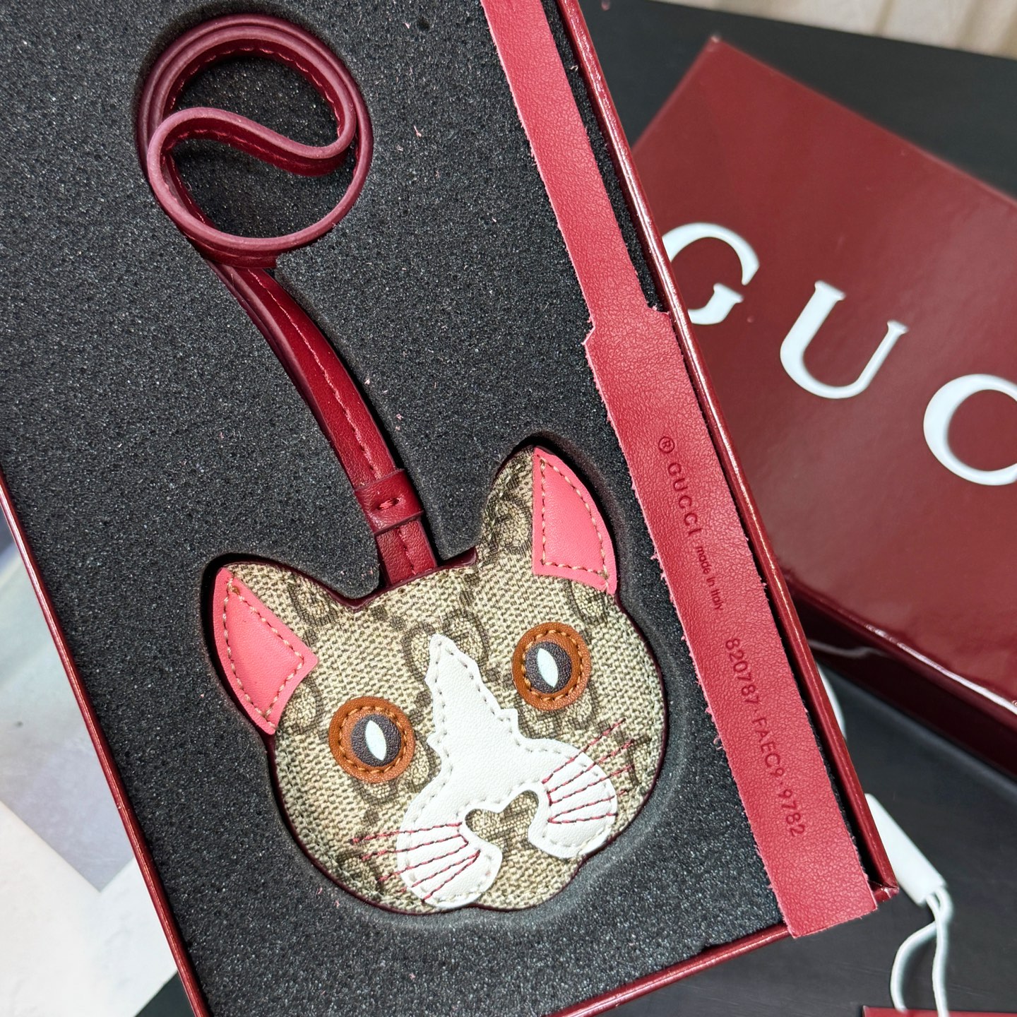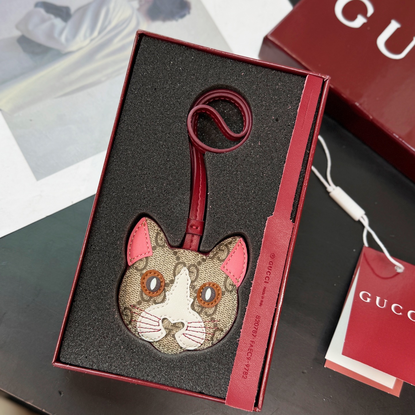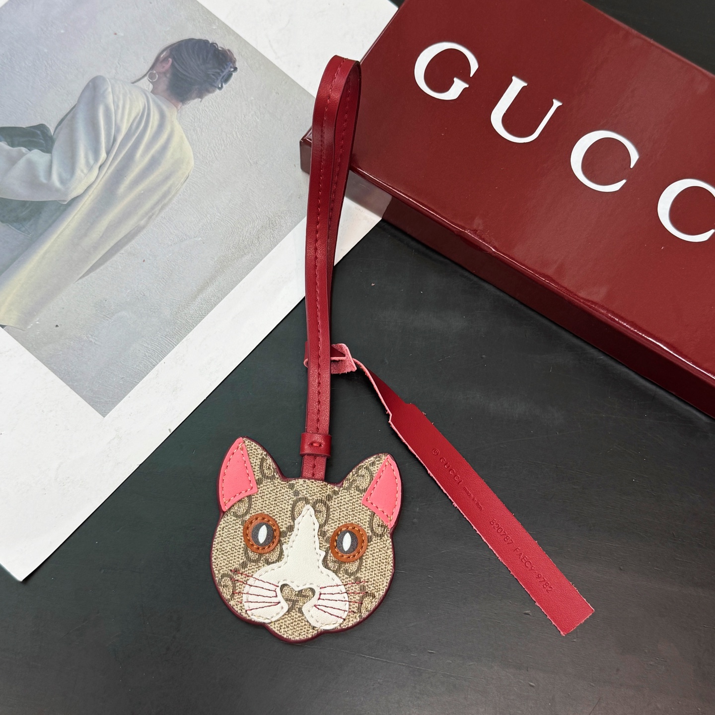 这款keychain是AAAAA 1:1 质量 (非常棒). 使用了和原版一模一样的材料. 商标部分也保持了和古奇/Gucci一样. 图片拍摄是实物keychain拍摄, 您所收到的实物保证和我们图片一模一样.
