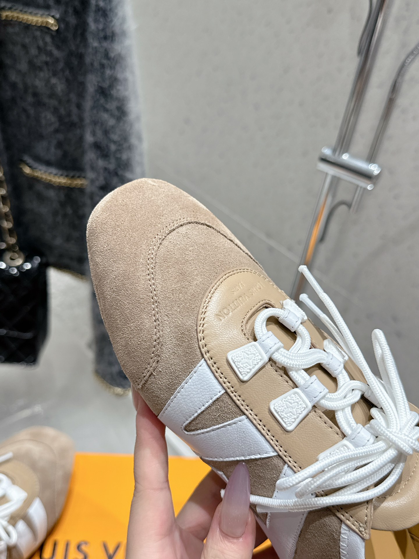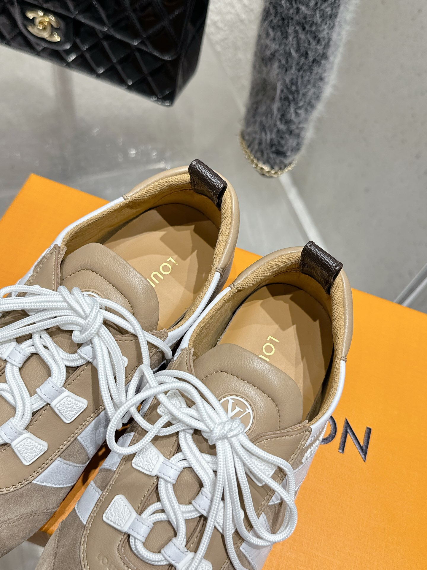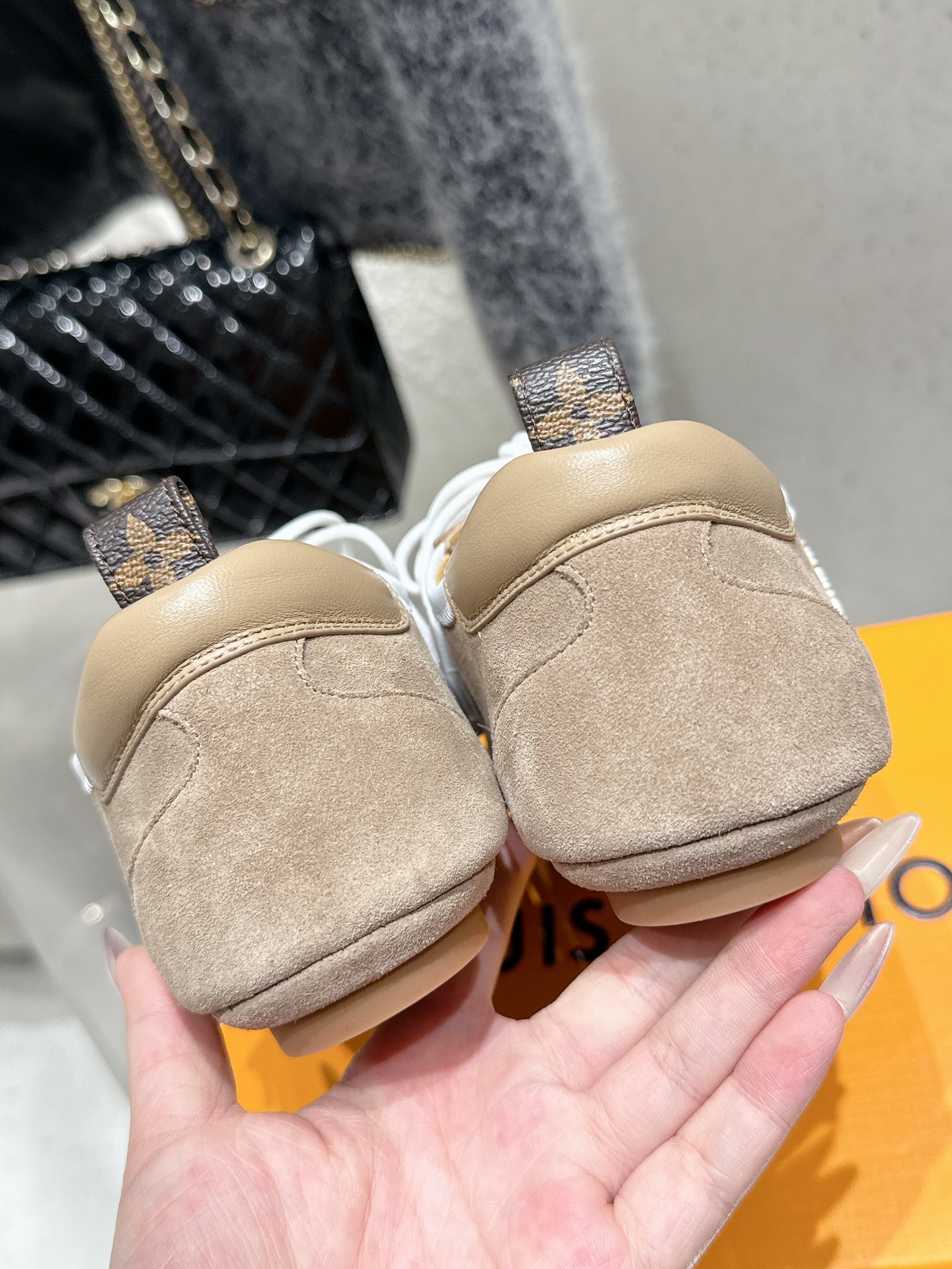 这款鞋子是AAAAA 1:1 质量 (非常棒). 使用了和原版一模一样的材料. 商标部分也保持了和路易威登/Louis Vuitton一样. 图片拍摄是实物鞋子拍摄, 您所收到的实物保证和我们图片一模一样.