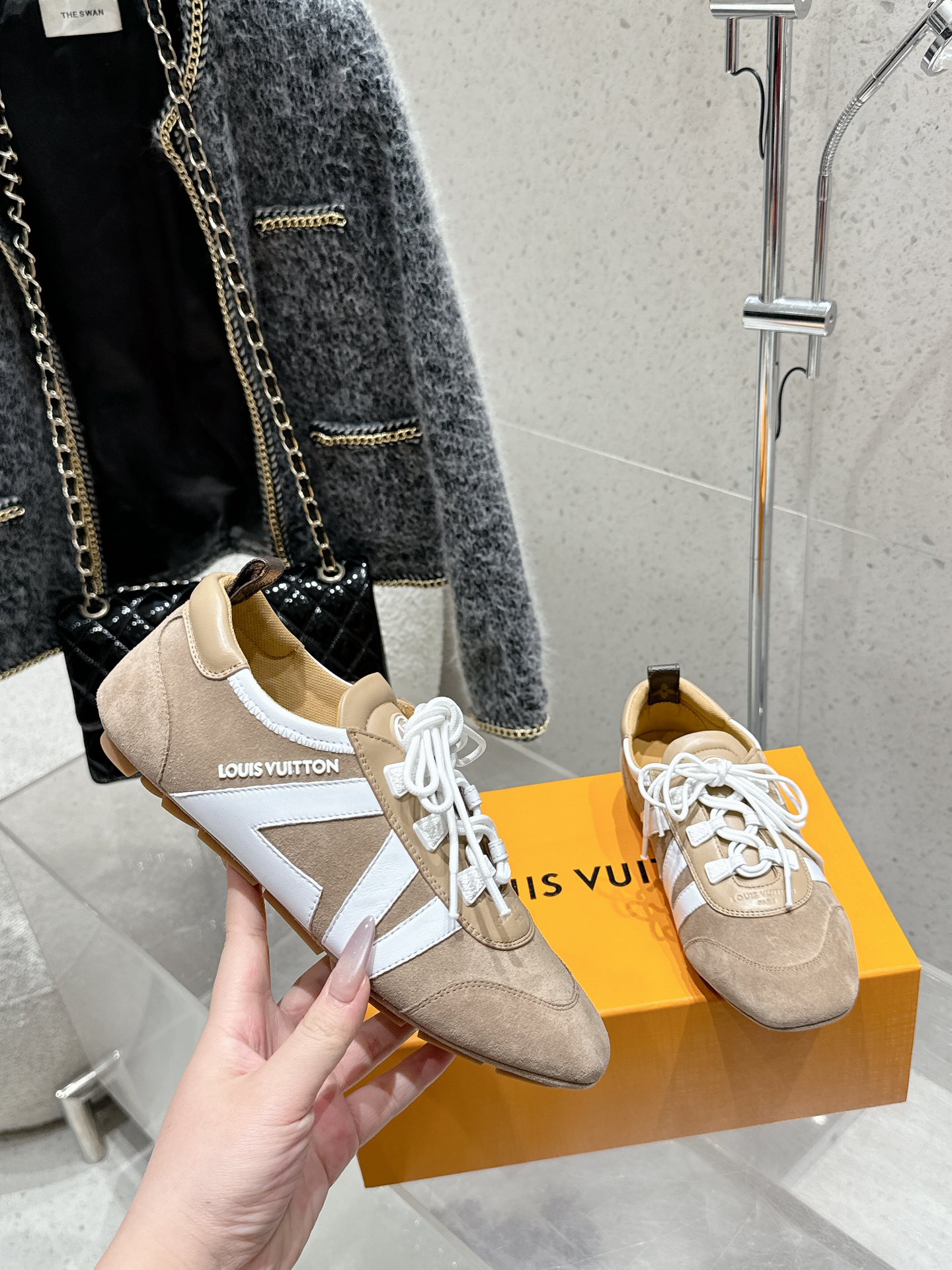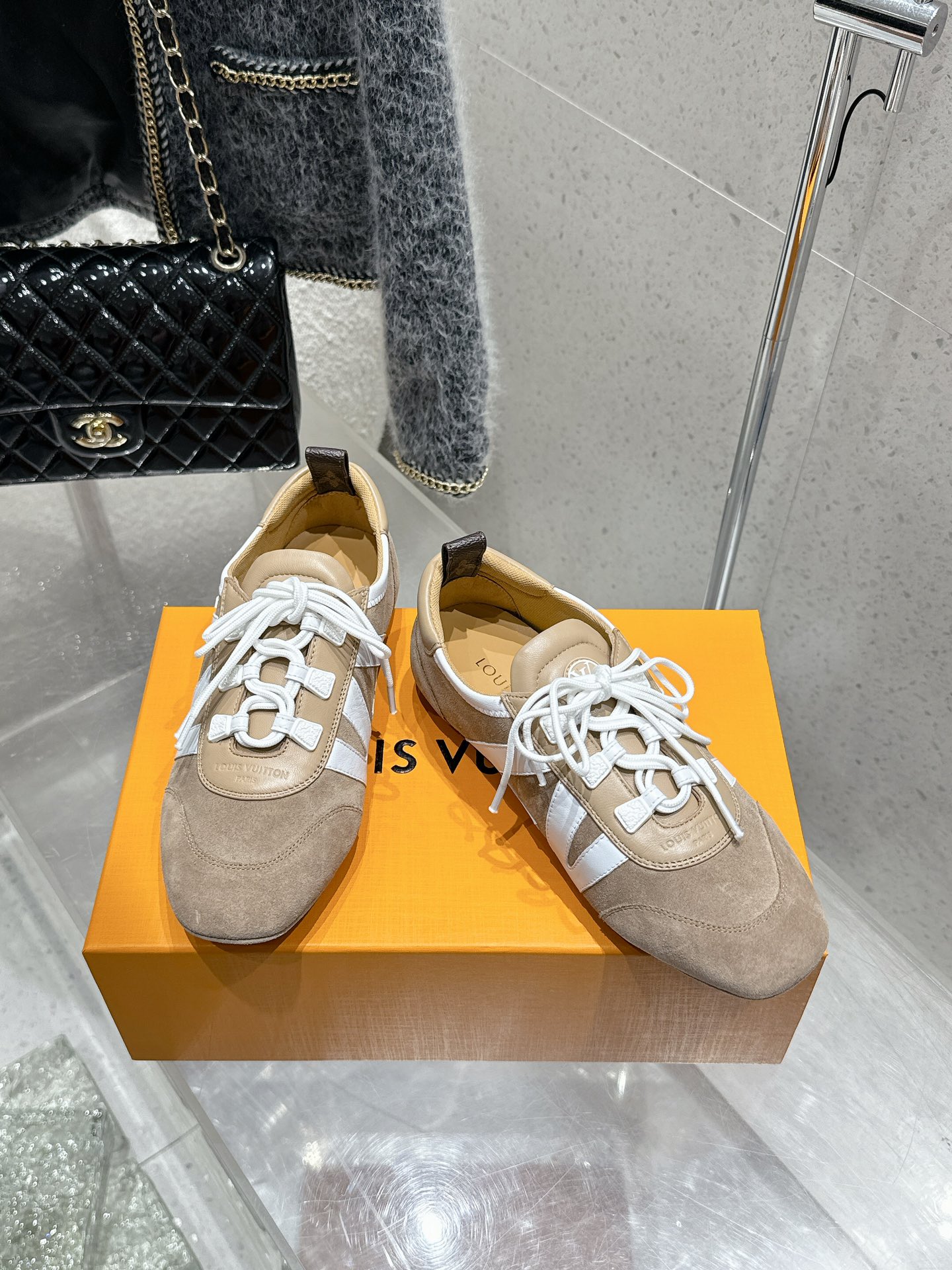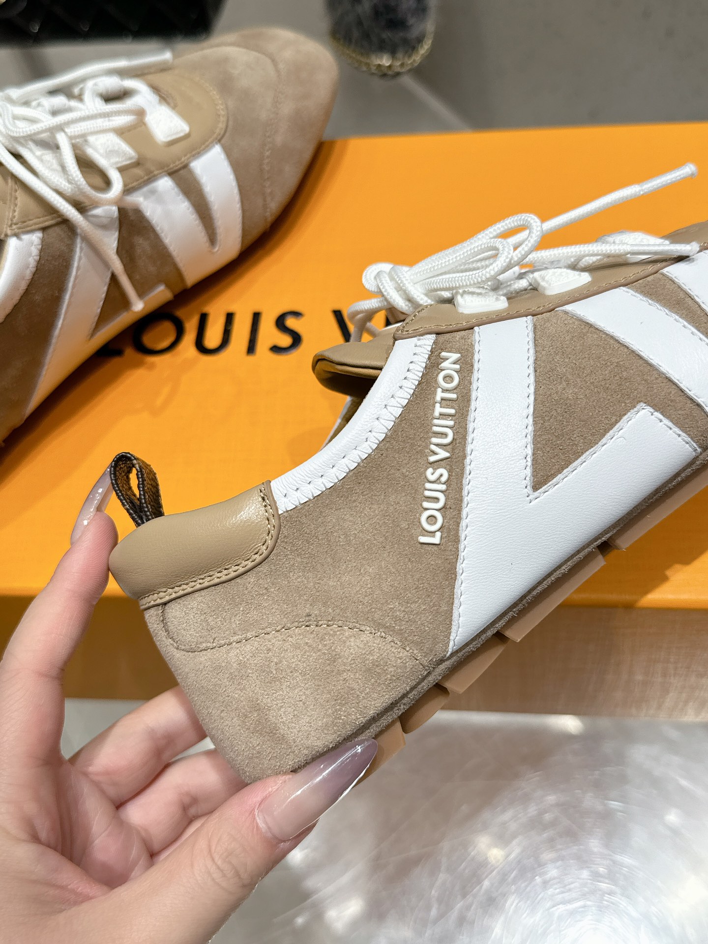 这款鞋子是AAAAA 1:1 质量 (非常棒). 使用了和原版一模一样的材料. 商标部分也保持了和路易威登/Louis Vuitton一样. 图片拍摄是实物鞋子拍摄, 您所收到的实物保证和我们图片一模一样.