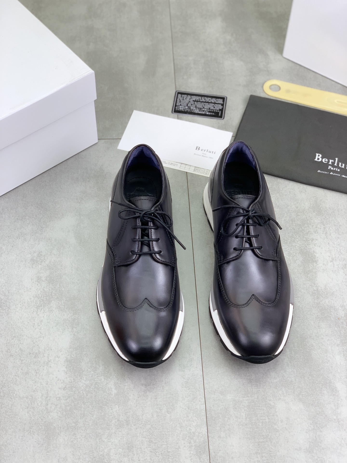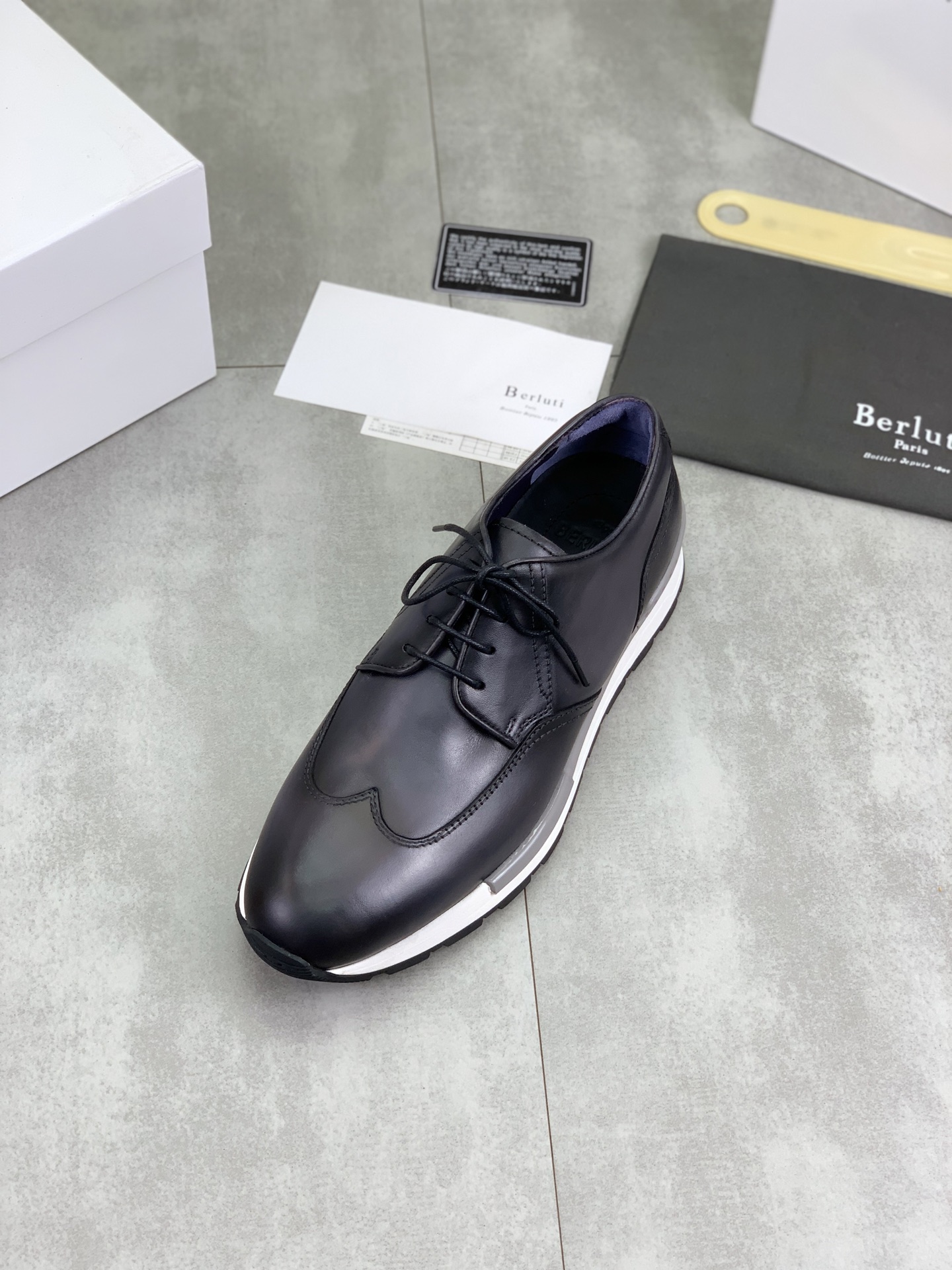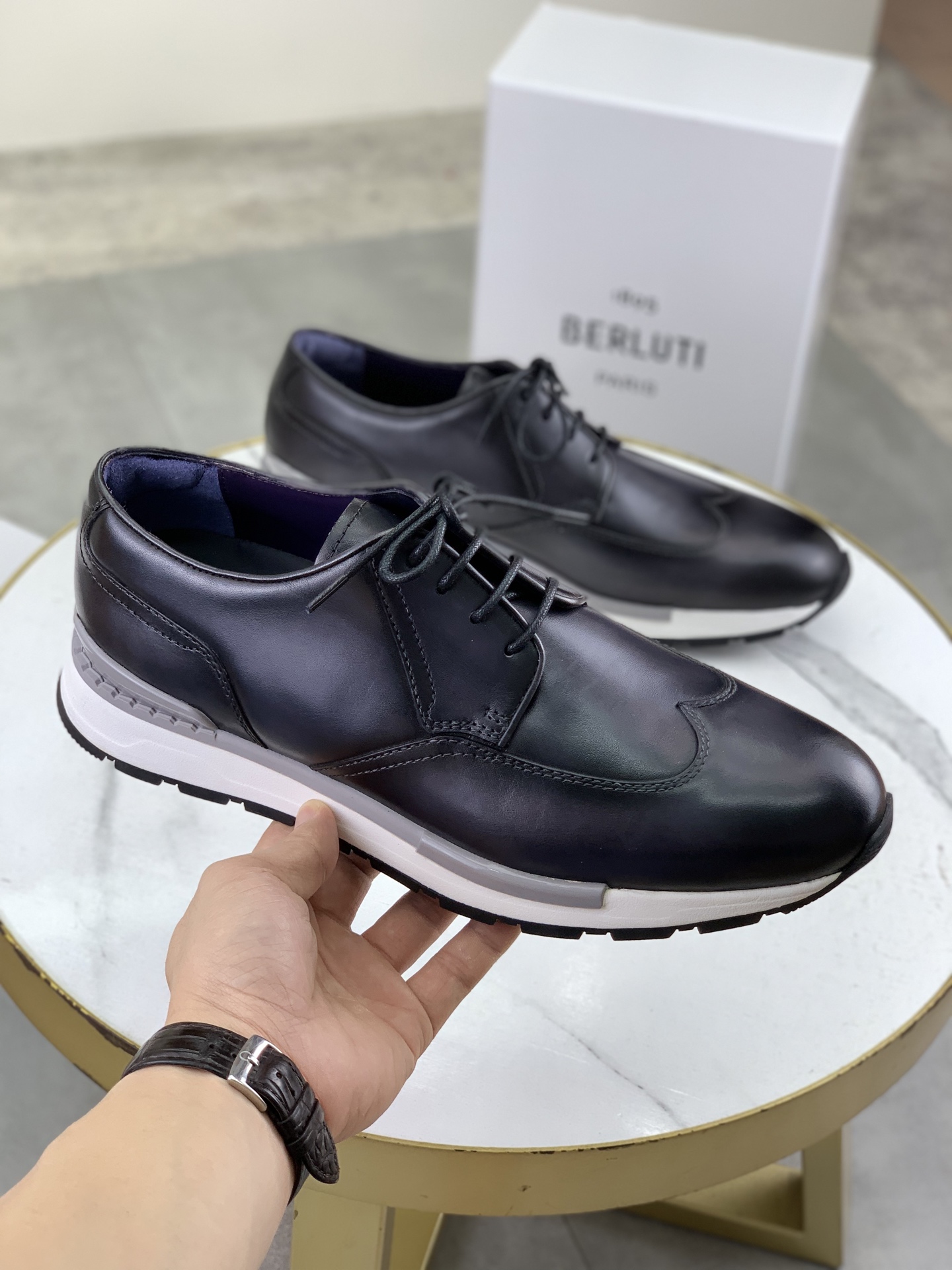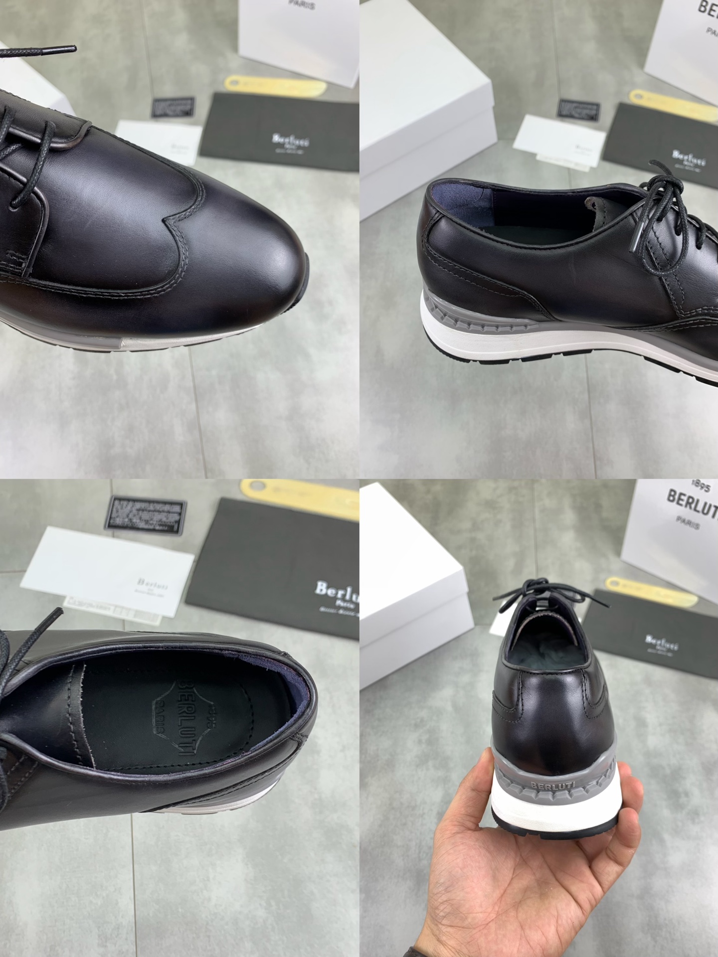 这款鞋子是AAAAA 1:1 质量 (非常棒). 使用了和原版一模一样的材料. 商标部分也保持了和Berluti一样. 图片拍摄是实物鞋子拍摄, 您所收到的实物保证和我们图片一模一样.