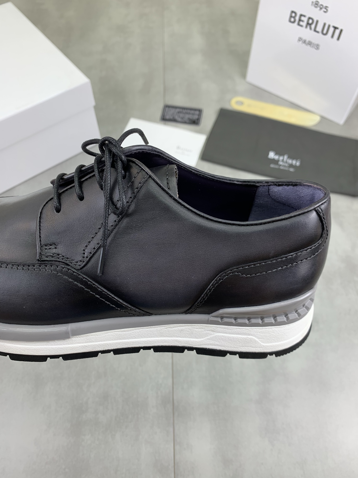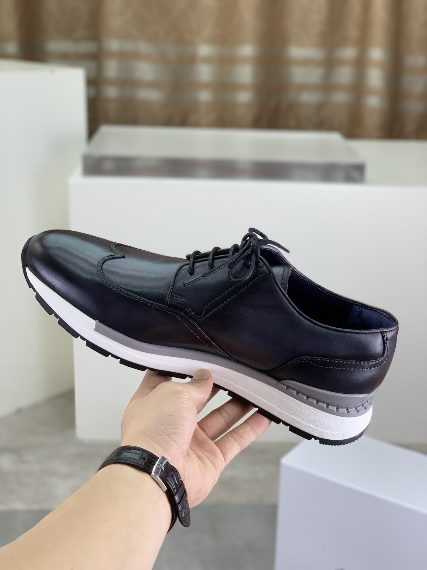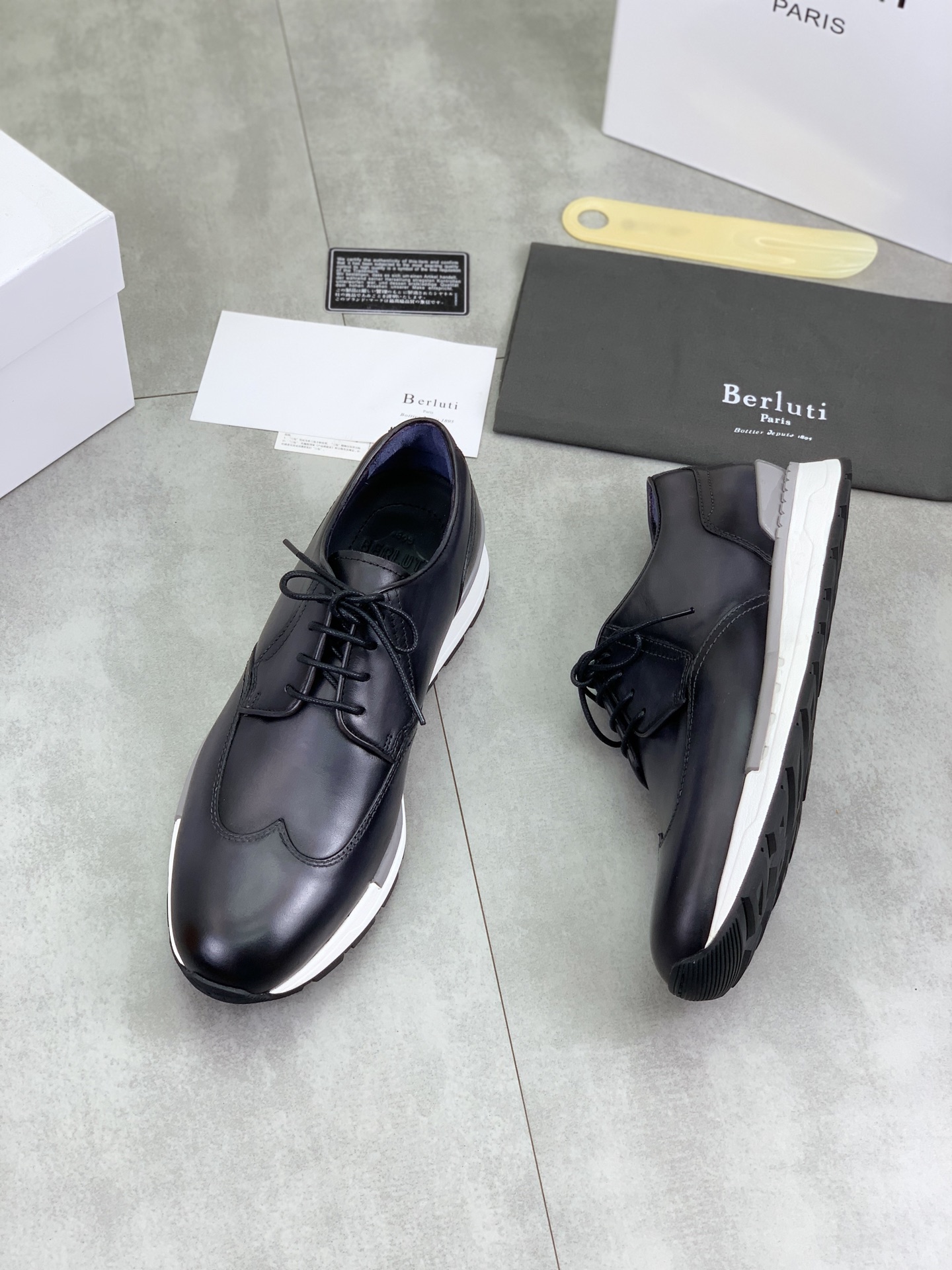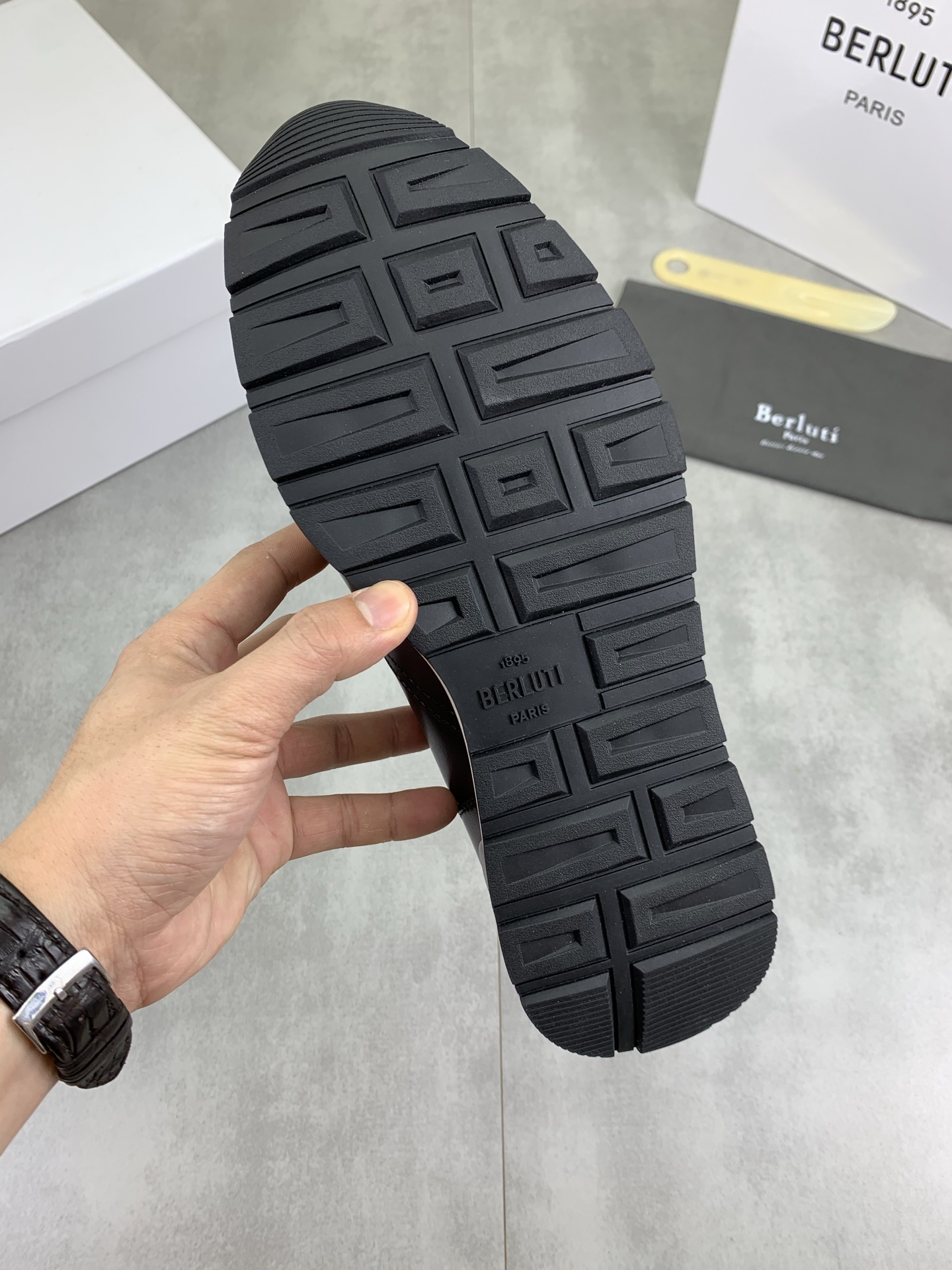 这款鞋子是AAAAA 1:1 质量 (非常棒). 使用了和原版一模一样的材料. 商标部分也保持了和Berluti一样. 图片拍摄是实物鞋子拍摄, 您所收到的实物保证和我们图片一模一样.