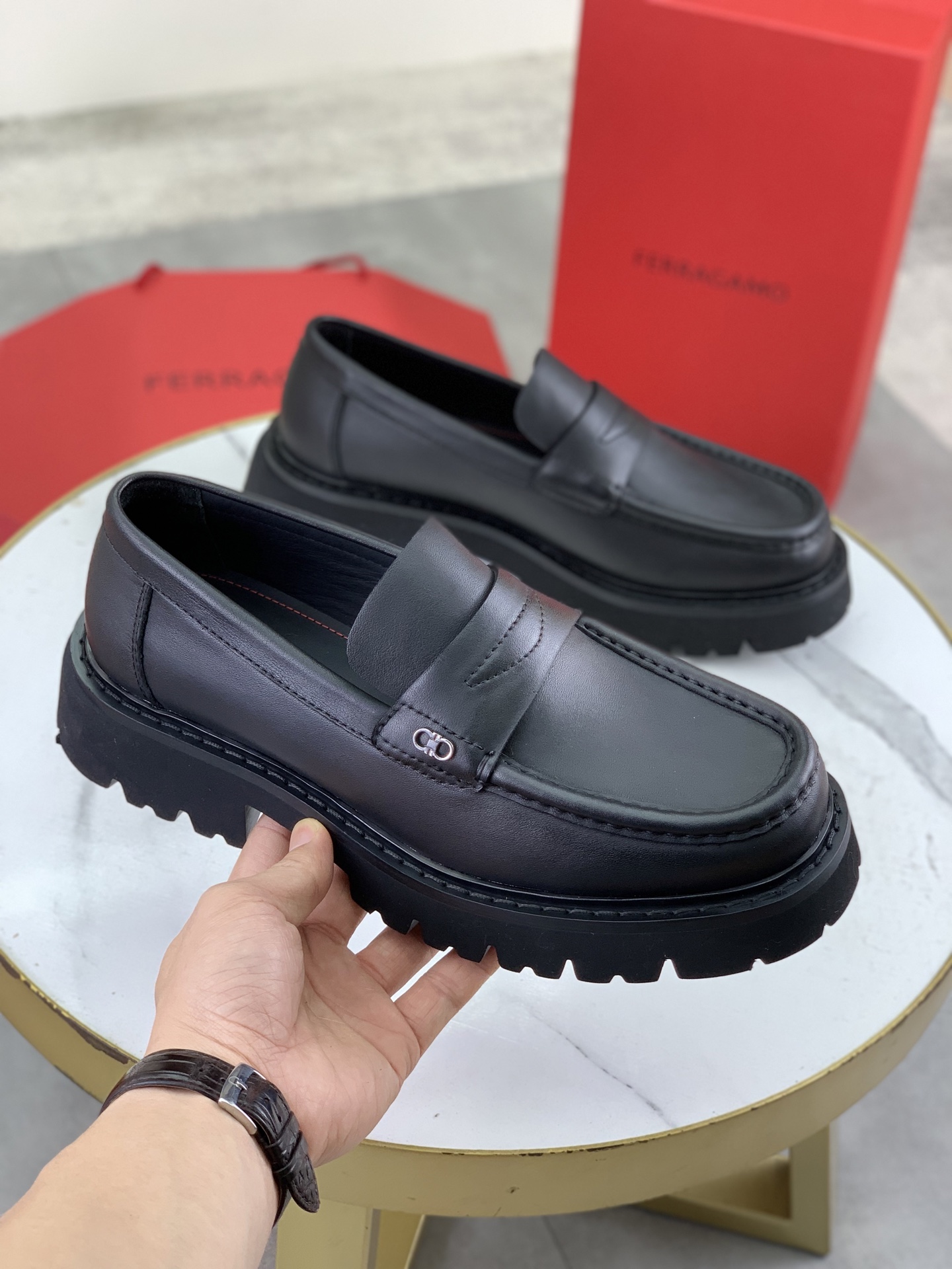 这款鞋子是AAAAA 1:1 质量 (非常棒). 使用了和原版一模一样的材料. 商标部分也保持了和菲拉格慕/Salvatore Ferragamo一样. 图片拍摄是实物鞋子拍摄, 您所收到的实物保证和我们图片一模一样.