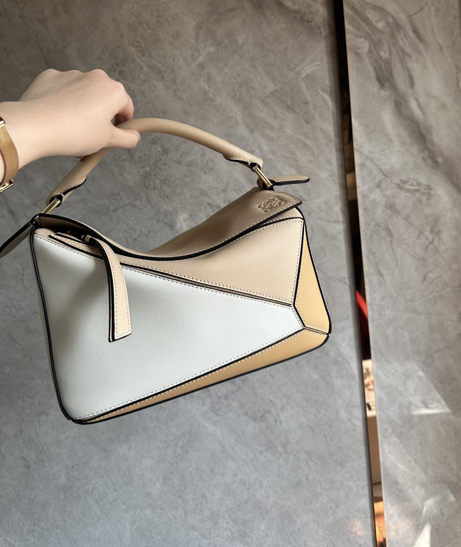 这款包包是AAAAA 1:1 质量 (非常棒). 使用了和原版一模一样的材料. 商标部分也保持了和罗意威/Loewe一样. 图片拍摄是实物包包拍摄, 您所收到的实物保证和我们图片一模一样.