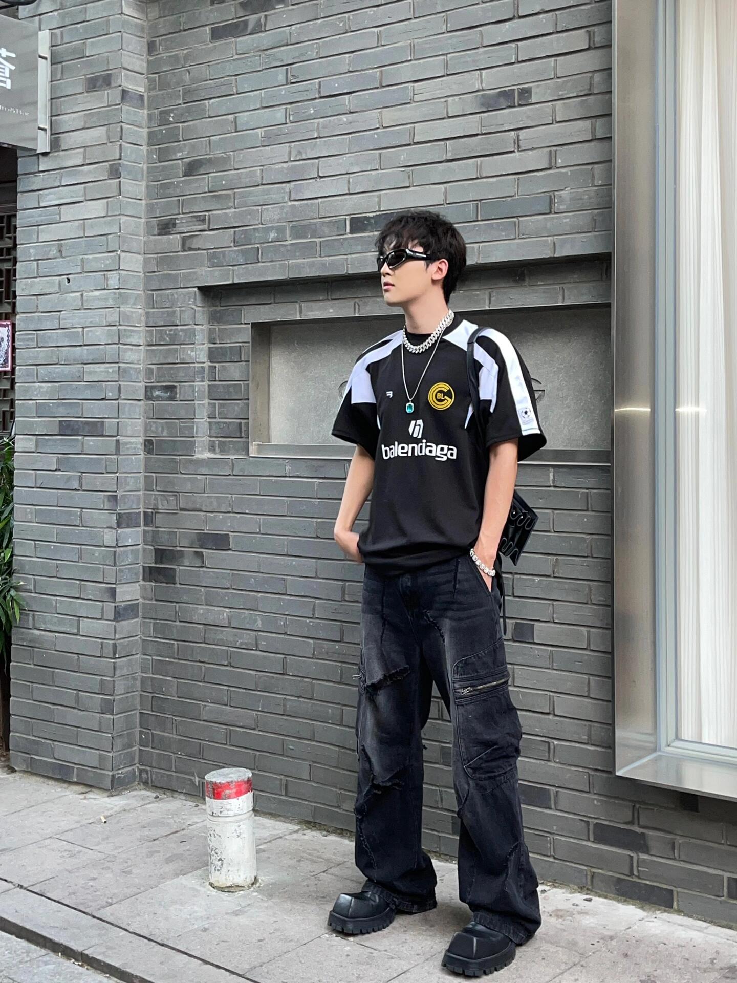 这款衣服是AAAAA 1:1 质量 (非常棒). 使用了和原版一模一样的材料. 商标部分也保持了和巴黎世家/Balenciaga一样. 图片拍摄是实物衣服拍摄, 您所收到的实物保证和我们图片一模一样.