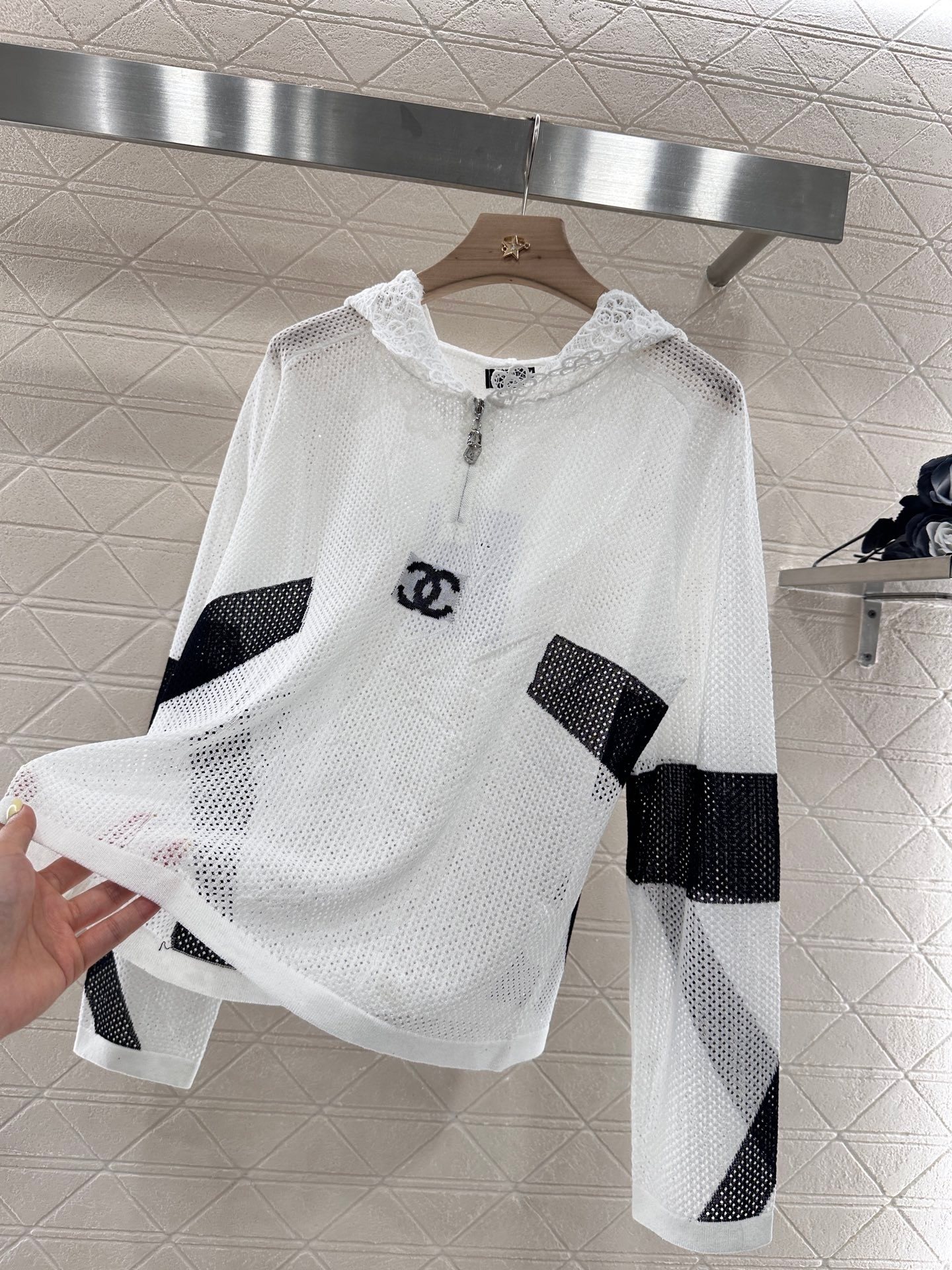 这款衣服是AAAAA 1:1 质量 (非常棒). 使用了和原版一模一样的材料. 商标部分也保持了和香奈儿/Chanel一样. 图片拍摄是实物衣服拍摄, 您所收到的实物保证和我们图片一模一样.