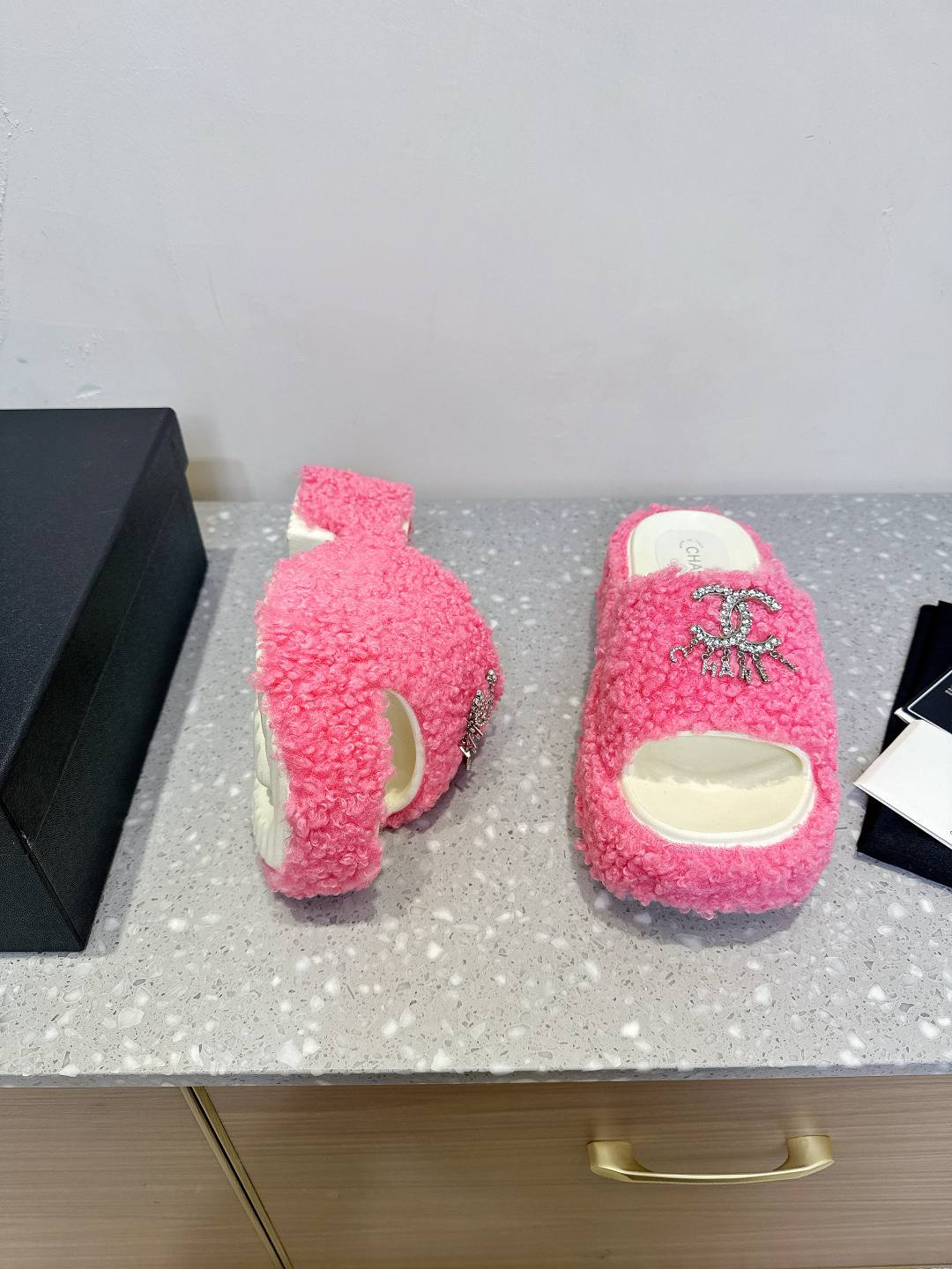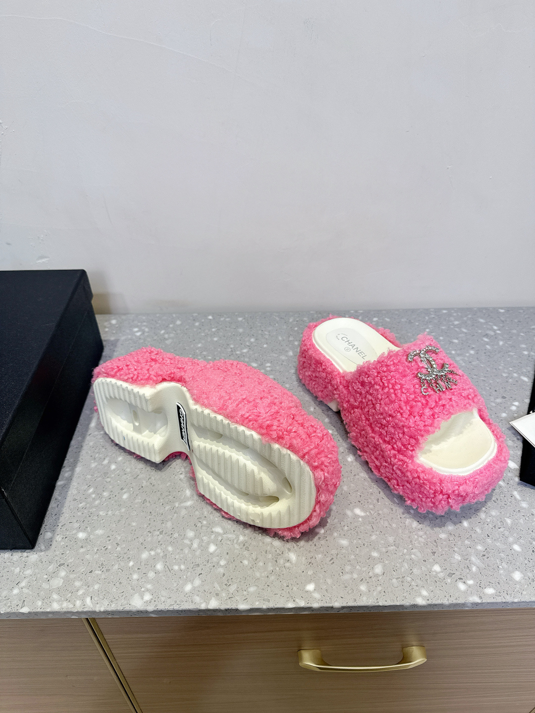 这款鞋子是AAAAA 1:1 质量 (非常棒). 使用了和原版一模一样的材料. 商标部分也保持了和香奈儿/Chanel一样. 图片拍摄是实物鞋子拍摄, 您所收到的实物保证和我们图片一模一样.
