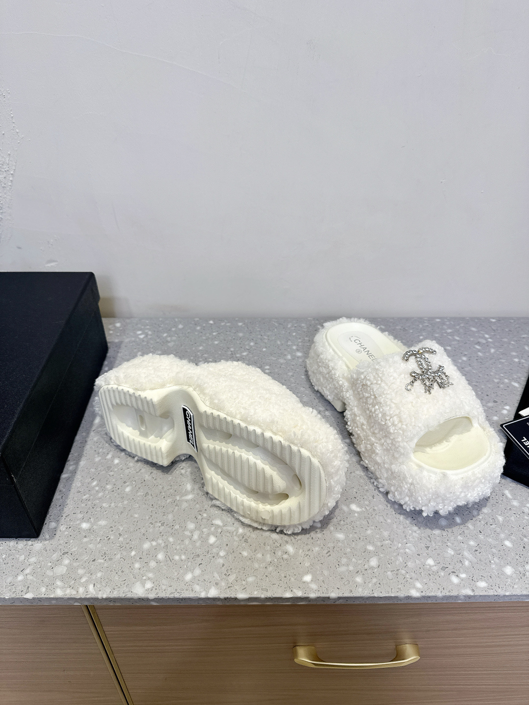 这款鞋子是AAAAA 1:1 质量 (非常棒). 使用了和原版一模一样的材料. 商标部分也保持了和香奈儿/Chanel一样. 图片拍摄是实物鞋子拍摄, 您所收到的实物保证和我们图片一模一样.