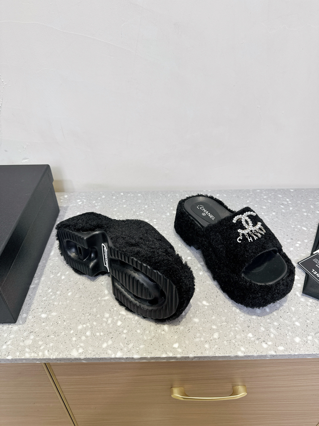 这款鞋子是AAAAA 1:1 质量 (非常棒). 使用了和原版一模一样的材料. 商标部分也保持了和香奈儿/Chanel一样. 图片拍摄是实物鞋子拍摄, 您所收到的实物保证和我们图片一模一样.