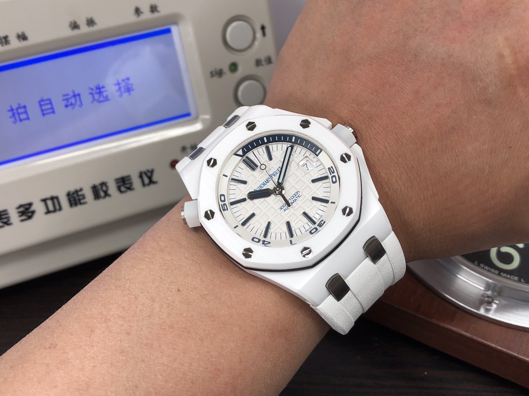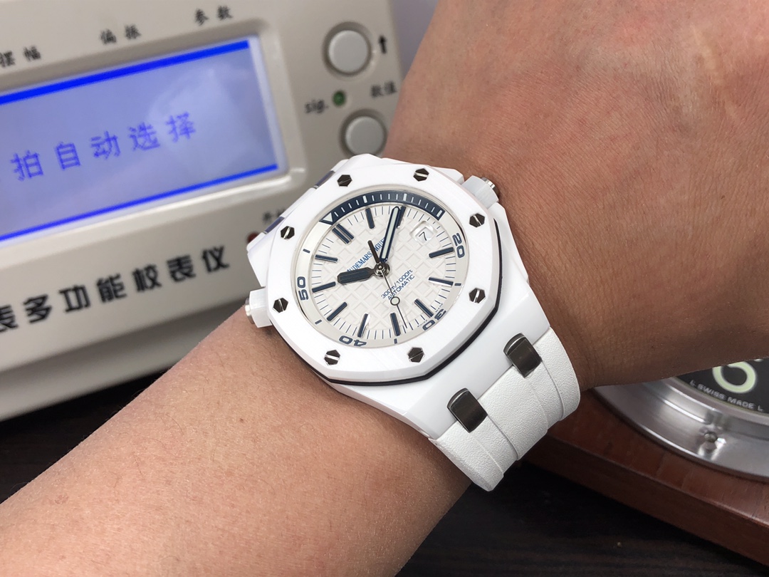 这款手表是AAAAA 1:1 质量 (非常棒). 使用了和原版一模一样的材料. 商标部分也保持了和爱彼/Audemars Piguet一样. 图片拍摄是实物手表拍摄, 您所收到的实物保证和我们图片一模一样.