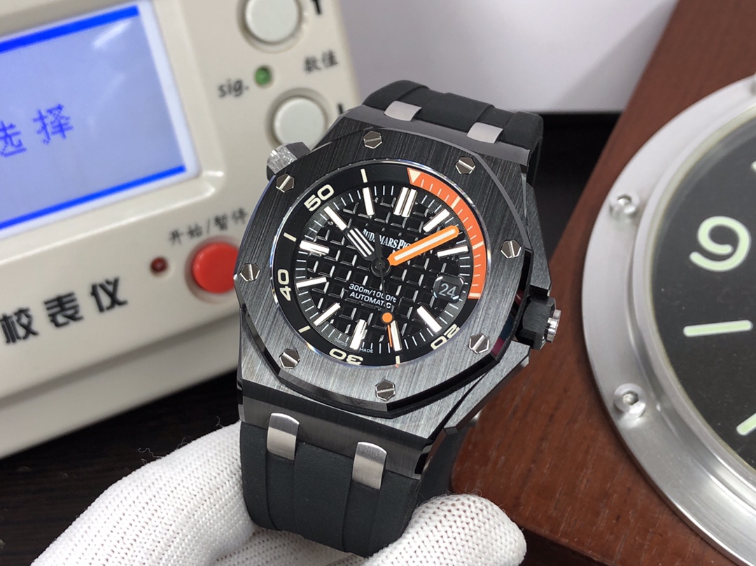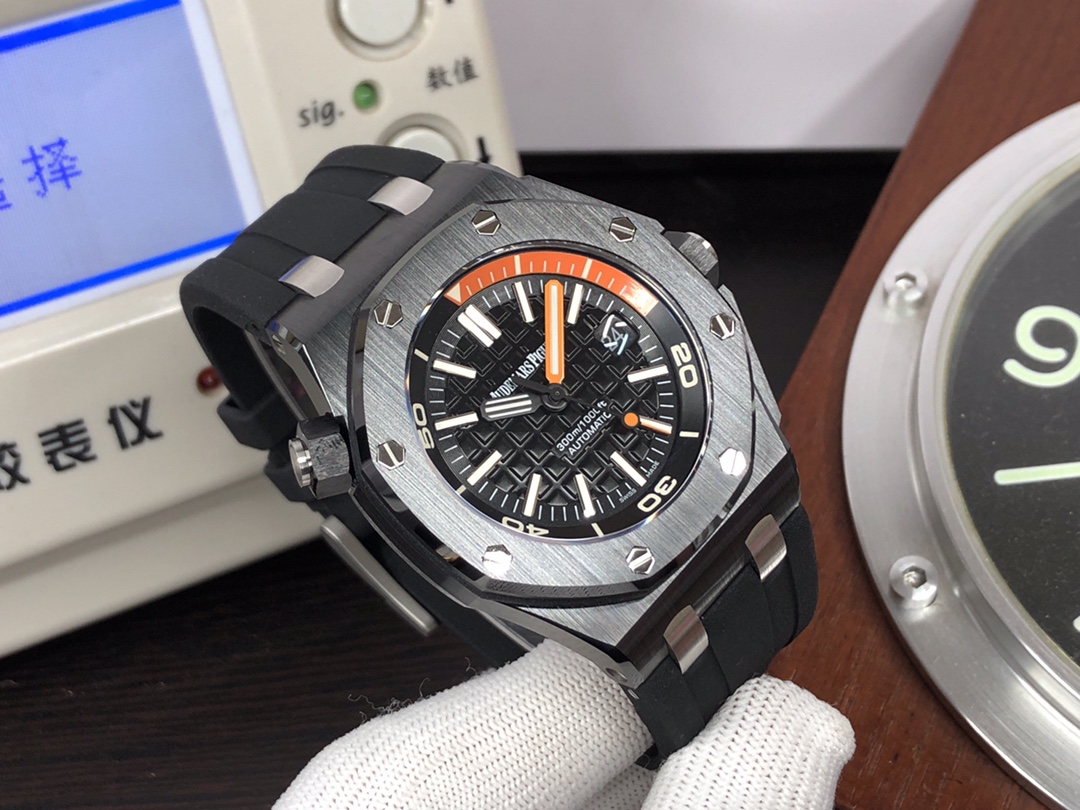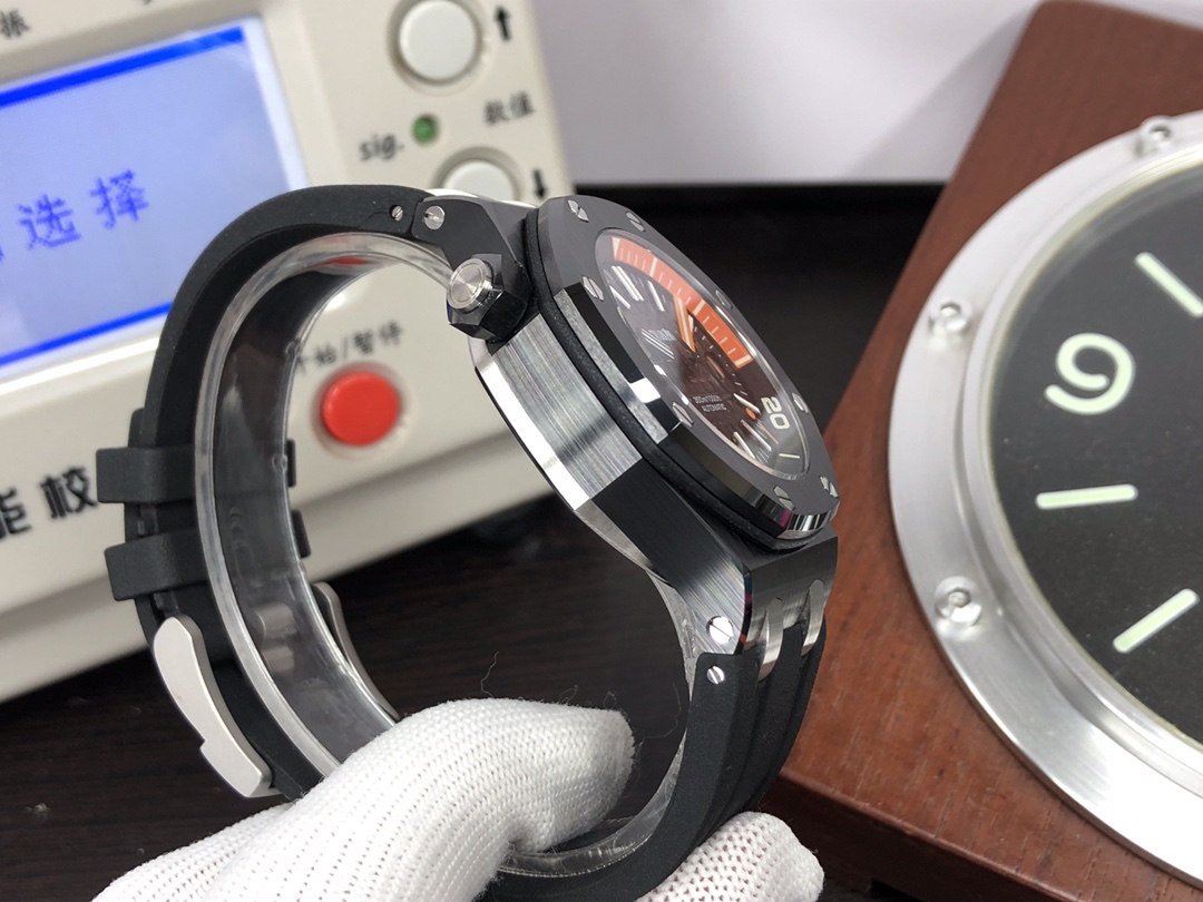 这款手表是AAAAA 1:1 质量 (非常棒). 使用了和原版一模一样的材料. 商标部分也保持了和爱彼/Audemars Piguet一样. 图片拍摄是实物手表拍摄, 您所收到的实物保证和我们图片一模一样.