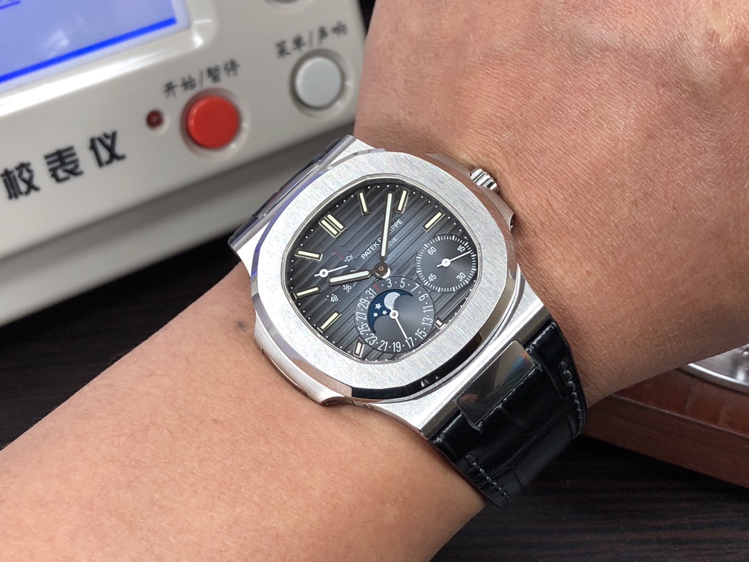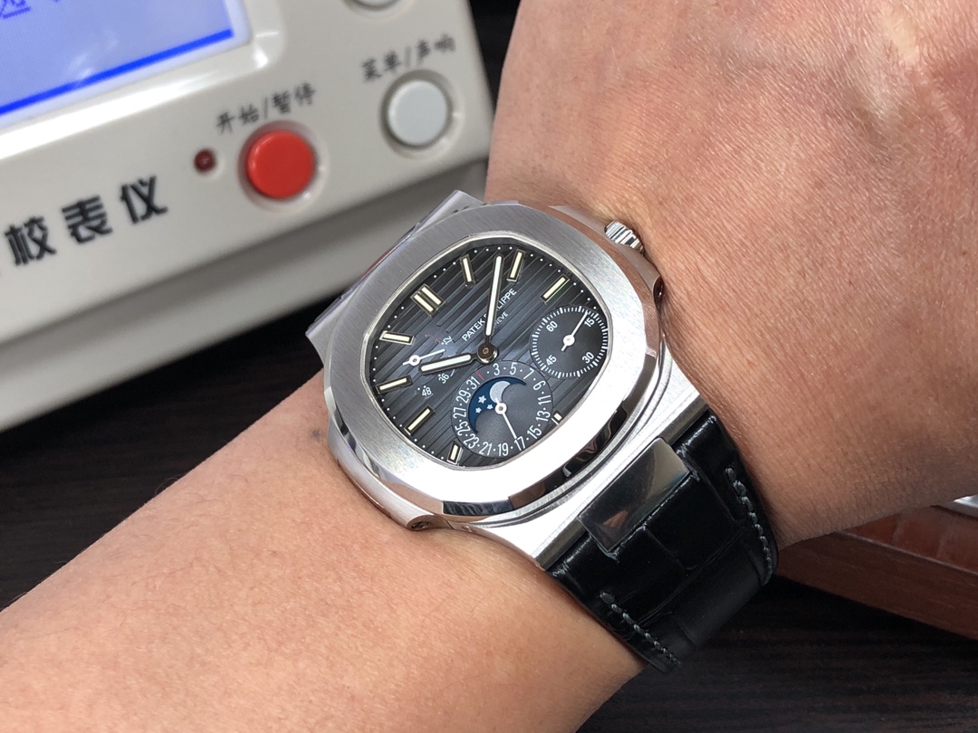 这款手表是AAAAA 1:1 质量 (非常棒). 使用了和原版一模一样的材料. 商标部分也保持了和百达翡丽/Patek Philippe一样. 图片拍摄是实物手表拍摄, 您所收到的实物保证和我们图片一模一样.