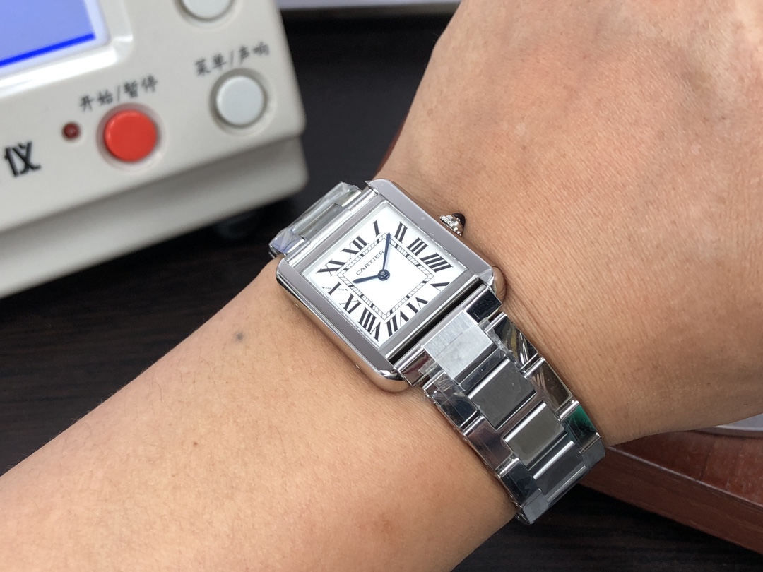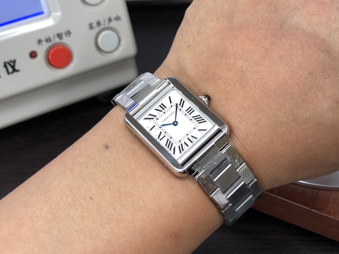 这款手表是AAAAA 1:1 质量 (非常棒). 使用了和原版一模一样的材料. 商标部分也保持了和卡地亚/Cartier一样. 图片拍摄是实物手表拍摄, 您所收到的实物保证和我们图片一模一样.
