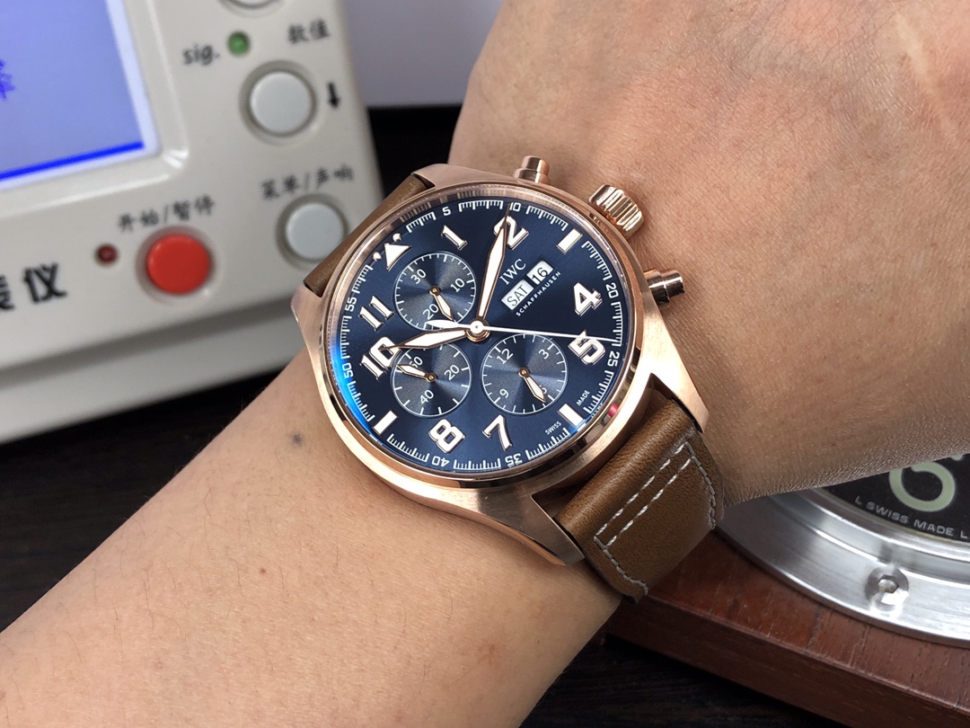这款手表是AAAAA 1:1 质量 (非常棒). 使用了和原版一模一样的材料. 商标部分也保持了和万国表/IWC Schaffhausen一样. 图片拍摄是实物手表拍摄, 您所收到的实物保证和我们图片一模一样.