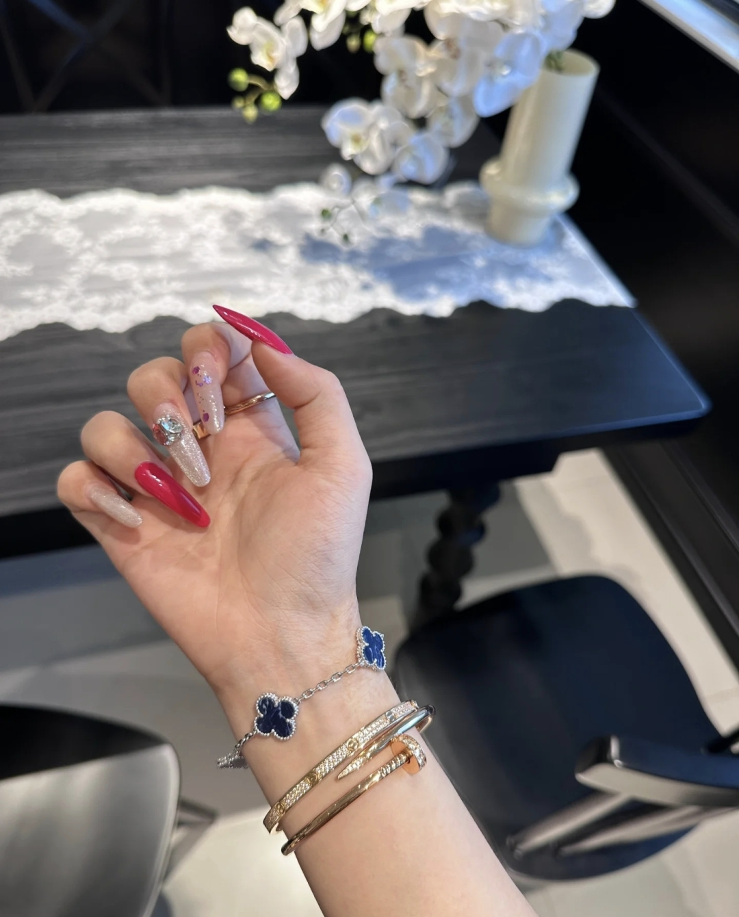 这款首饰是AAAAA 1:1 质量 (非常棒). 使用了和原版一模一样的材料. 商标部分也保持了和一样. 图片拍摄是实物首饰拍摄, 您所收到的实物保证和我们图片一模一样.