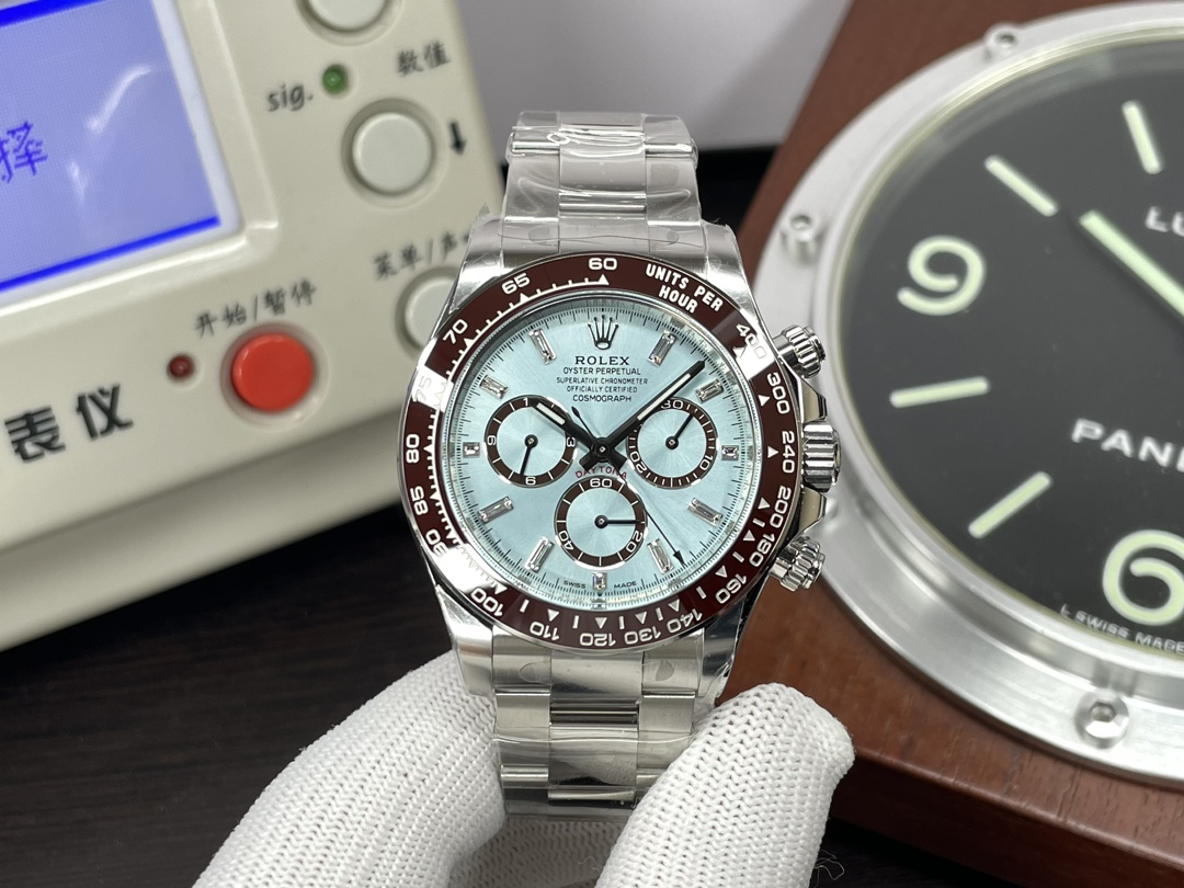 这款手表是AAAAA 1:1 质量 (非常棒). 使用了和原版一模一样的材料. 商标部分也保持了和劳力士/Rolex一样. 图片拍摄是实物手表拍摄, 您所收到的实物保证和我们图片一模一样.