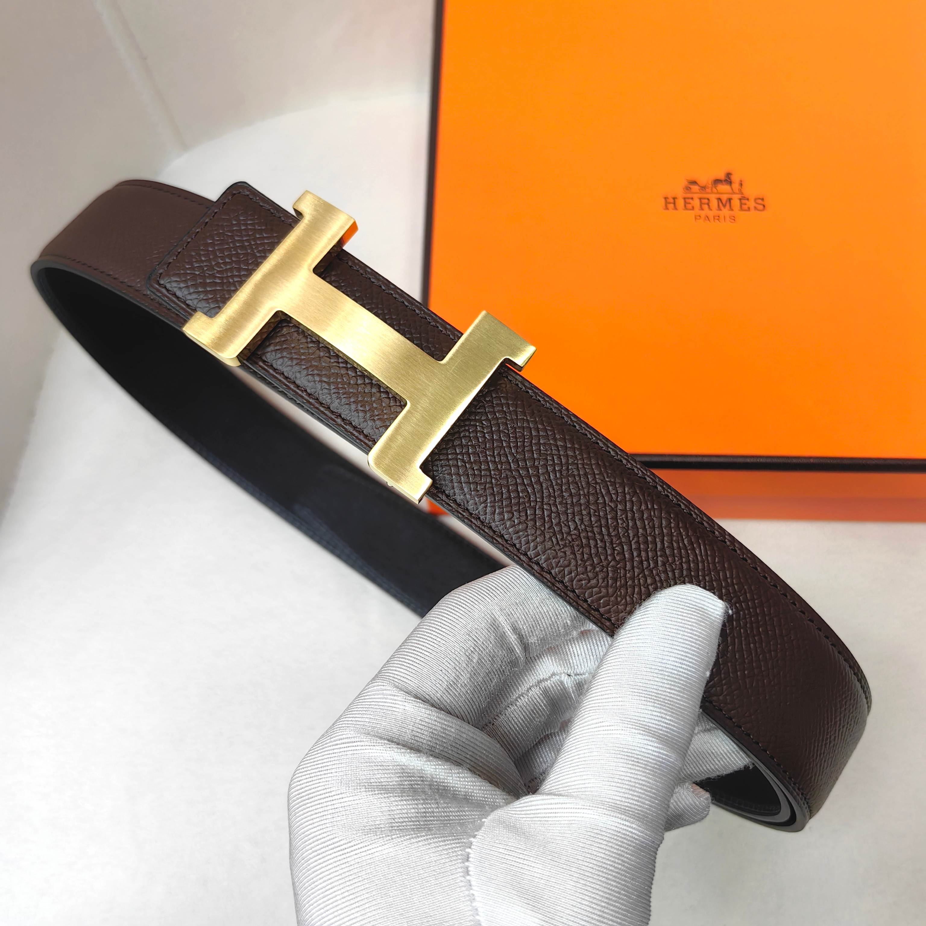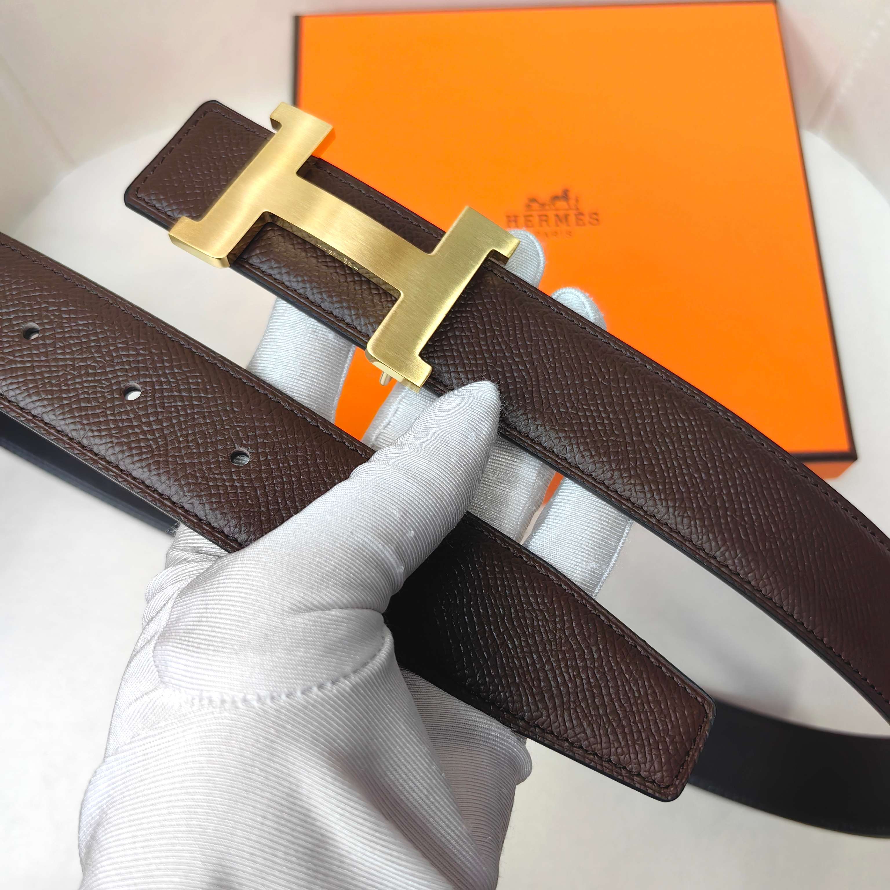 这款皮带是AAAAA 1:1 质量 (非常棒). 使用了和原版一模一样的材料. 商标部分也保持了和爱马仕/Hermes一样. 图片拍摄是实物皮带拍摄, 您所收到的实物保证和我们图片一模一样.