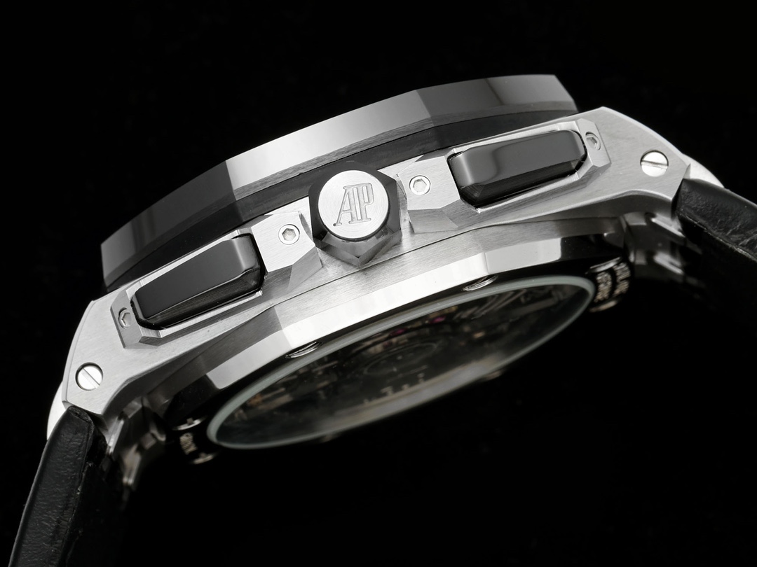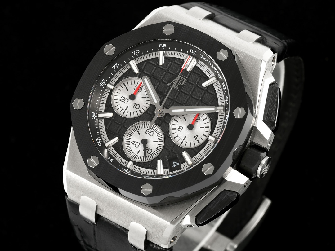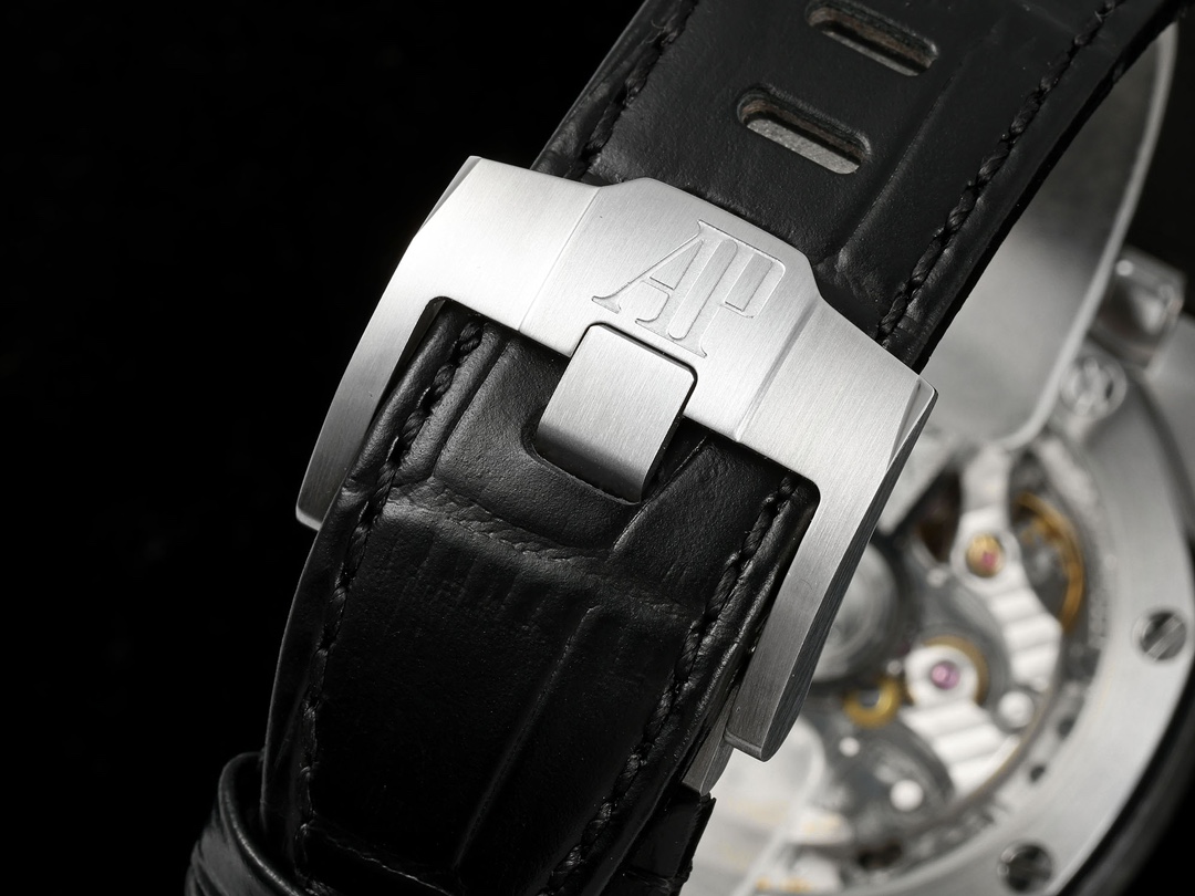 这款手表是AAAAA 1:1 质量 (非常棒). 使用了和原版一模一样的材料. 商标部分也保持了和爱彼/Audemars Piguet一样. 图片拍摄是实物手表拍摄, 您所收到的实物保证和我们图片一模一样.