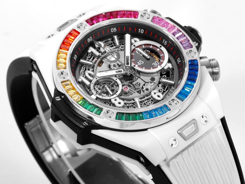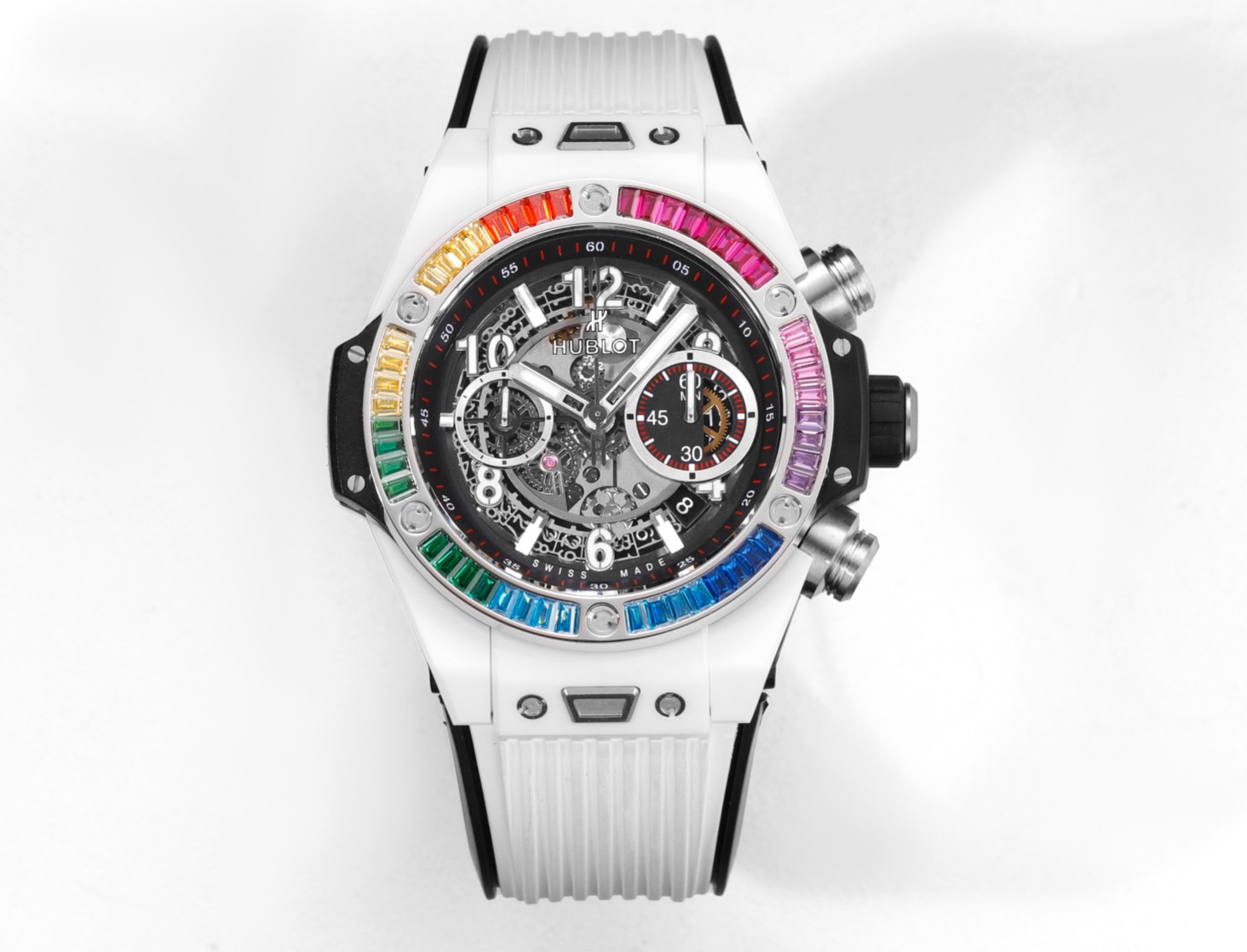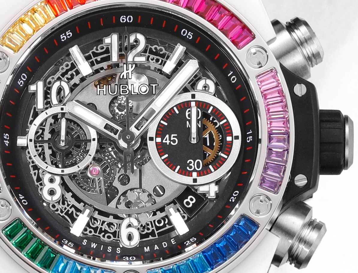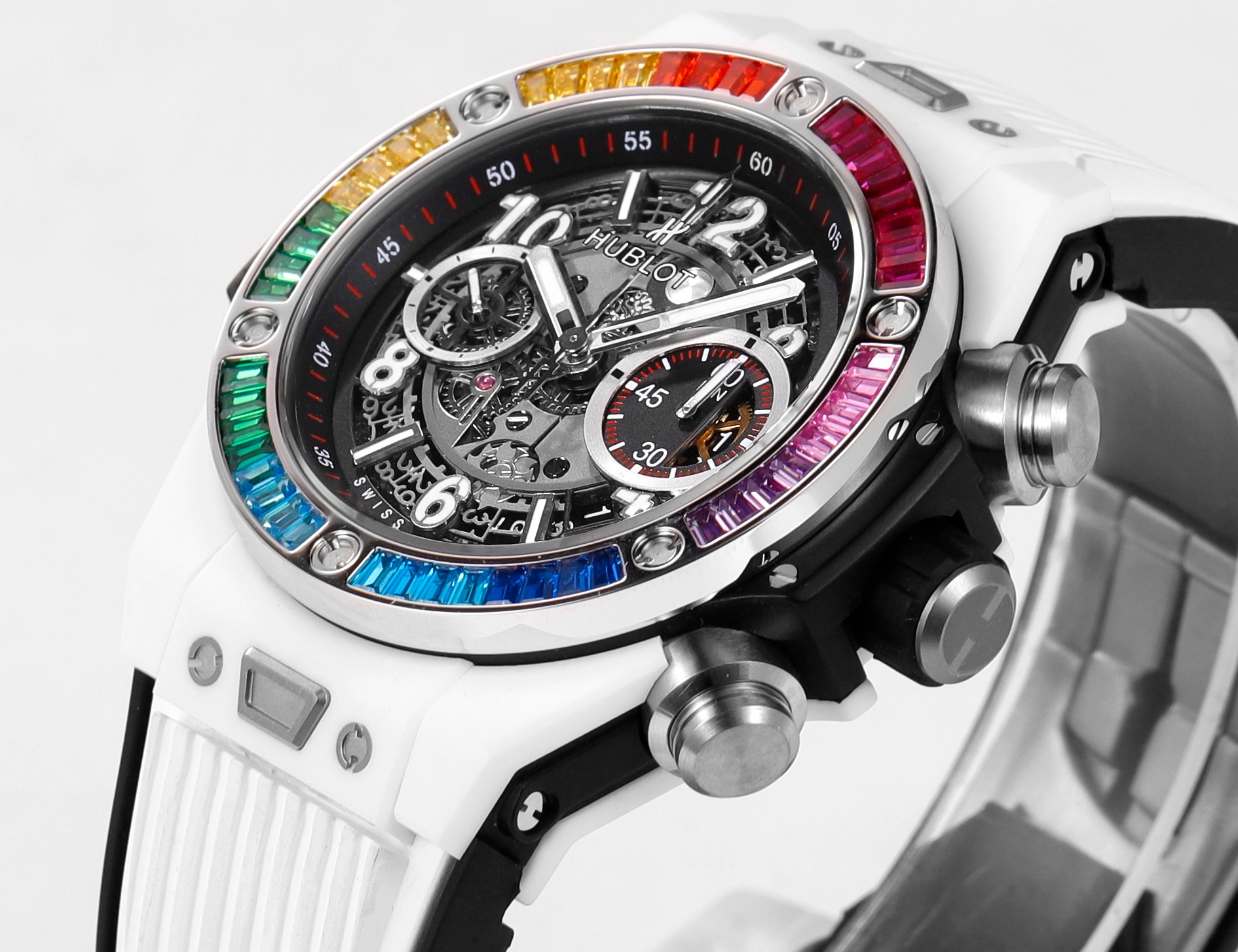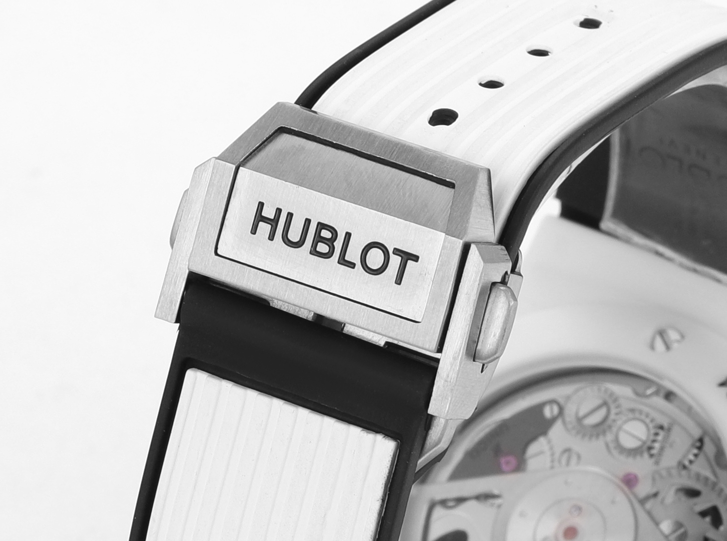 这款手表是AAAAA 1:1 质量 (非常棒). 使用了和原版一模一样的材料. 商标部分也保持了和Hublot一样. 图片拍摄是实物手表拍摄, 您所收到的实物保证和我们图片一模一样.