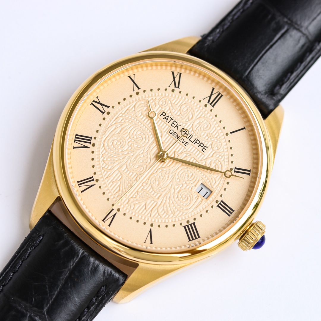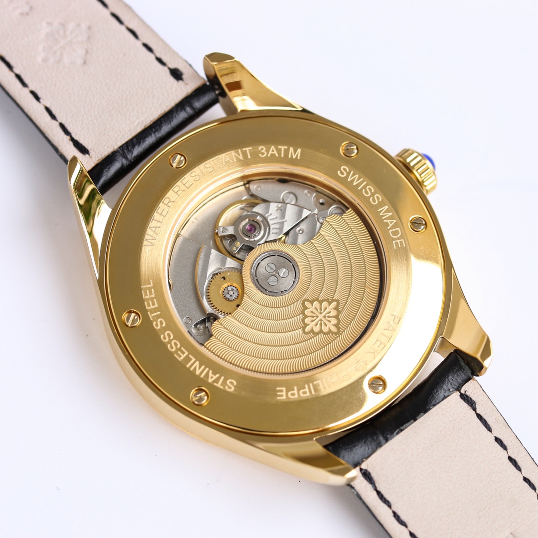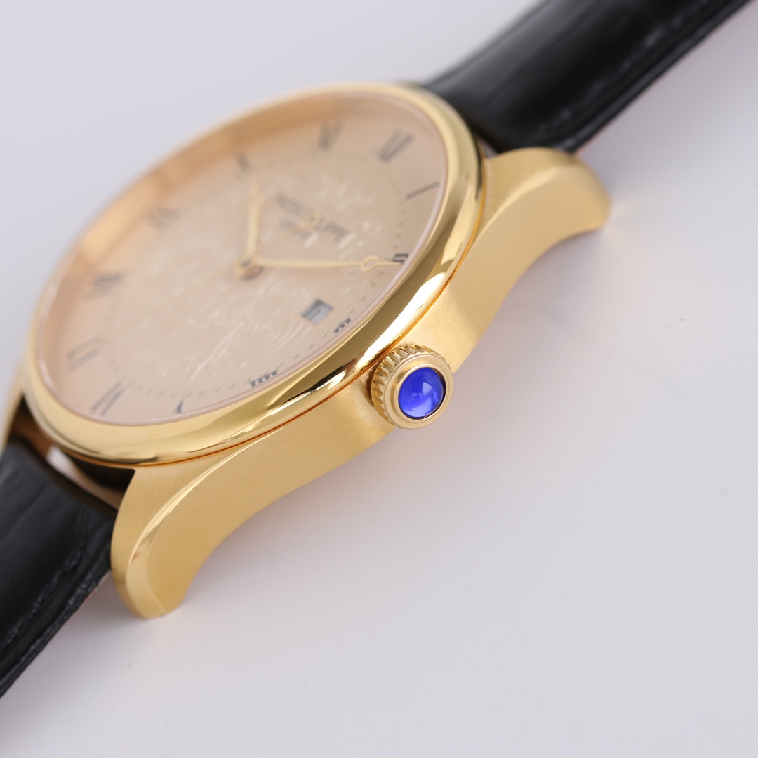 这款手表是AAAAA 1:1 质量 (非常棒). 使用了和原版一模一样的材料. 商标部分也保持了和百达翡丽/Patek Philippe一样. 图片拍摄是实物手表拍摄, 您所收到的实物保证和我们图片一模一样.
