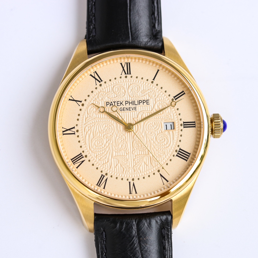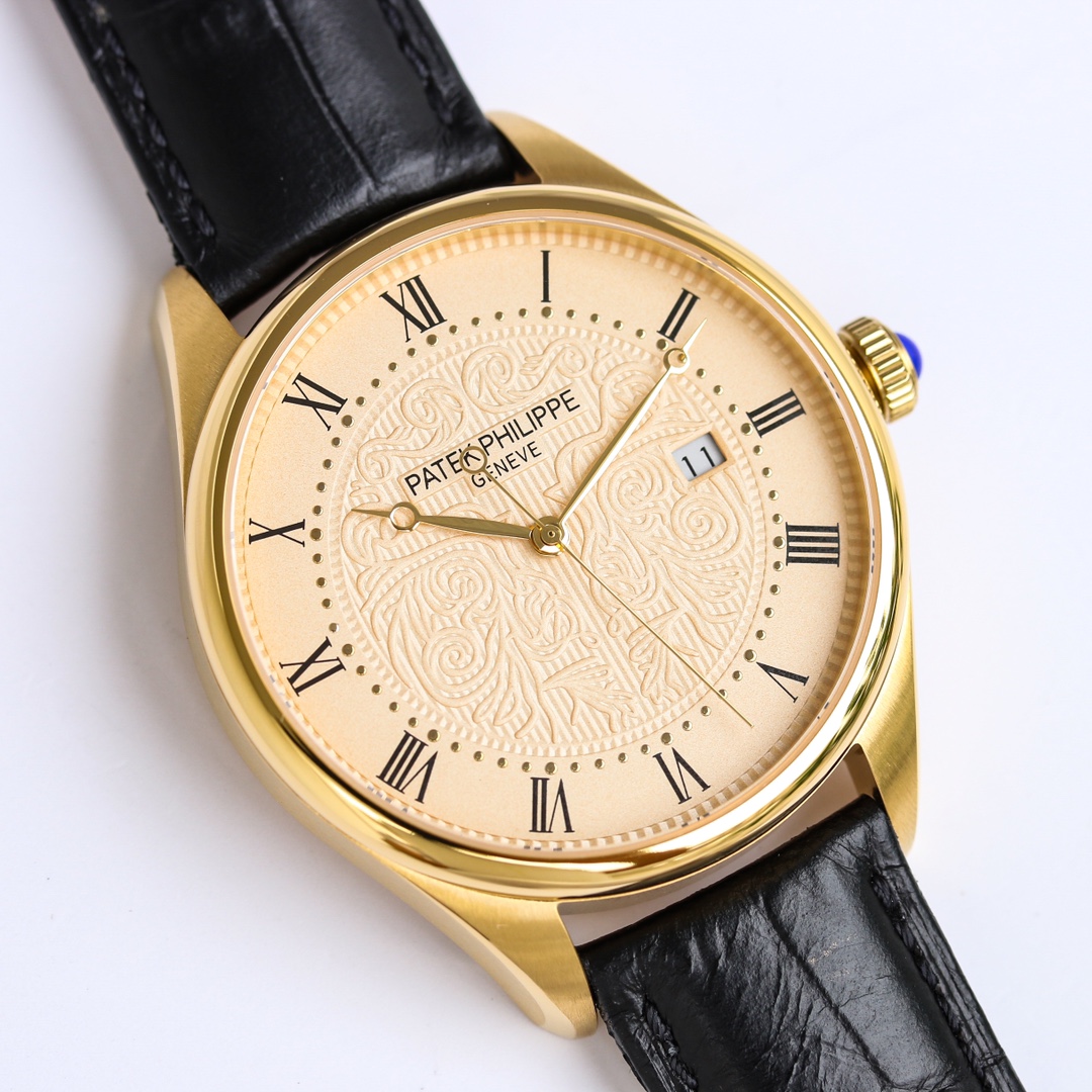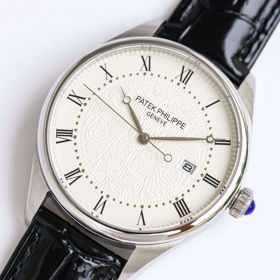 这款手表是AAAAA 1:1 质量 (非常棒). 使用了和原版一模一样的材料. 商标部分也保持了和百达翡丽/Patek Philippe一样. 图片拍摄是实物手表拍摄, 您所收到的实物保证和我们图片一模一样.