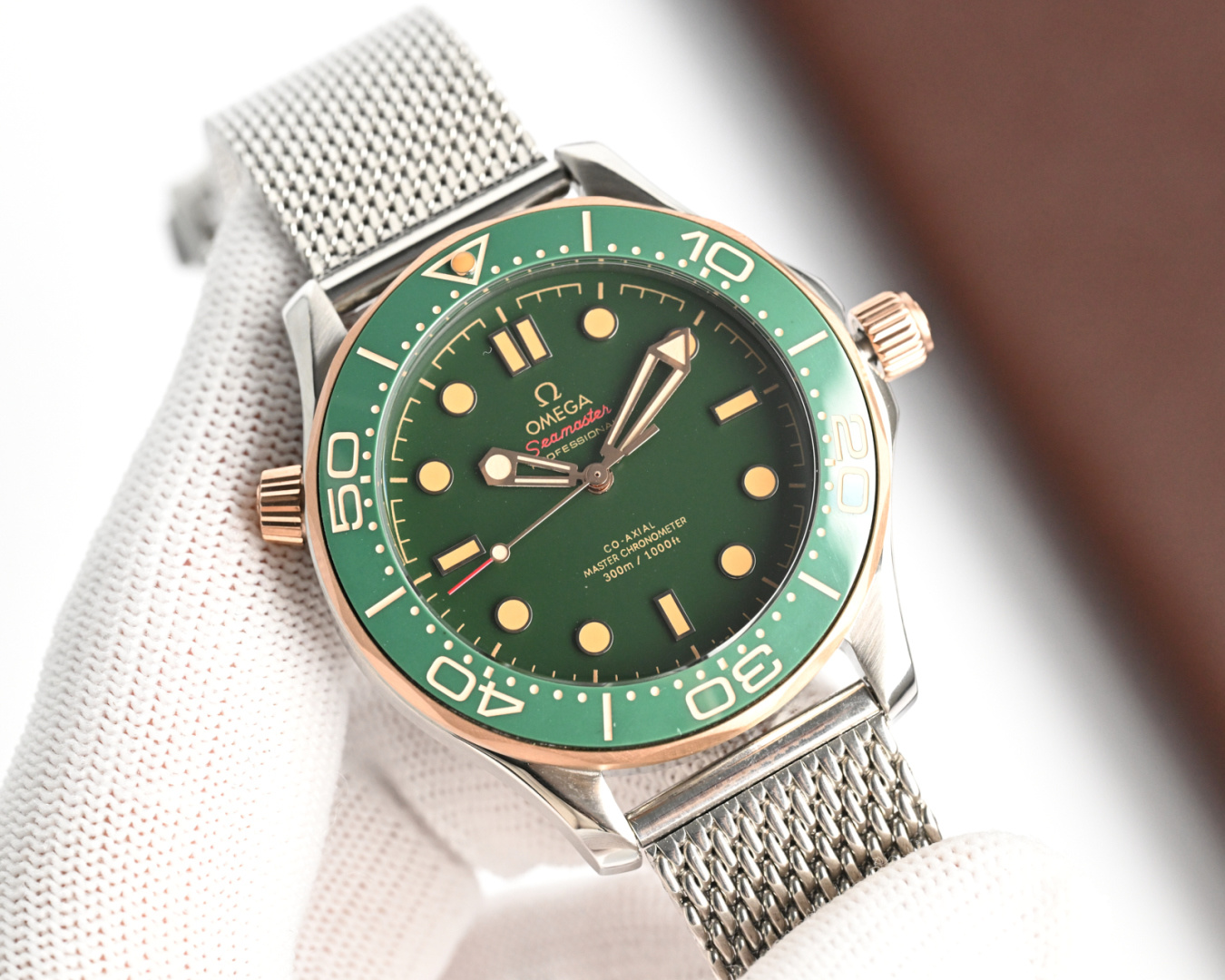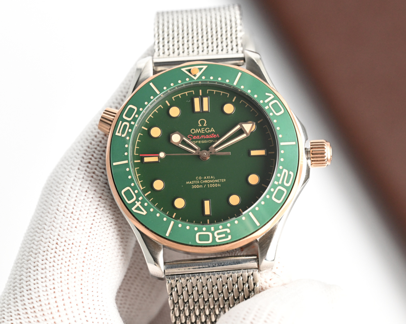 这款手表是AAAAA 1:1 质量 (非常棒). 使用了和原版一模一样的材料. 商标部分也保持了和欧米茄/Omega一样. 图片拍摄是实物手表拍摄, 您所收到的实物保证和我们图片一模一样.