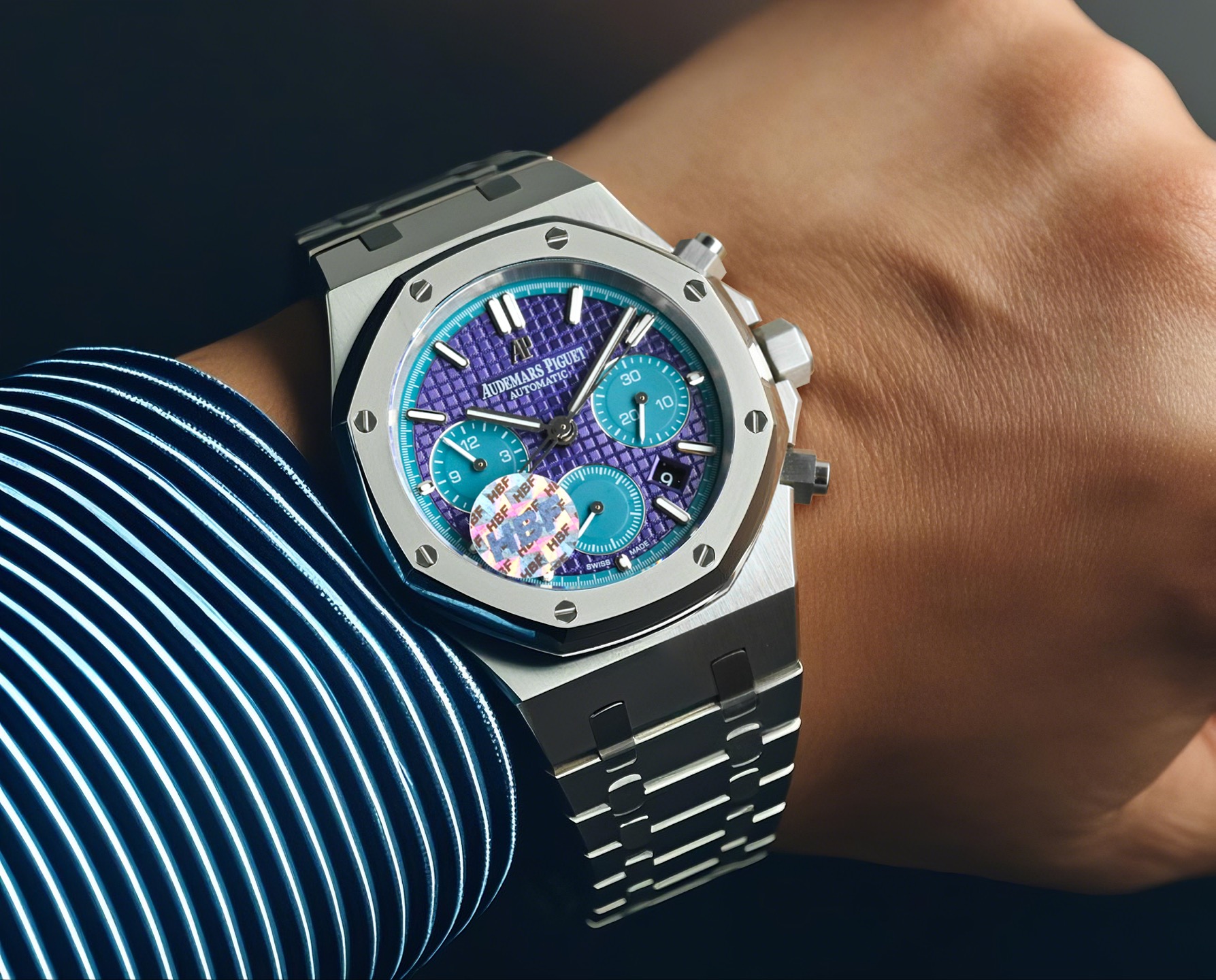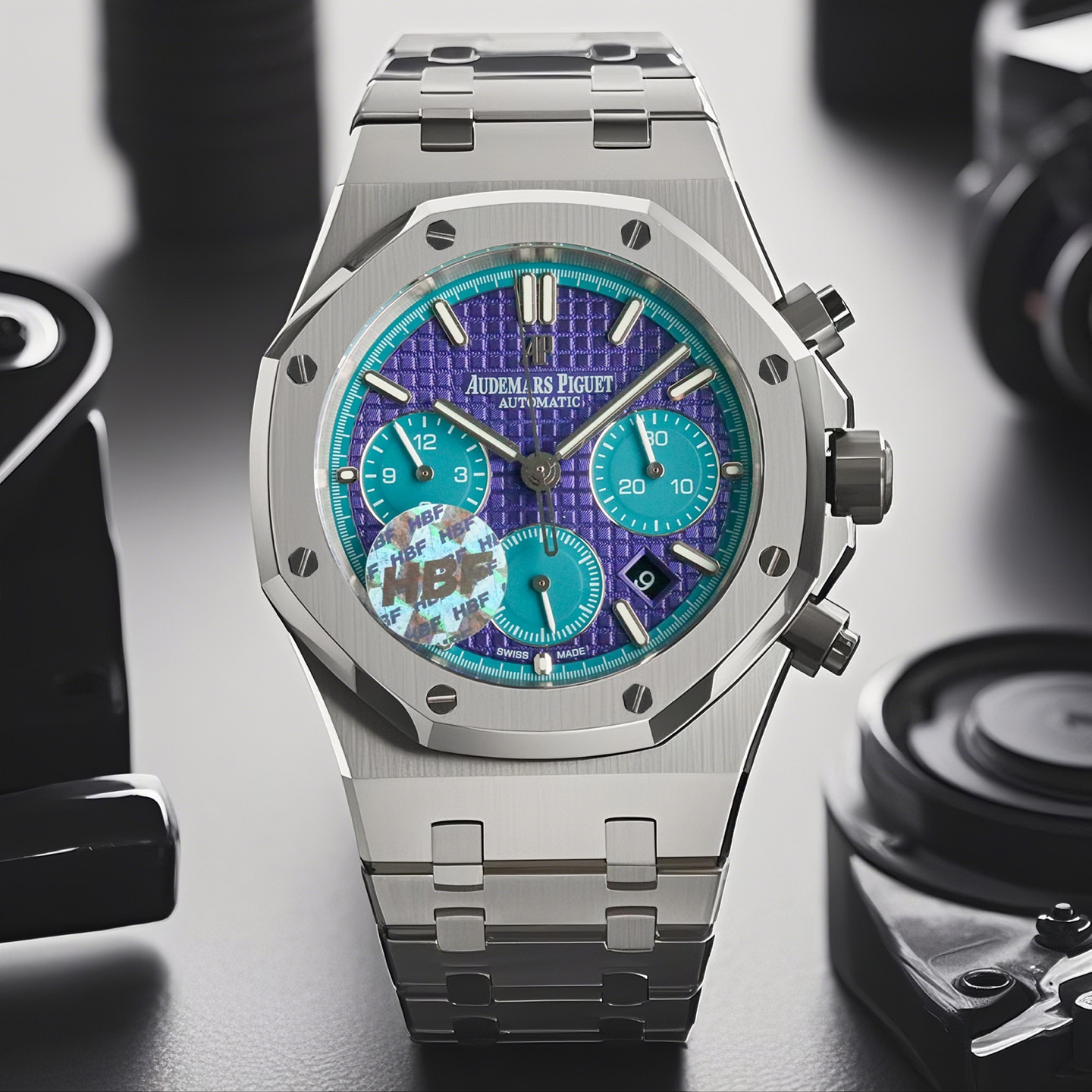 这款手表是AAAAA 1:1 质量 (非常棒). 使用了和原版一模一样的材料. 商标部分也保持了和爱彼/Audemars Piguet一样. 图片拍摄是实物手表拍摄, 您所收到的实物保证和我们图片一模一样.