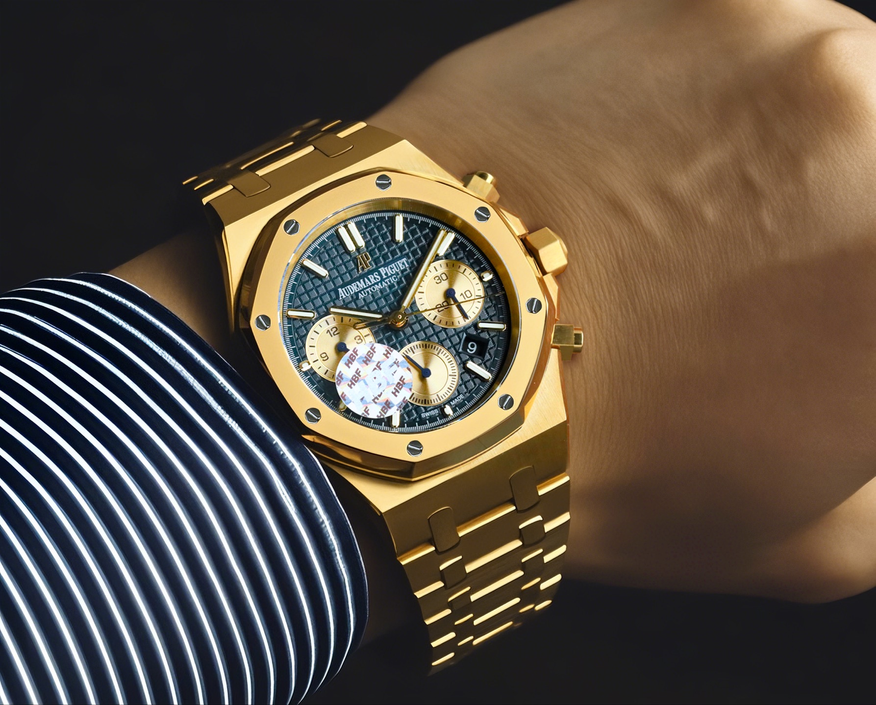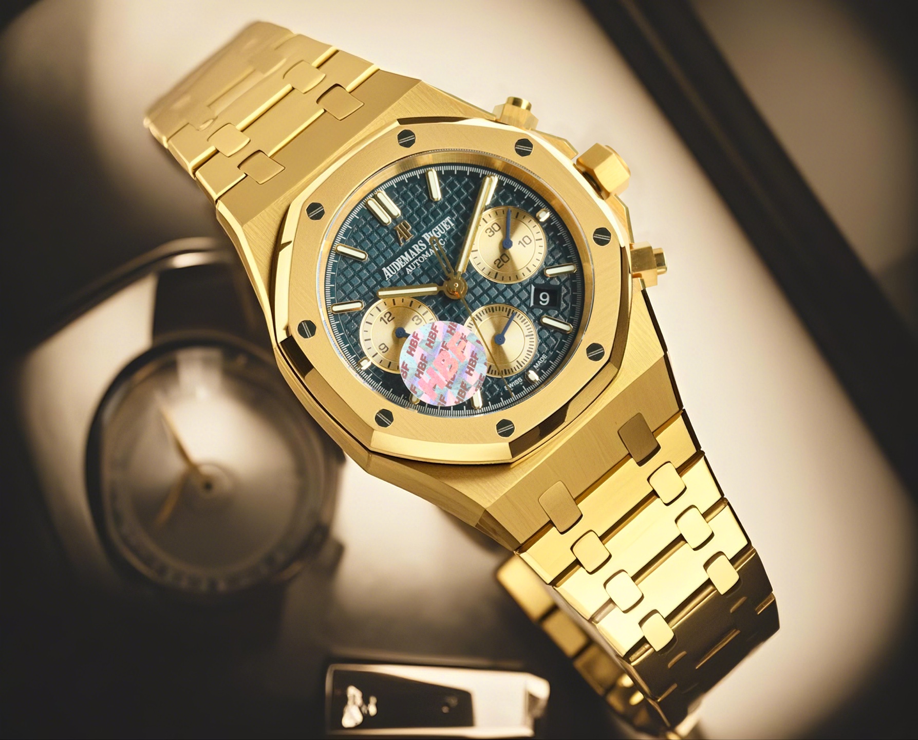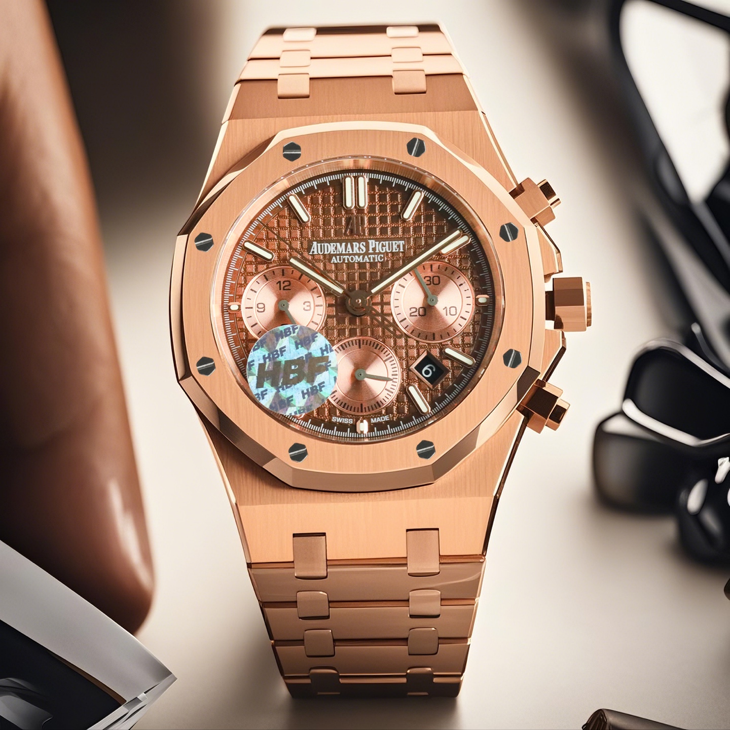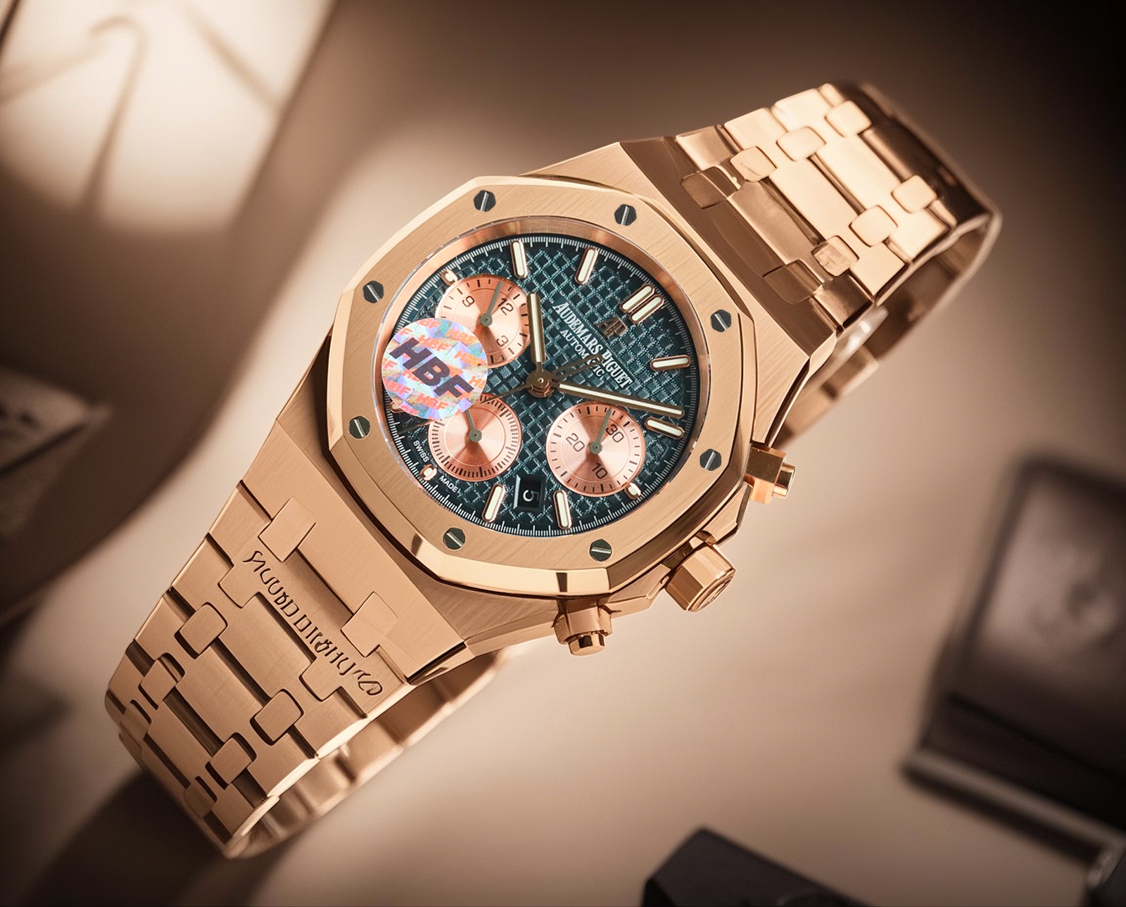 这款手表是AAAAA 1:1 质量 (非常棒). 使用了和原版一模一样的材料. 商标部分也保持了和爱彼/Audemars Piguet一样. 图片拍摄是实物手表拍摄, 您所收到的实物保证和我们图片一模一样.