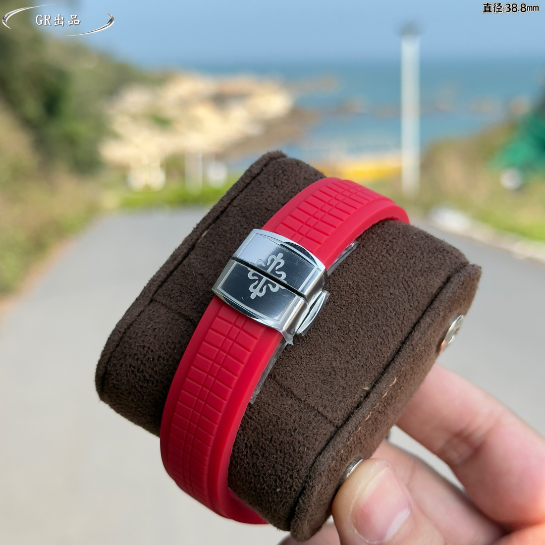 这款手表是AAAAA 1:1 质量 (非常棒). 使用了和原版一模一样的材料. 商标部分也保持了和百达翡丽/Patek Philippe一样. 图片拍摄是实物手表拍摄, 您所收到的实物保证和我们图片一模一样.
