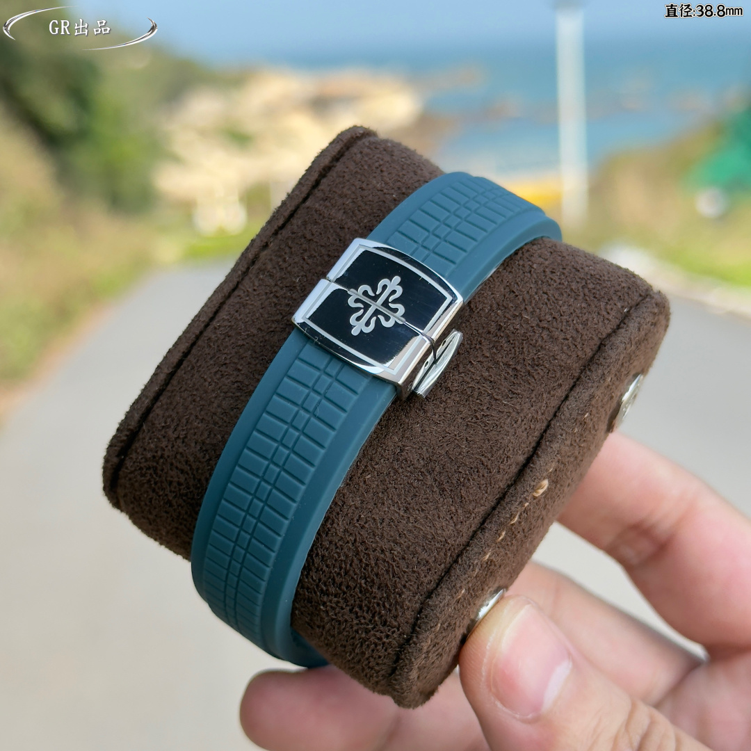 这款手表是AAAAA 1:1 质量 (非常棒). 使用了和原版一模一样的材料. 商标部分也保持了和百达翡丽/Patek Philippe一样. 图片拍摄是实物手表拍摄, 您所收到的实物保证和我们图片一模一样.