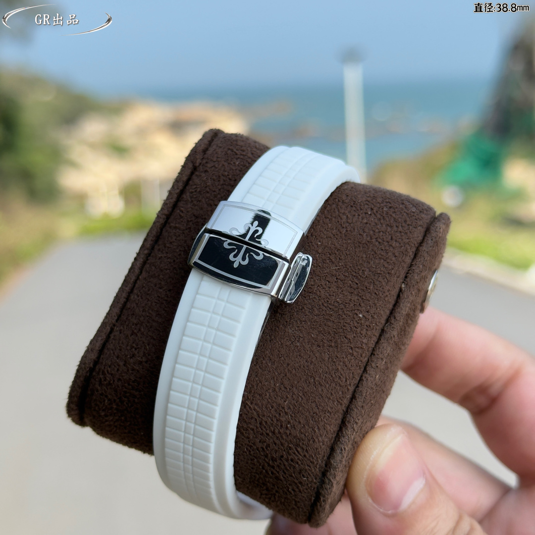 这款手表是AAAAA 1:1 质量 (非常棒). 使用了和原版一模一样的材料. 商标部分也保持了和百达翡丽/Patek Philippe一样. 图片拍摄是实物手表拍摄, 您所收到的实物保证和我们图片一模一样.