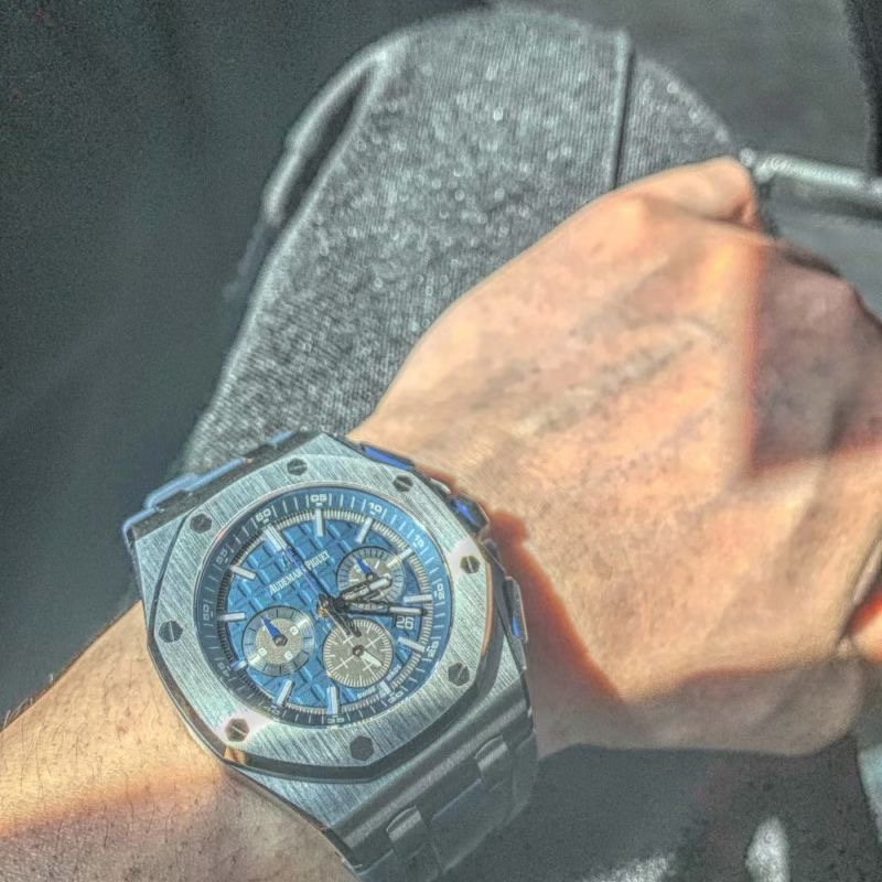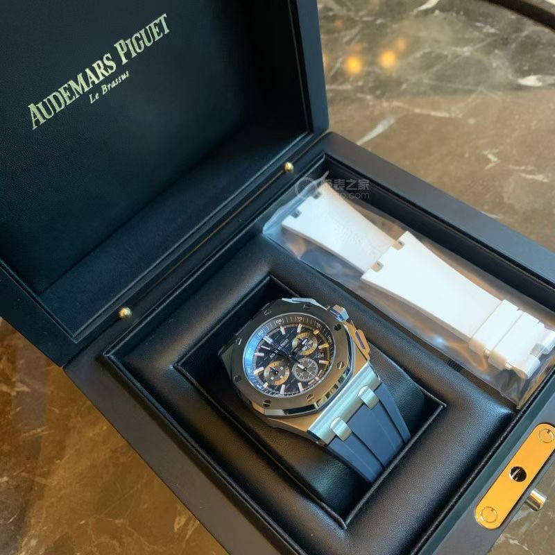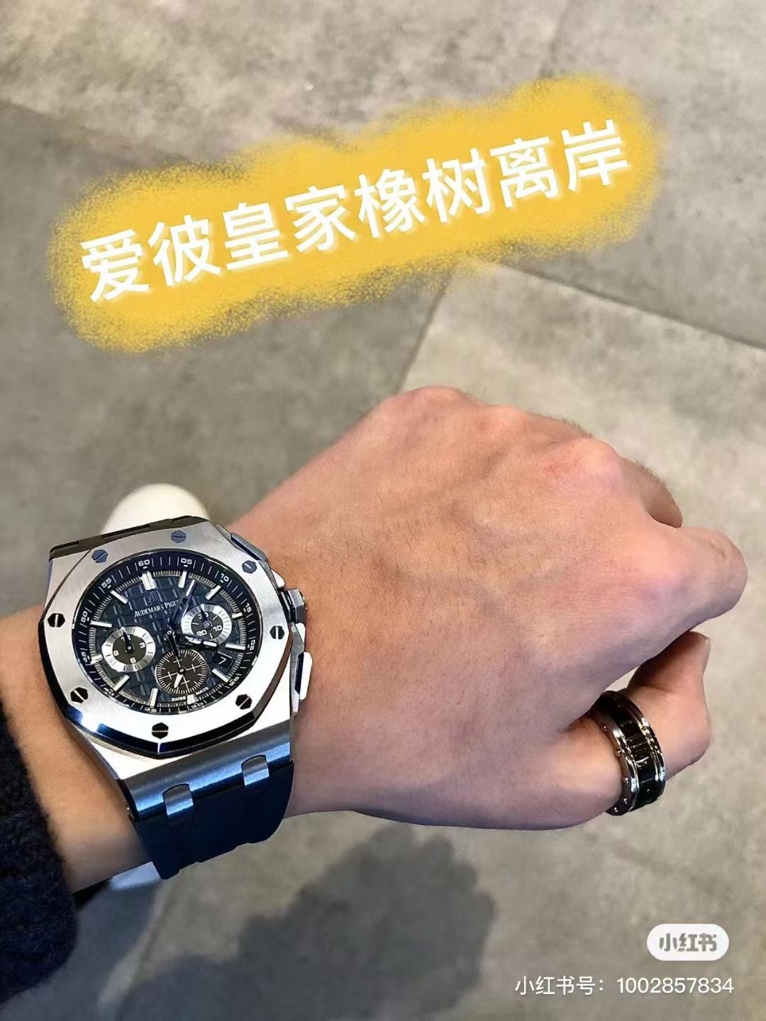这款手表是AAAAA 1:1 质量 (非常棒). 使用了和原版一模一样的材料. 商标部分也保持了和爱彼/Audemars Piguet一样. 图片拍摄是实物手表拍摄, 您所收到的实物保证和我们图片一模一样.