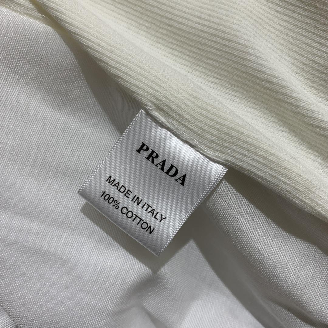 这款衣服是AAAAA 1:1 质量 (非常棒). 使用了和原版一模一样的材料. 商标部分也保持了和普拉达/Prada一样. 图片拍摄是实物衣服拍摄, 您所收到的实物保证和我们图片一模一样.
