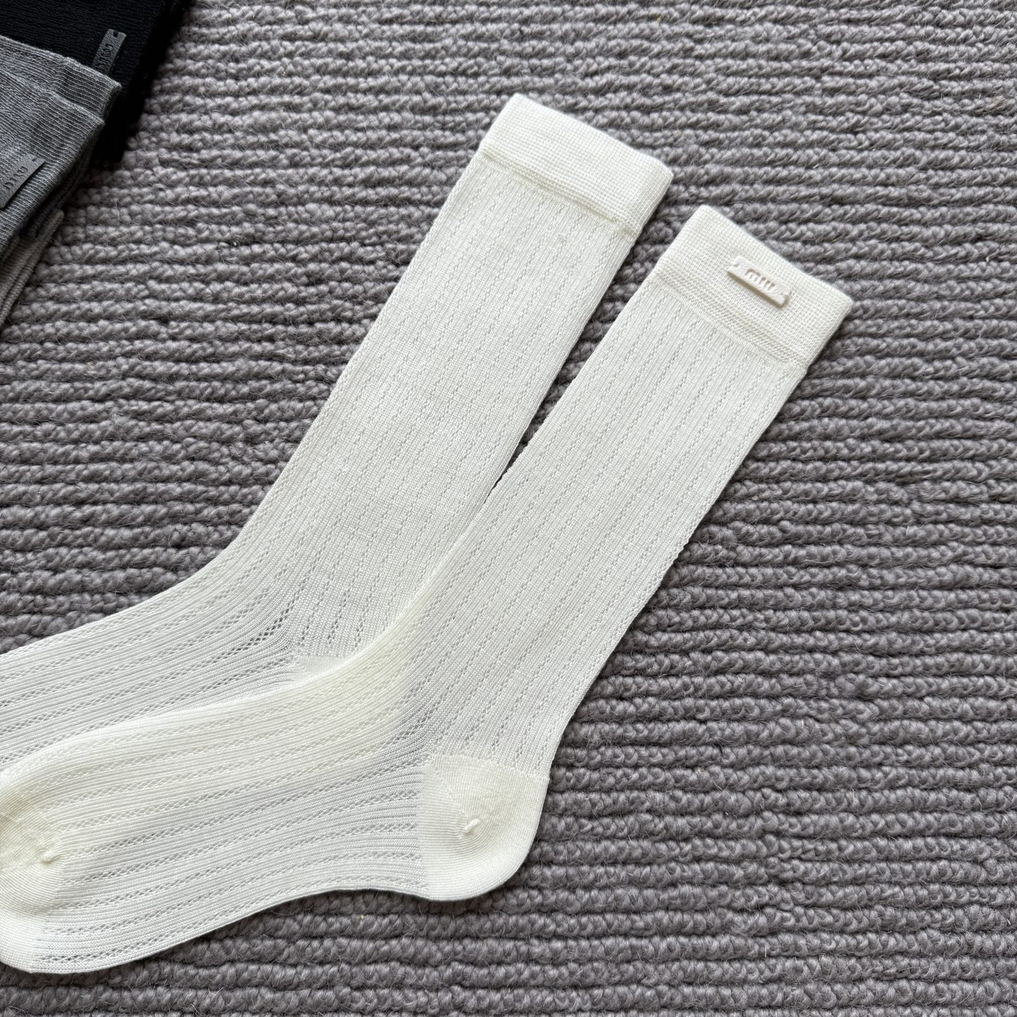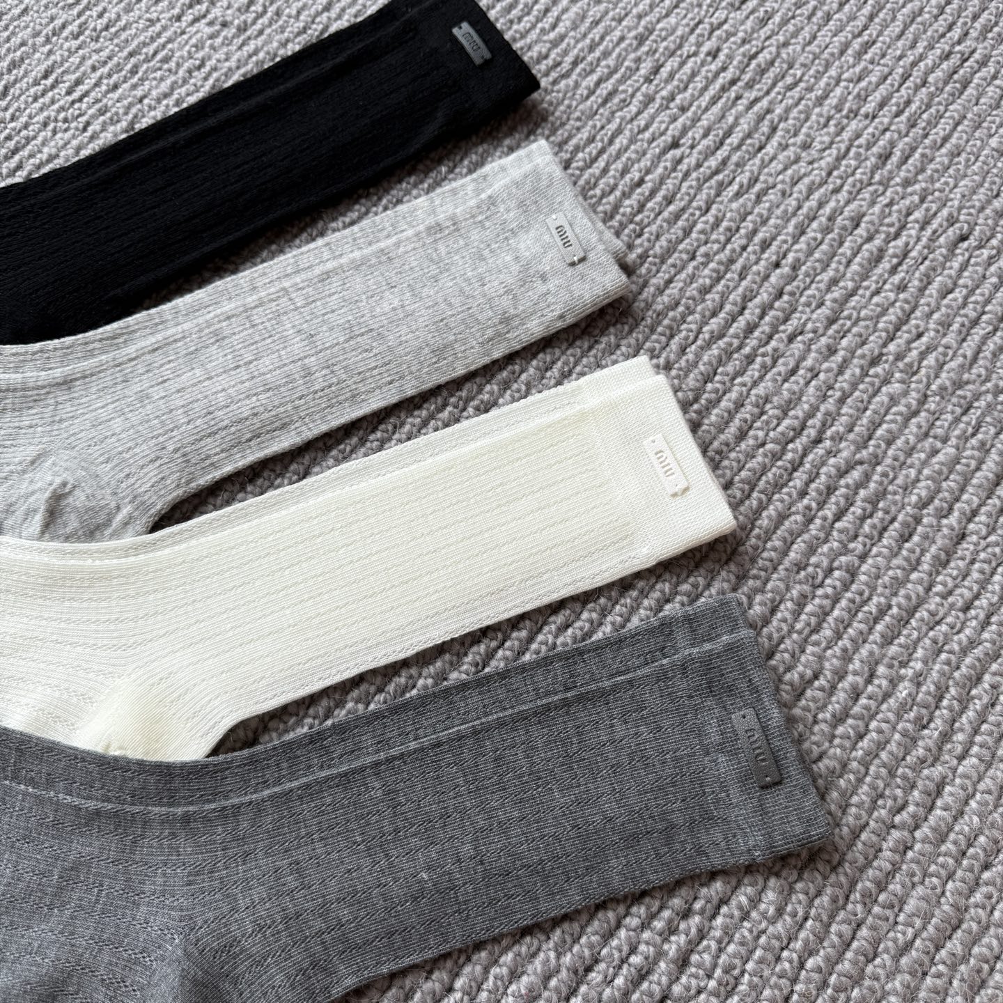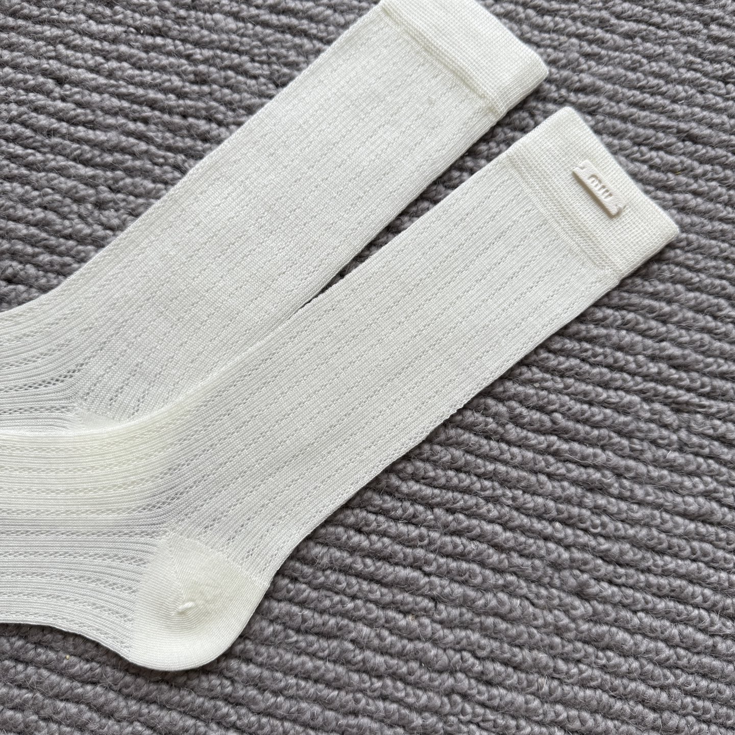 这款sock是AAAAA 1:1 质量 (非常棒). 使用了和原版一模一样的材料. 商标部分也保持了和缪缪/Miu Miu一样. 图片拍摄是实物sock拍摄, 您所收到的实物保证和我们图片一模一样.